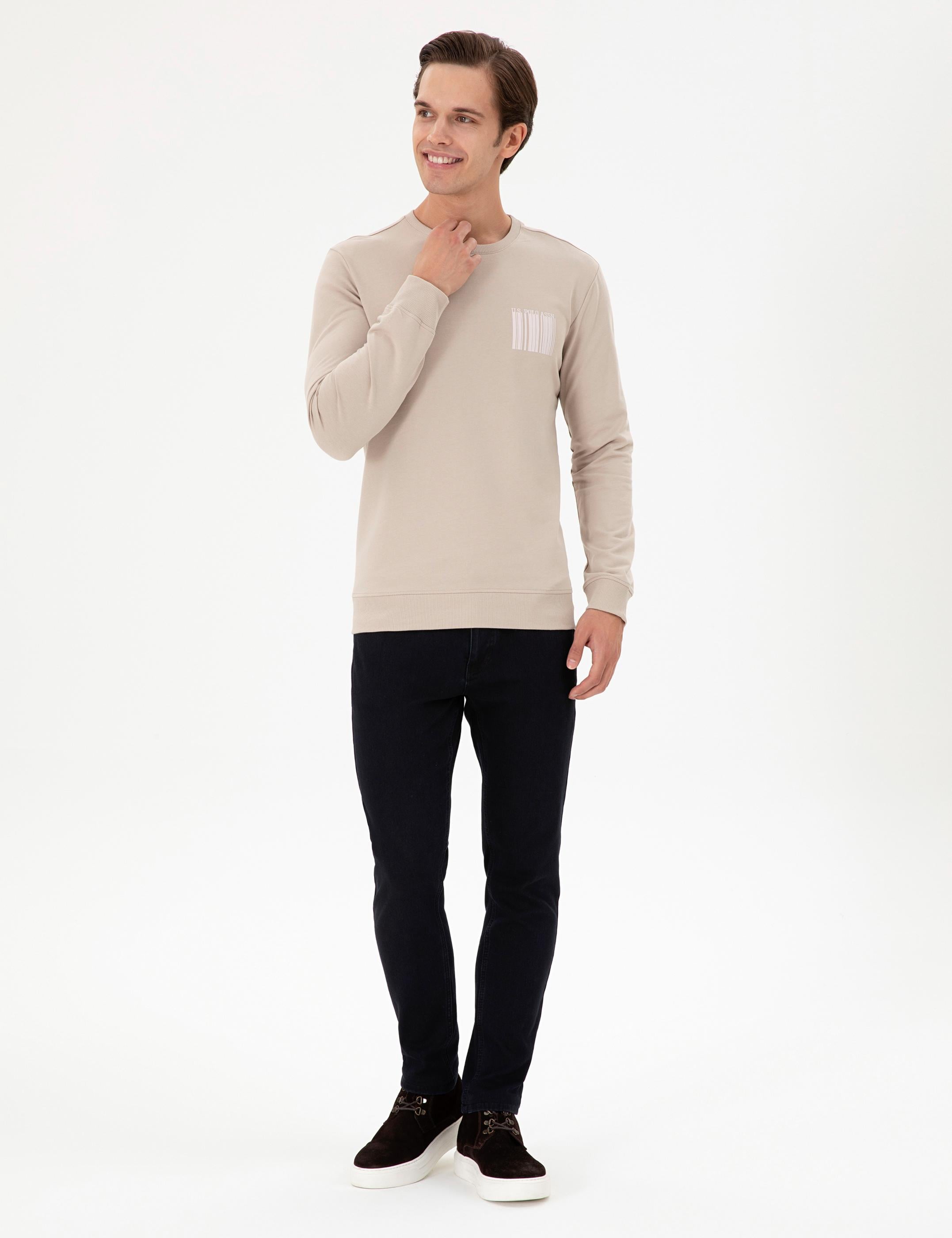 Erkek Regular Fit Bisiklet Yaka Taş Sweatshirt