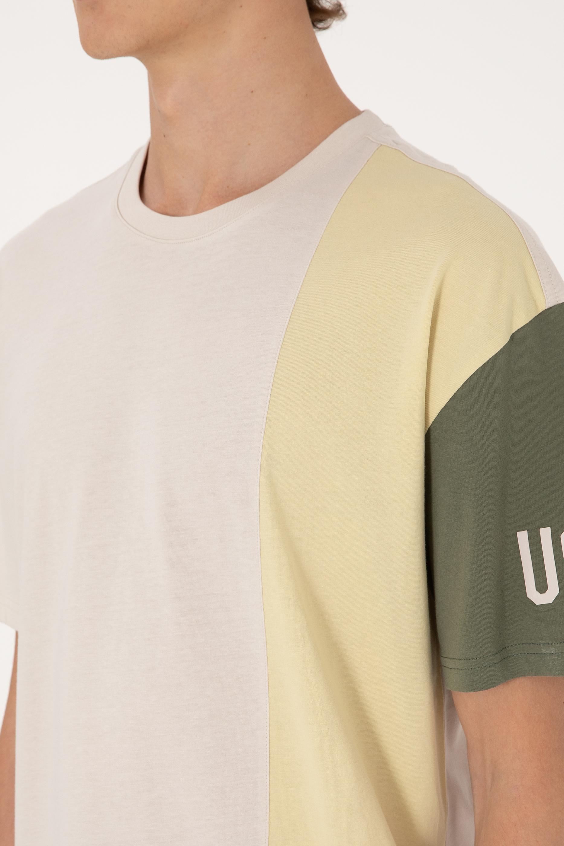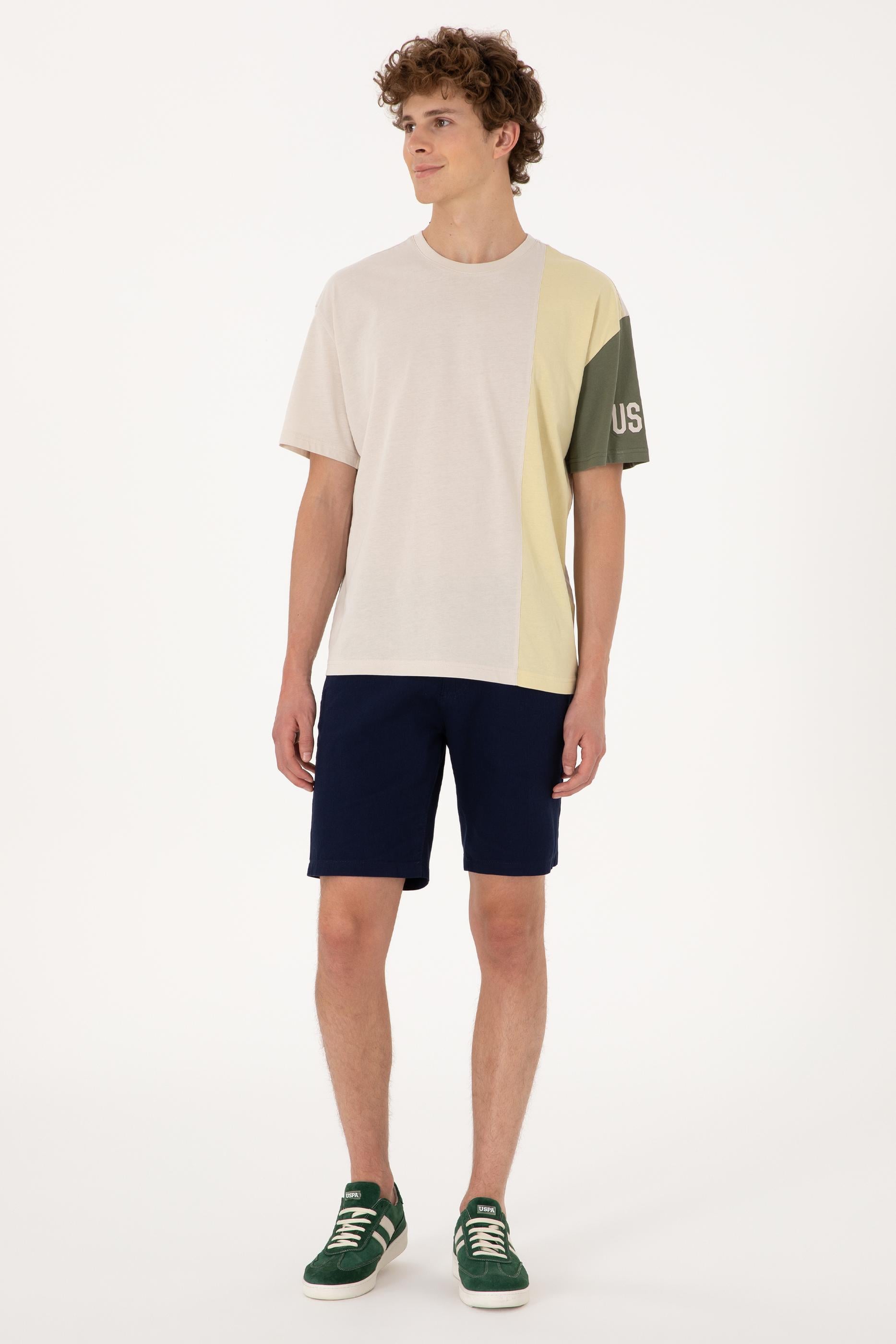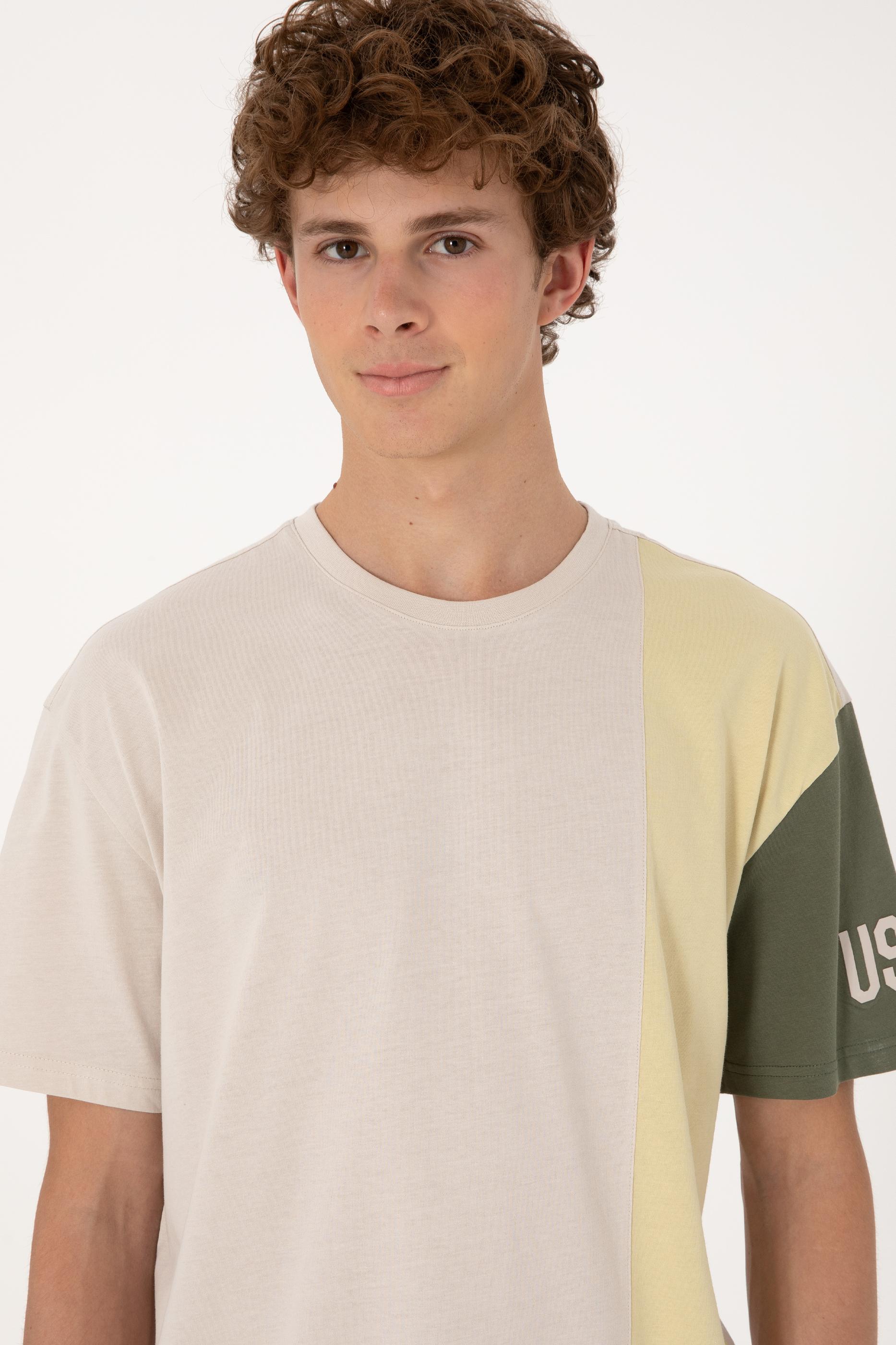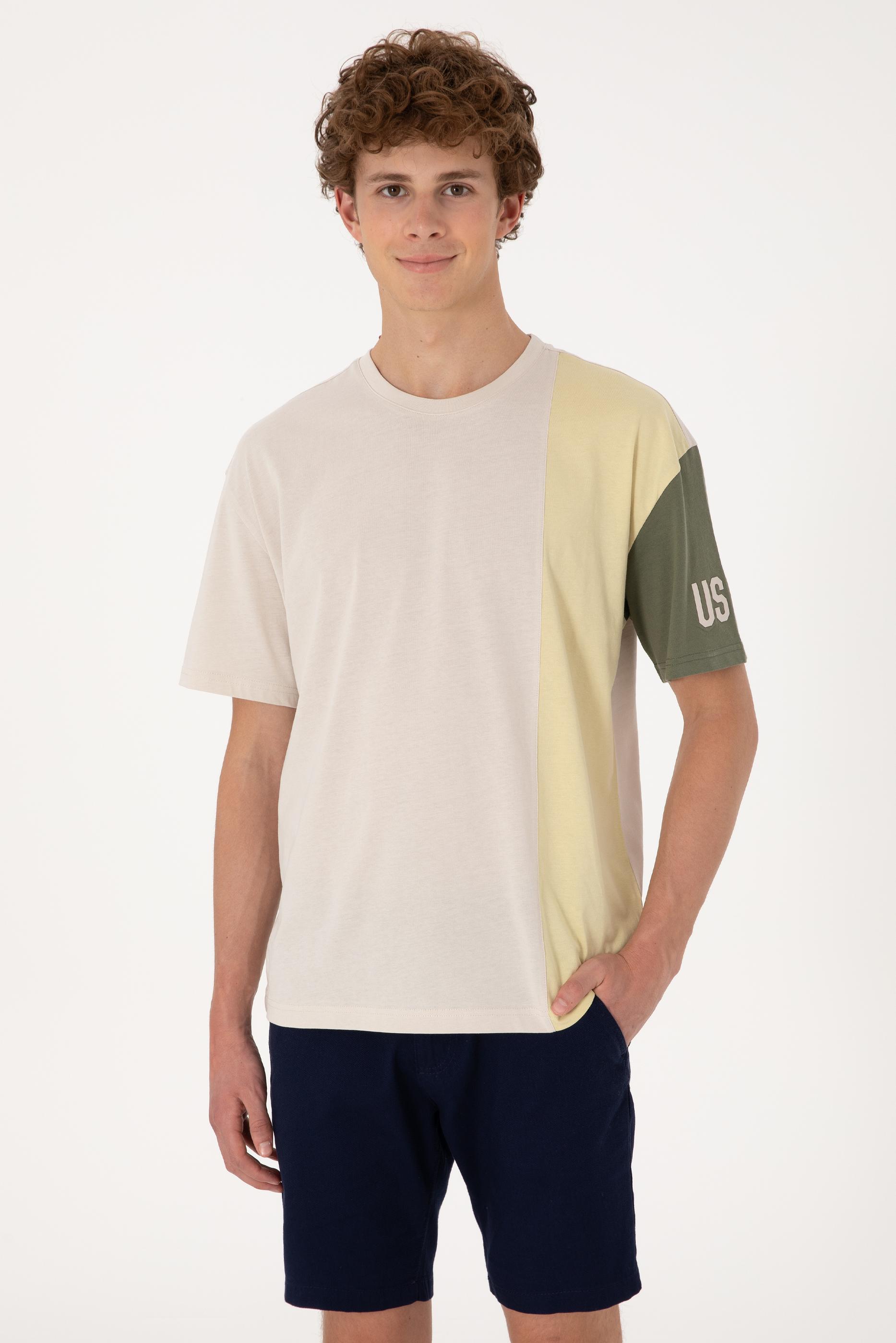 U.S. Polo Assn. tasarımı bu taş tişört, blok renk geçişleriyle dinamik ve çağdaş bir görünüm sunar. %100 pamuklu dokusu sayesinde ciltle uyumlu, nefes alabilir ve yumuşak bir yapı sunan model, comfort fit kalıbıyla gün boyu rahat hareket etmeyi mümkün kılar. Sol koldan başlayan ve omuzu aşarak gövdeye kadar inen mavi tonlar, sade formu dengeli şekilde hareketlendirir. Bisiklet yaka detayı klasik görünümünü korurken, modern blok tasarımıyla günlük kombinlere yenilikçi bir hava katar. Şort, eşofman veya jean'lerle kolayca kombinlenebilen bu tişört; konfor ve stilin bir arada arandığı günler için ideal bir seçimdir.