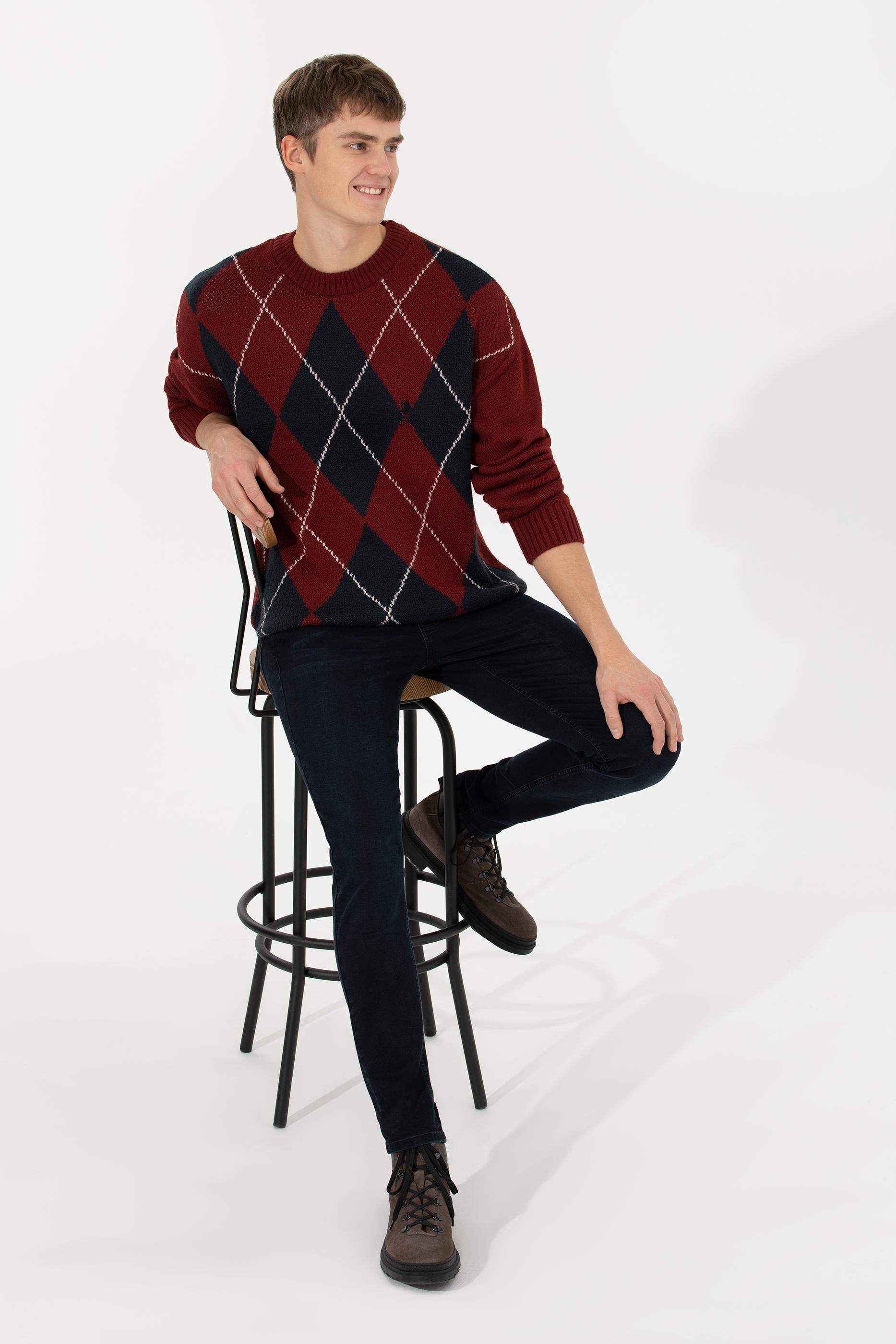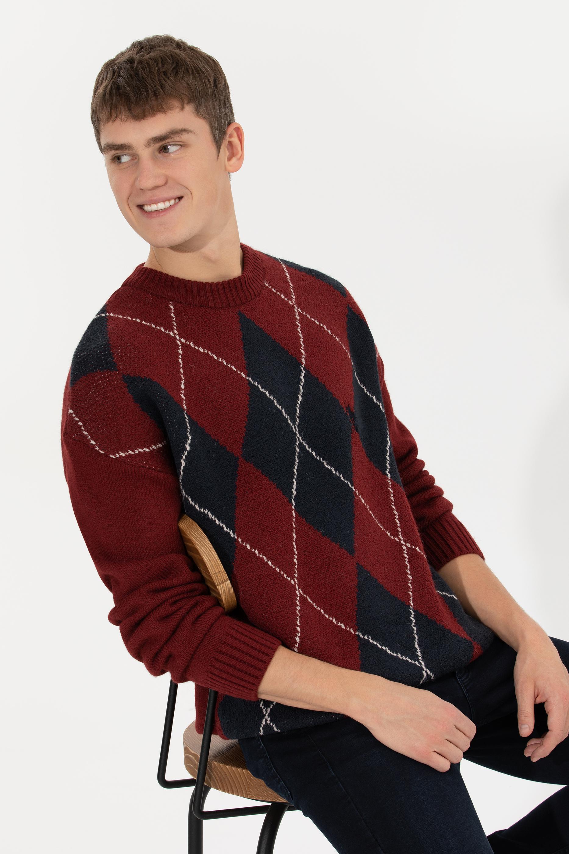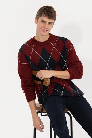 - Erkek Vişne Bisiklet Yaka Triko Kazak