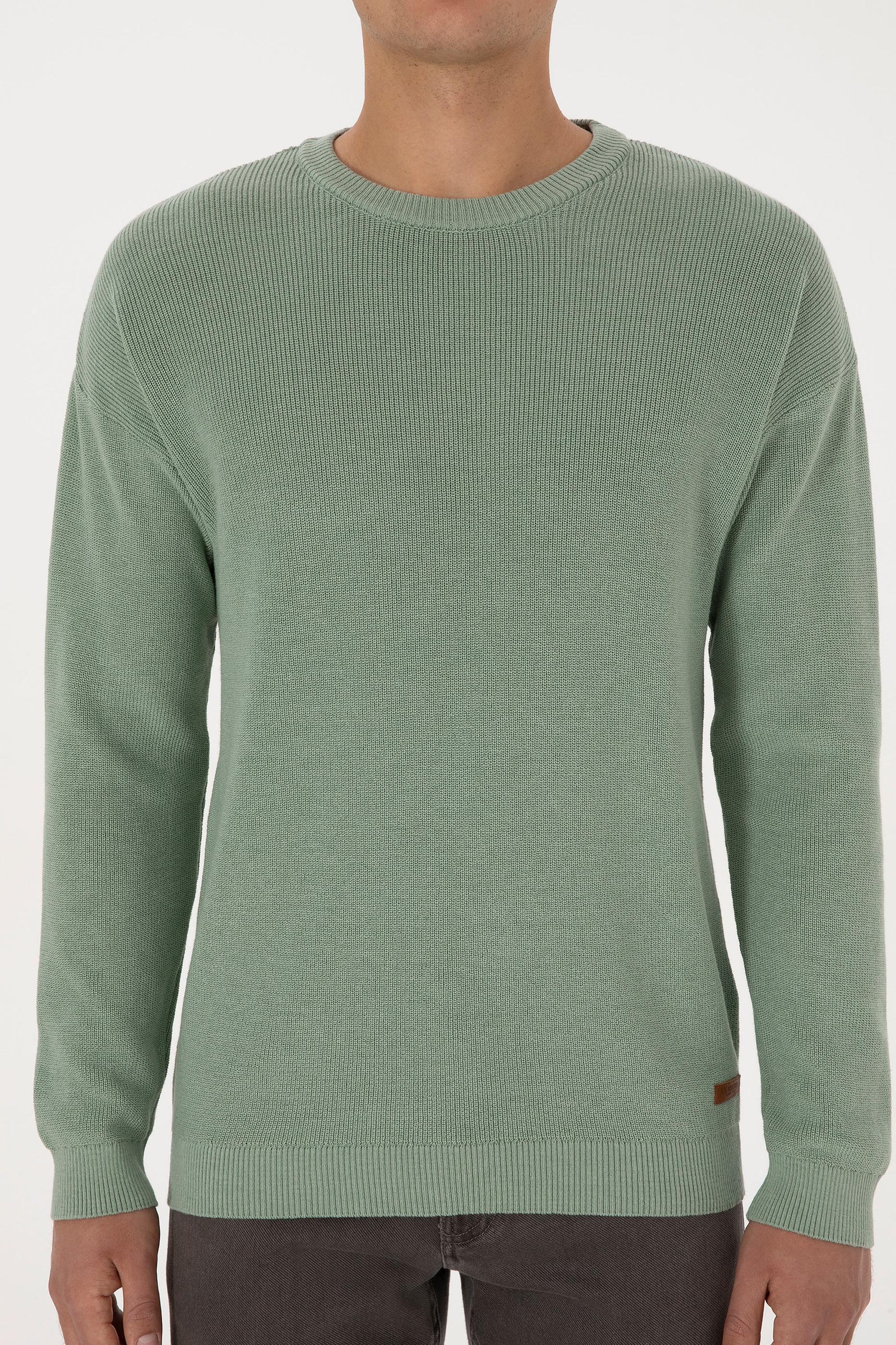 Erkek Comfort Fit Bisiklet Yaka Yeşil Melanj Basic Kazak