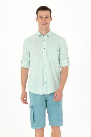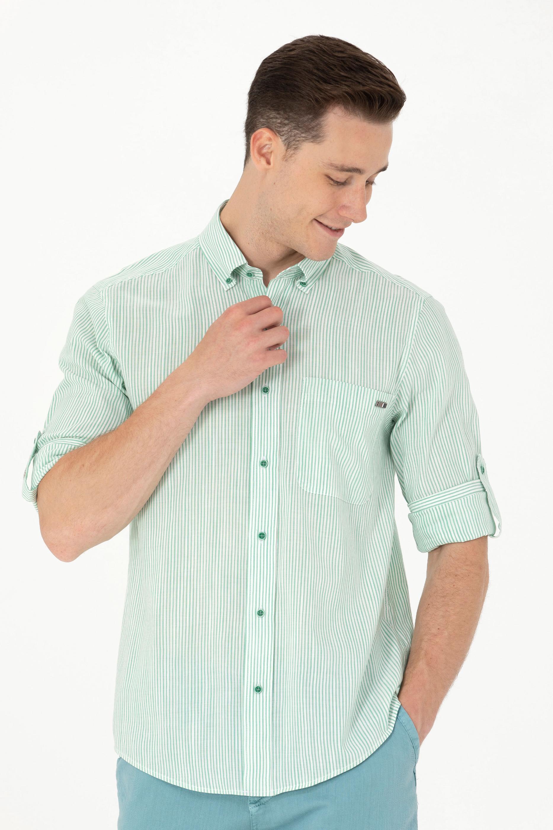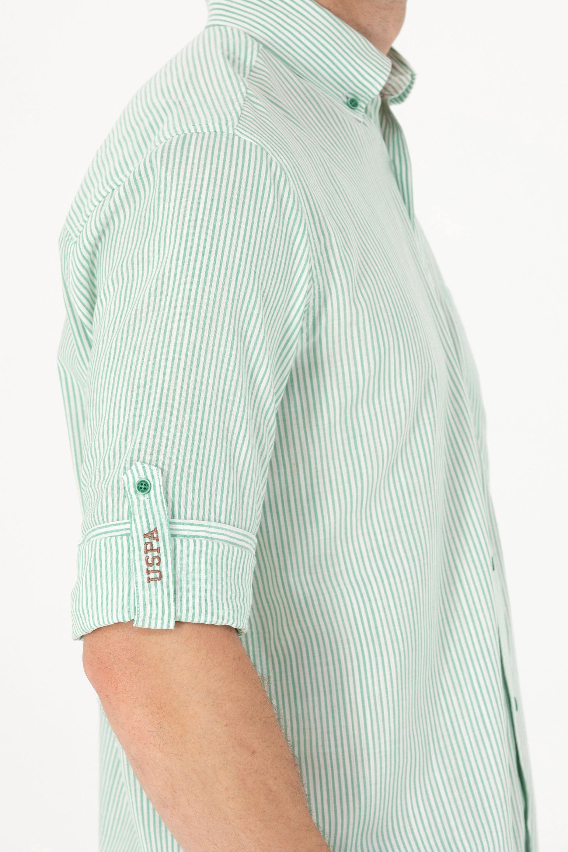 Erkek Yeşil Çizgili Beyaz Gömlek