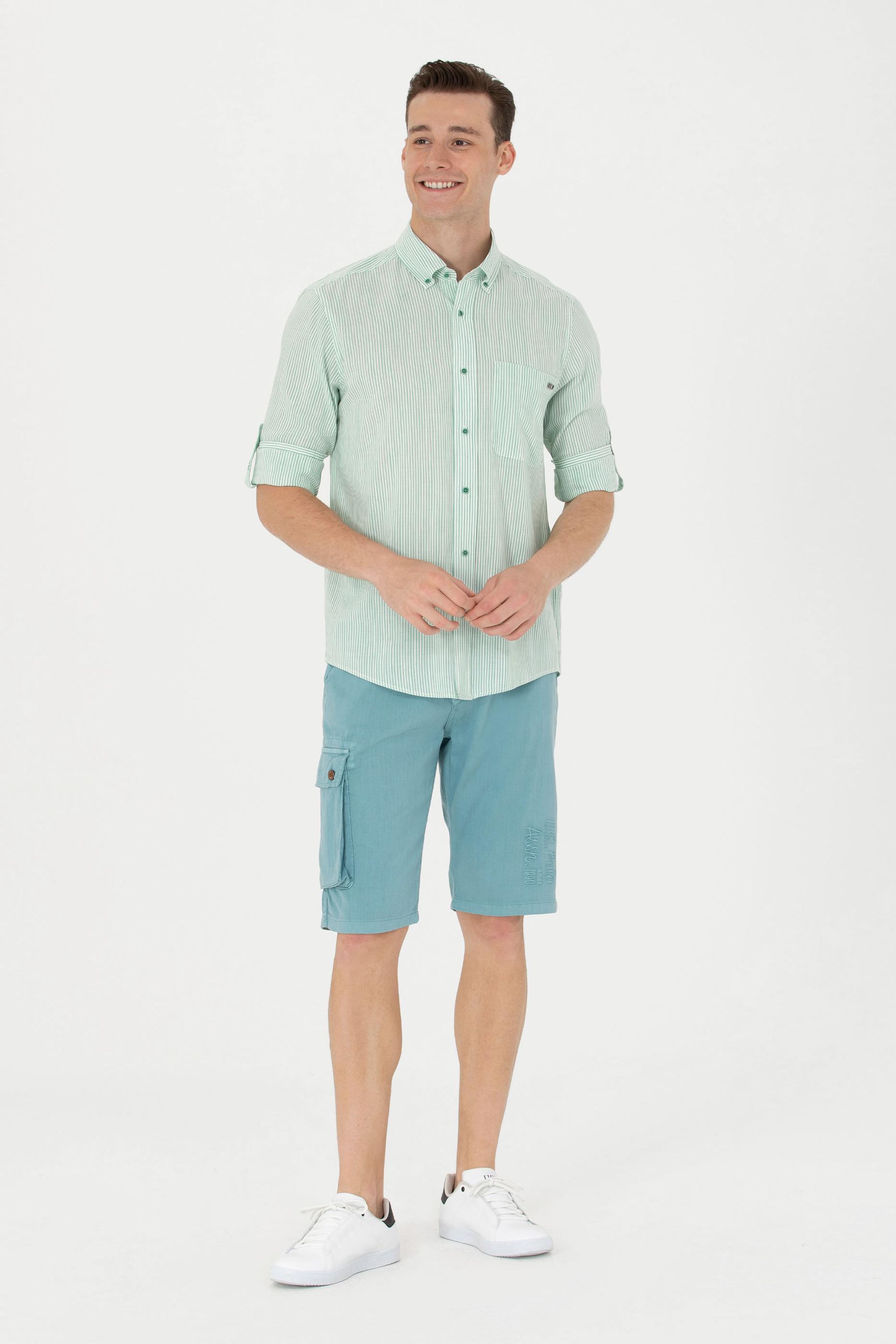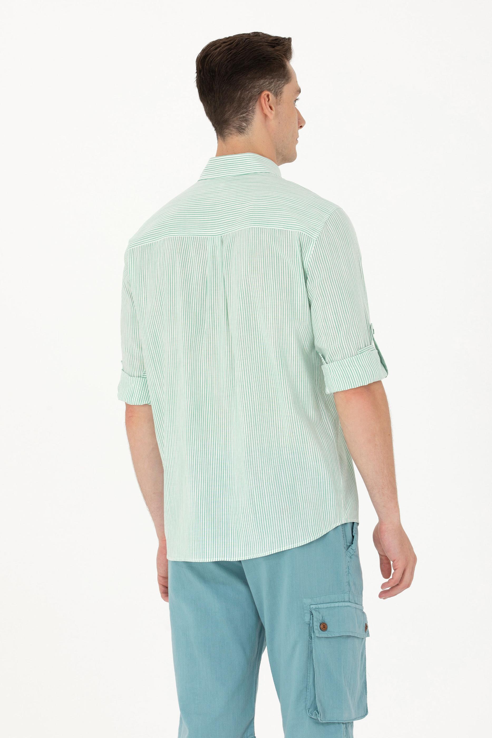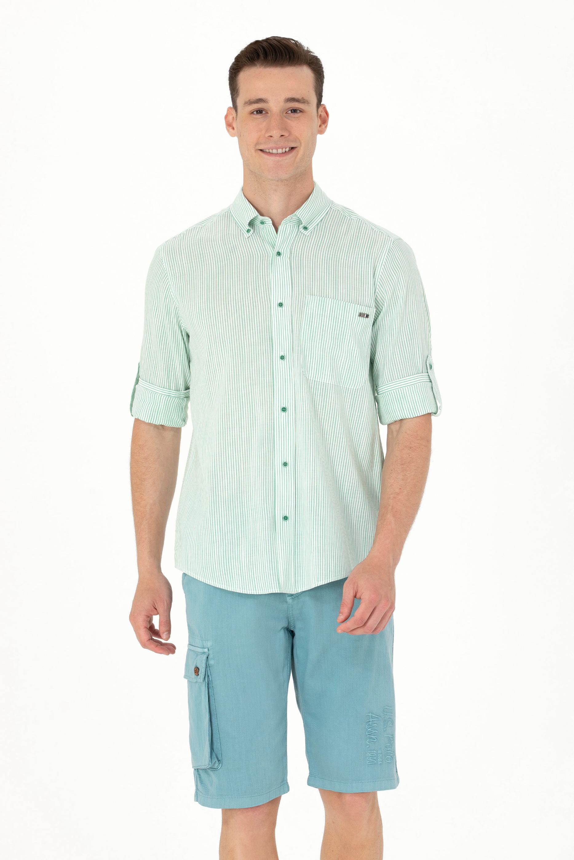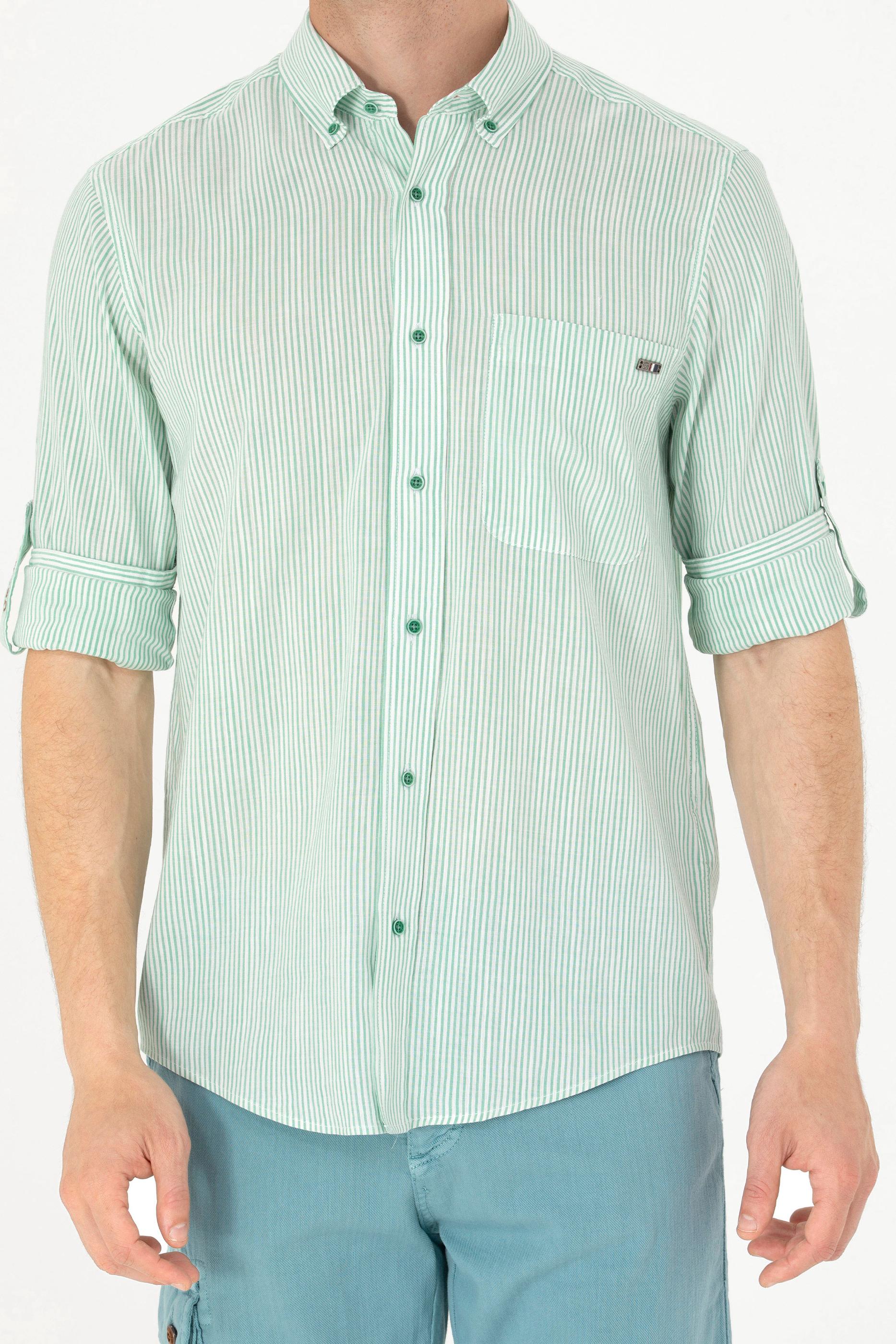 - Erkek Yeşil Çizgili Beyaz Gömlek