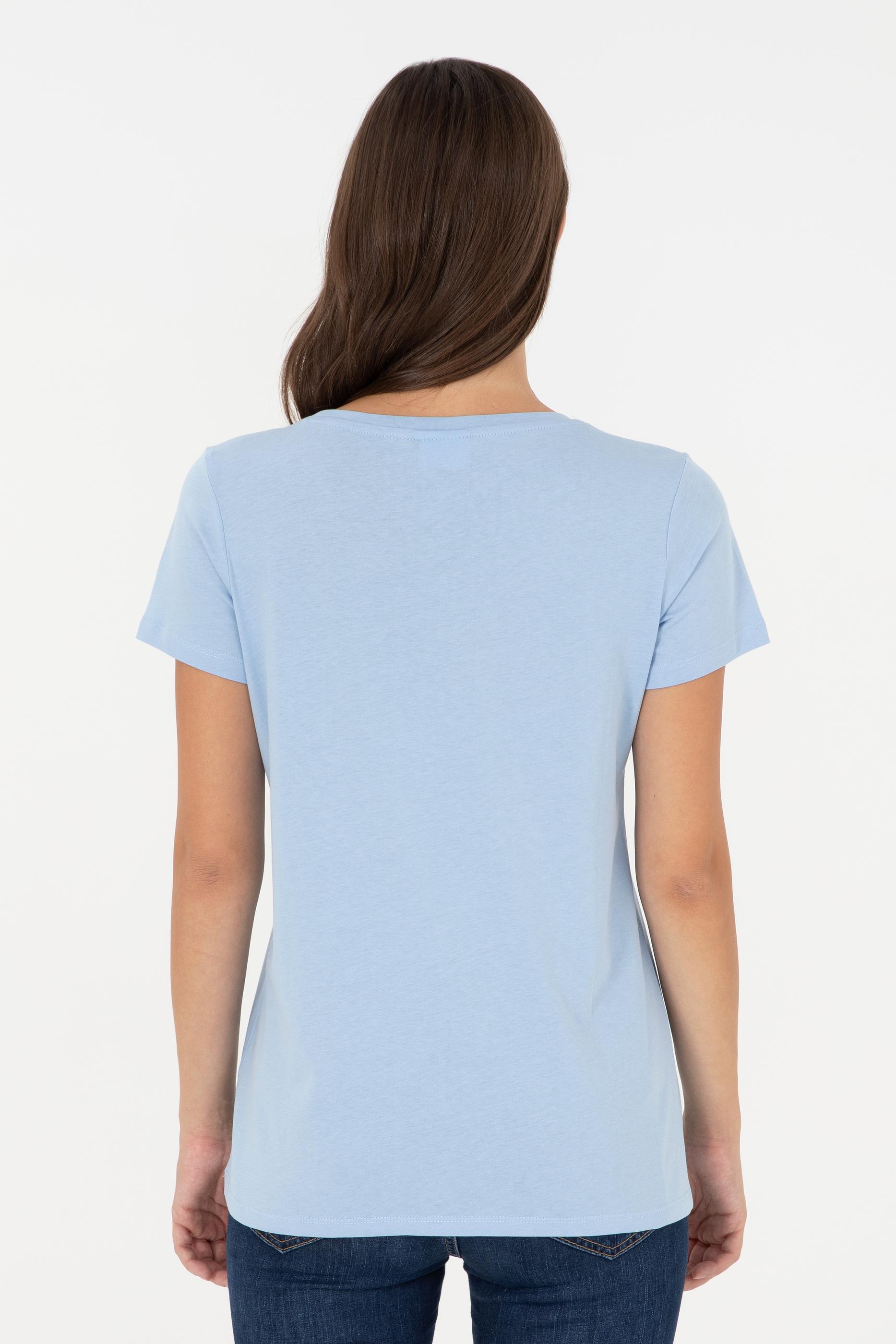 Kadın Açık Mavi Bisiklet Yaka Basic Tişört