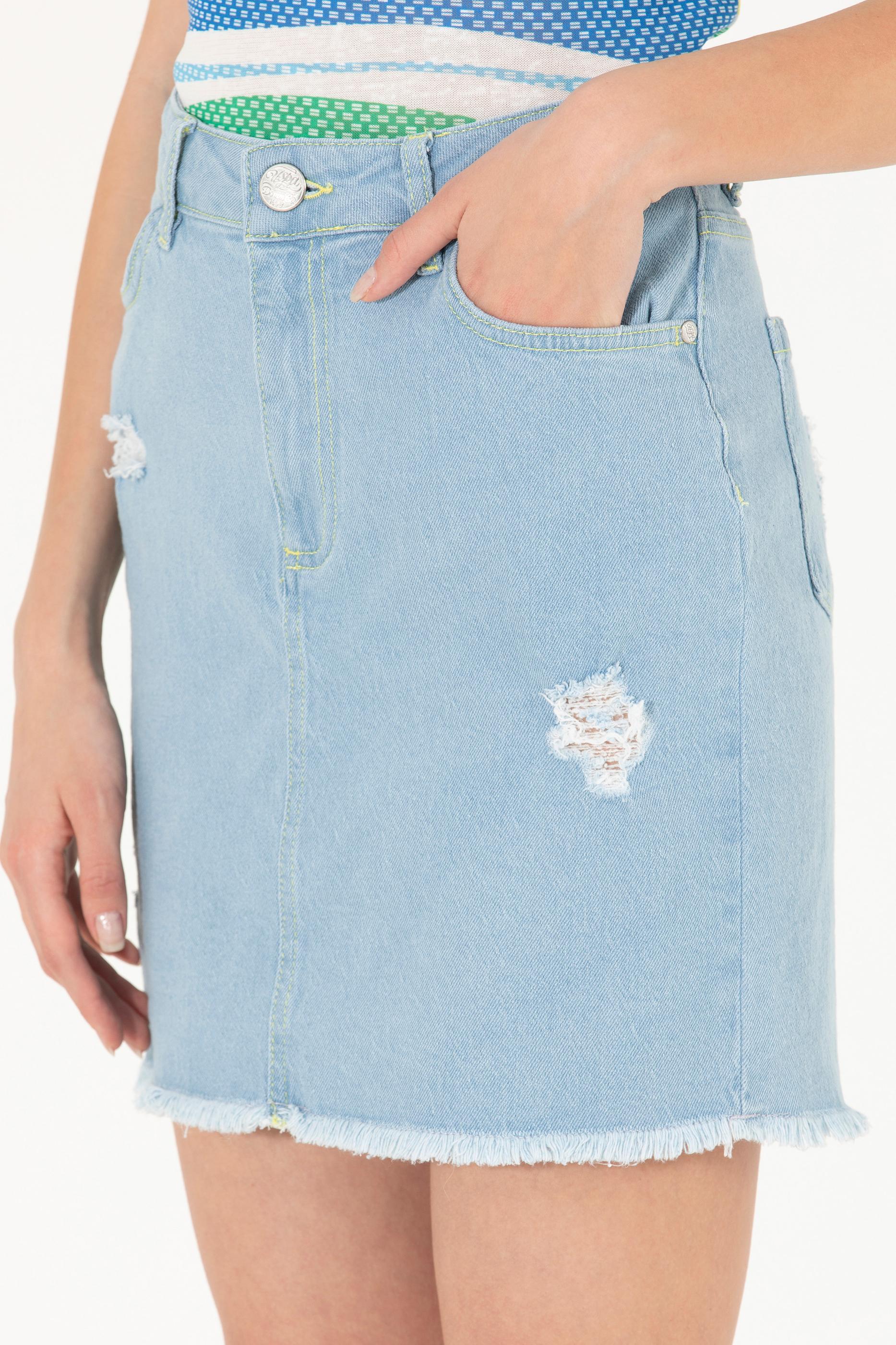 Kadın Açık Mavi Mini Boy Jean Etek