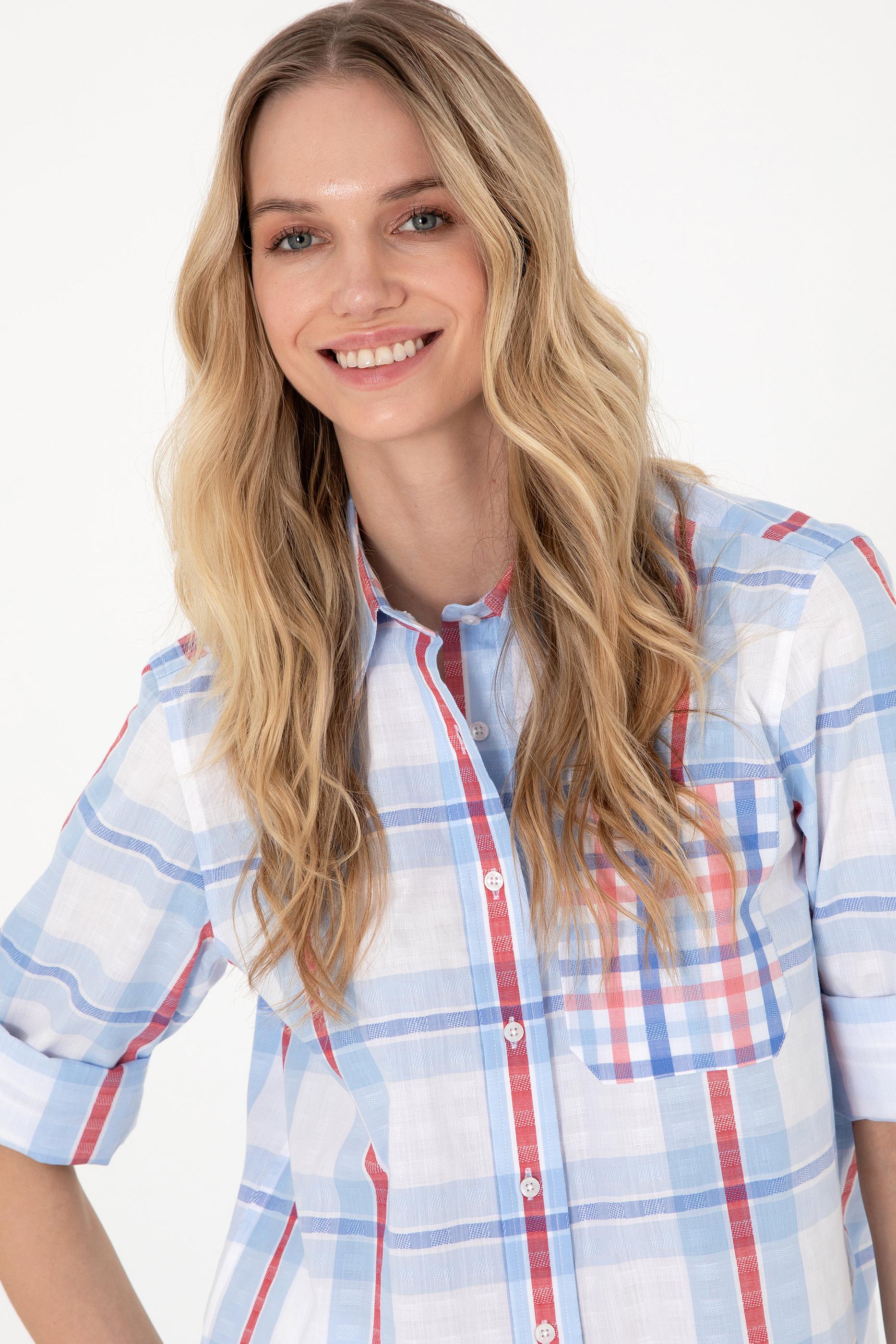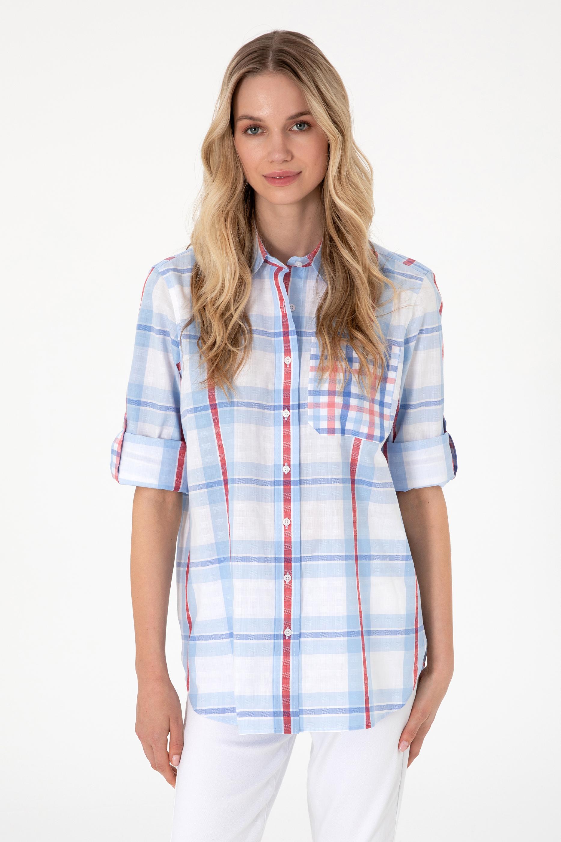 - Kadın Açık Mavi Uzun Kollu Tunik Gömlek