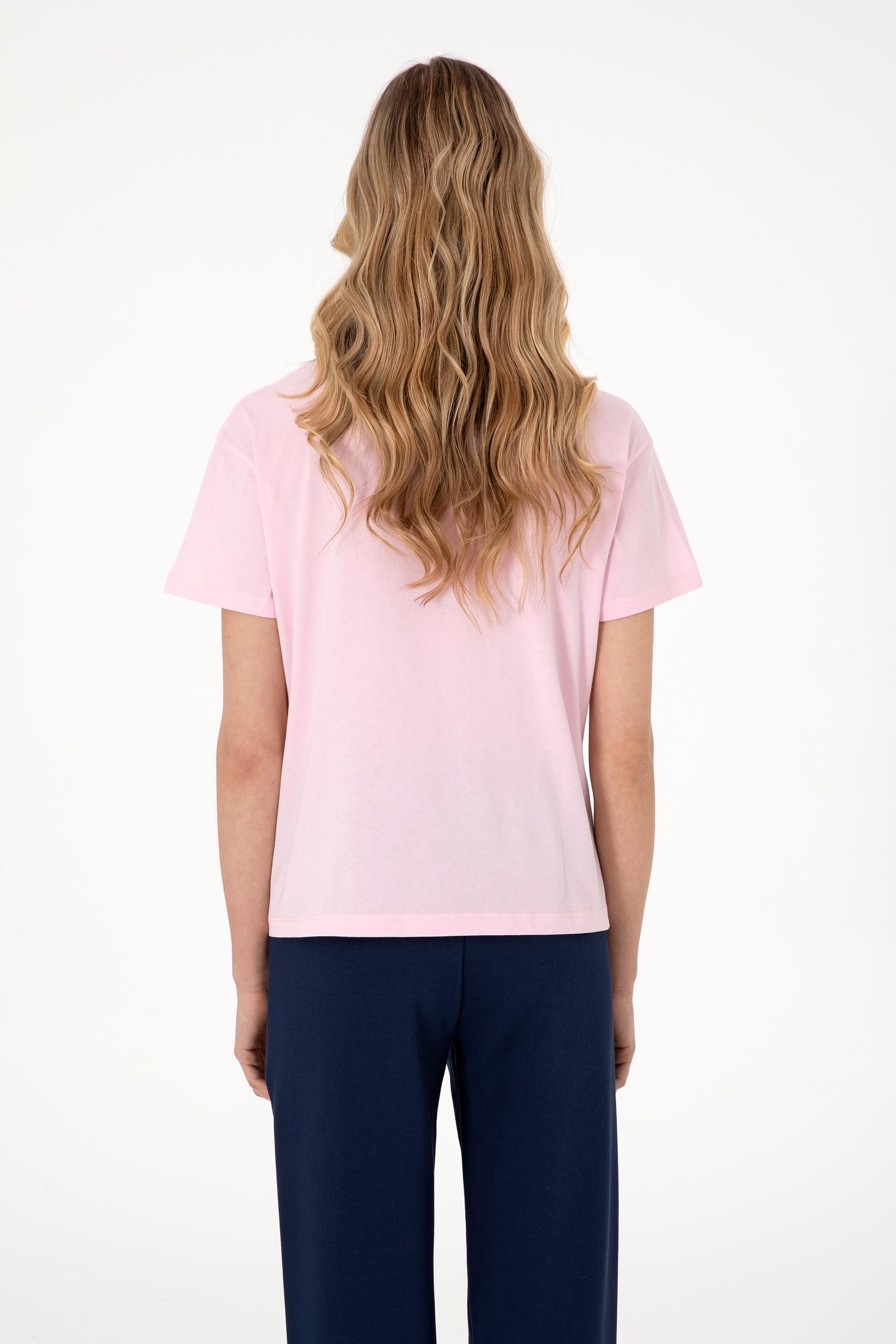 - Kadın Açık Pembe Bisiklet Yaka Tişört