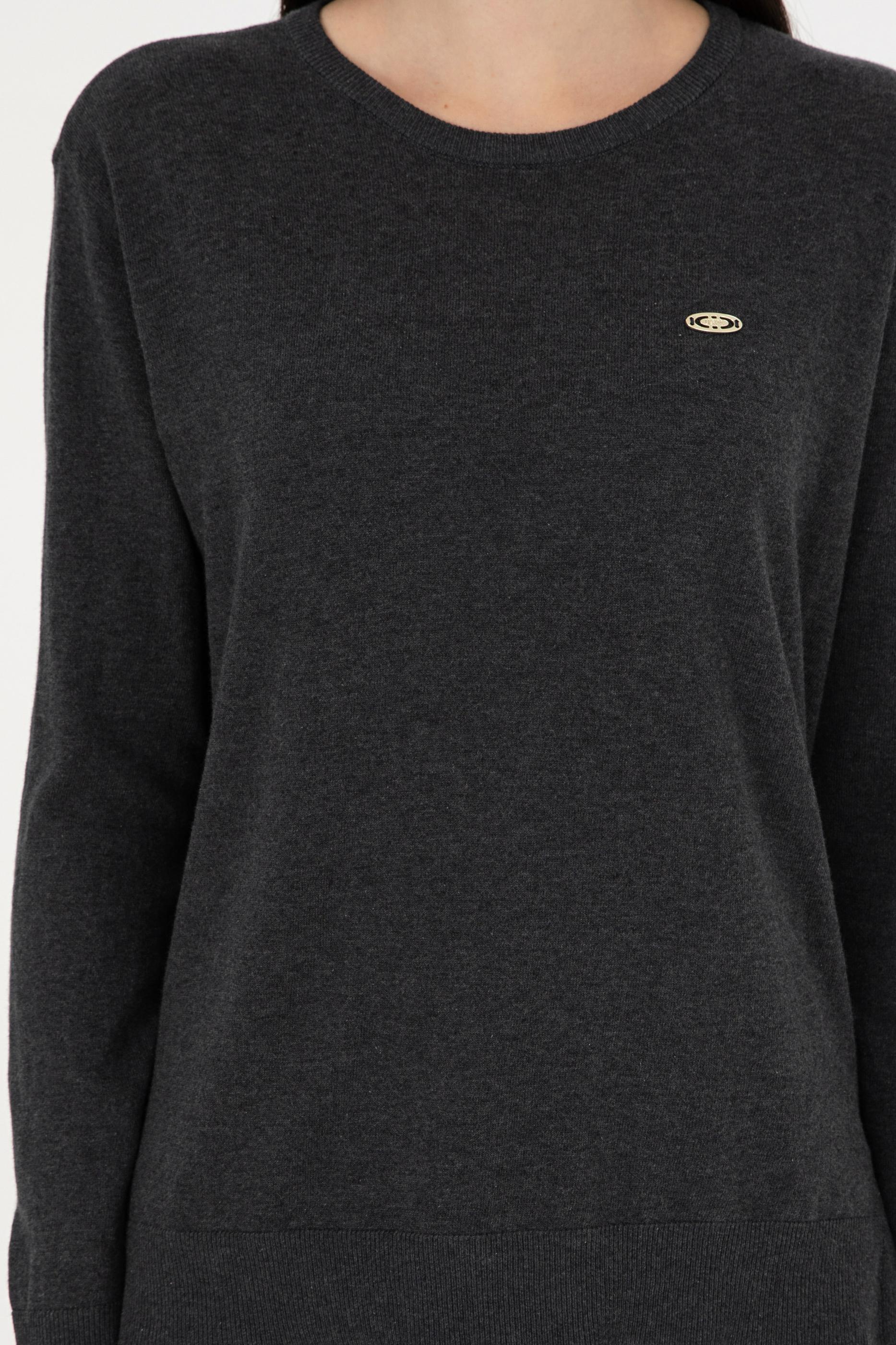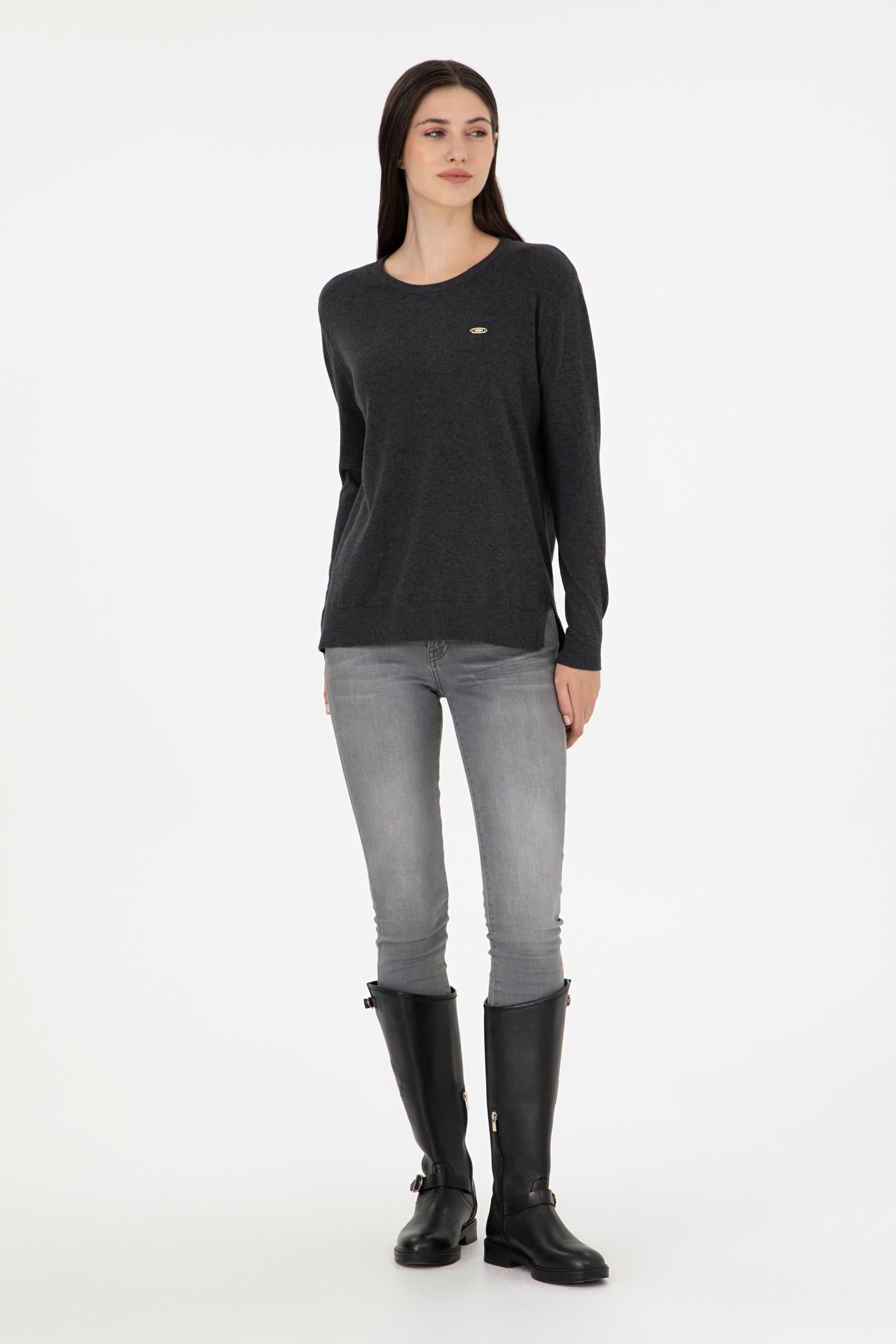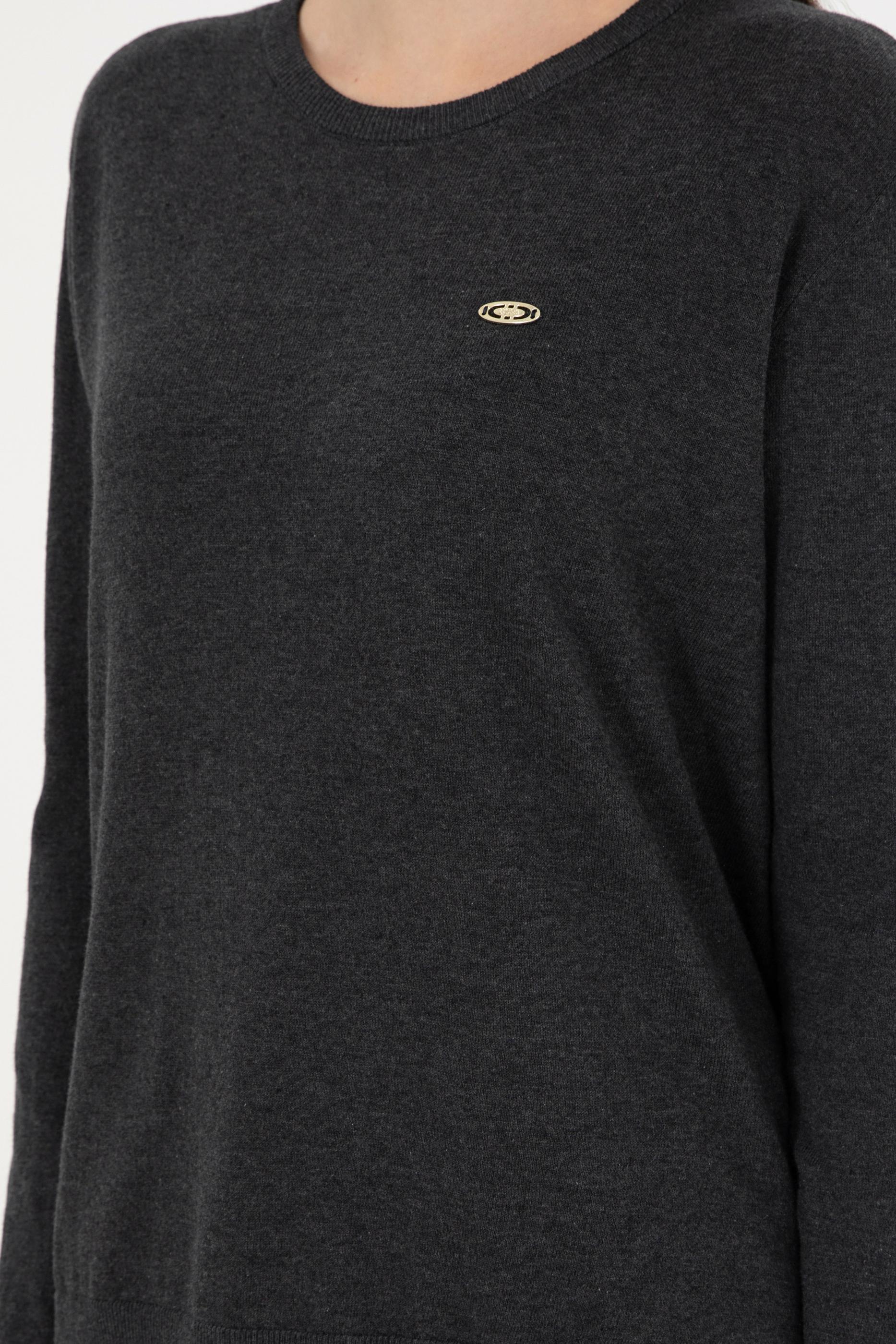 Kadın Antrasit Melanj Basic Bisiklet Yaka Kazak