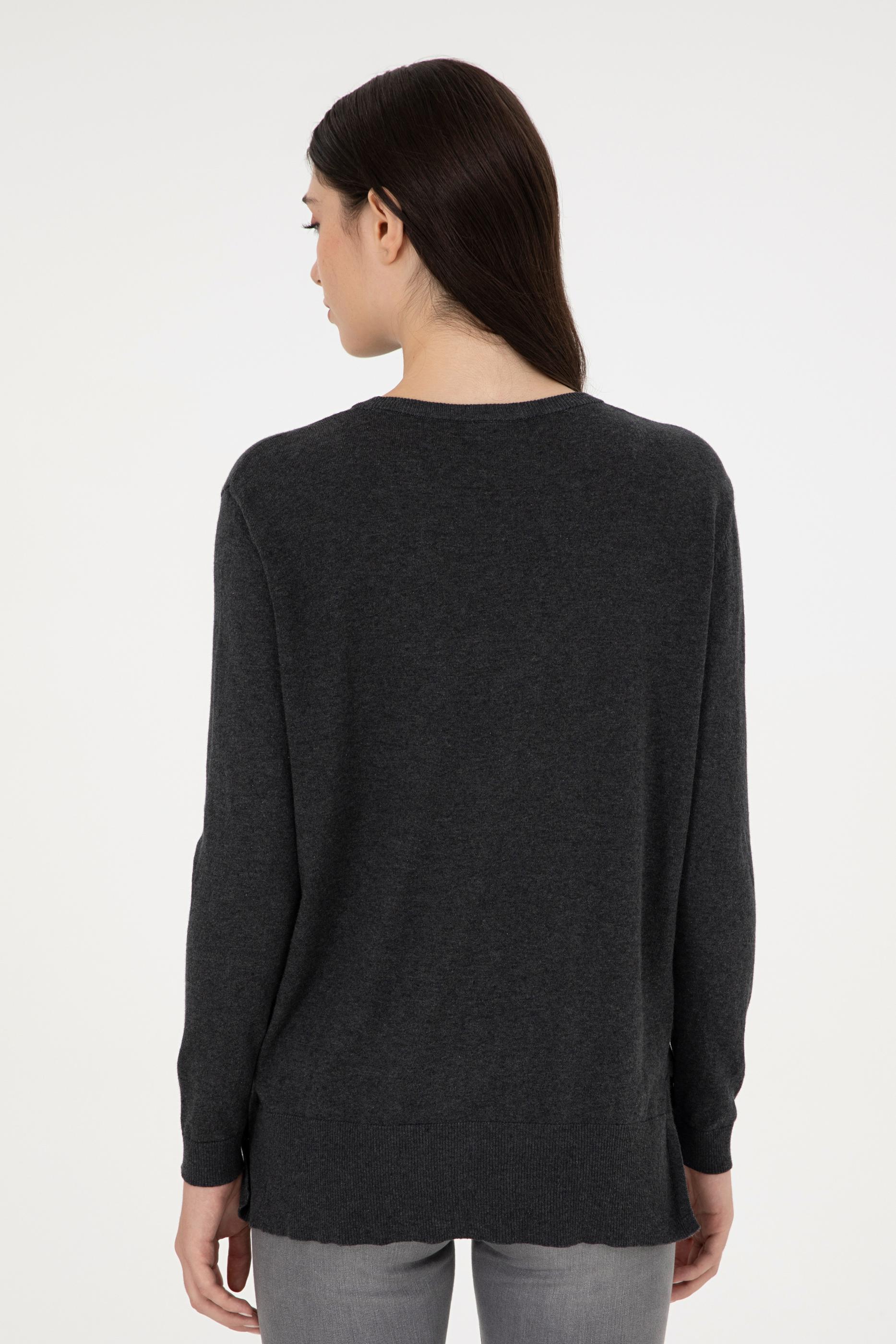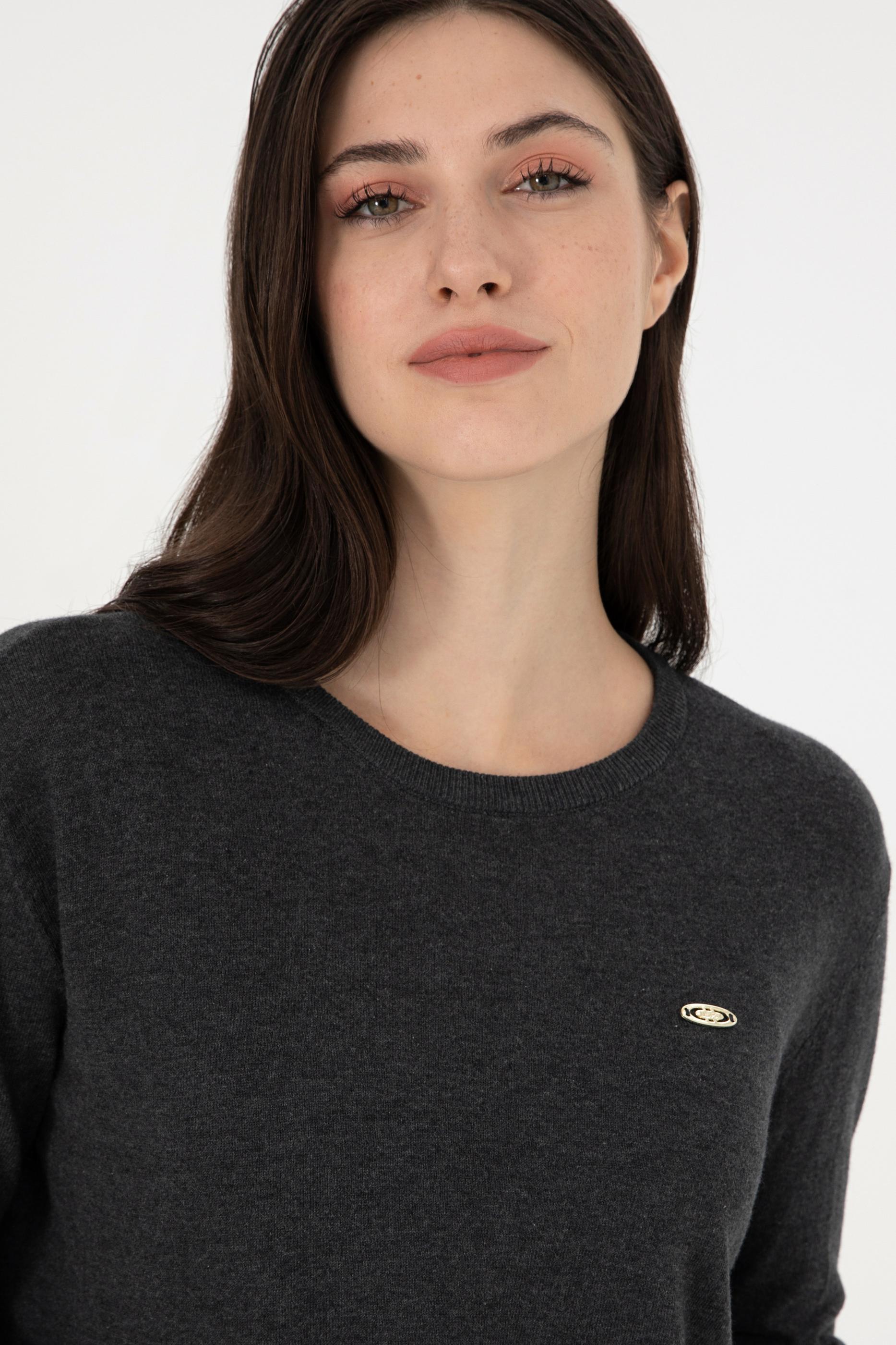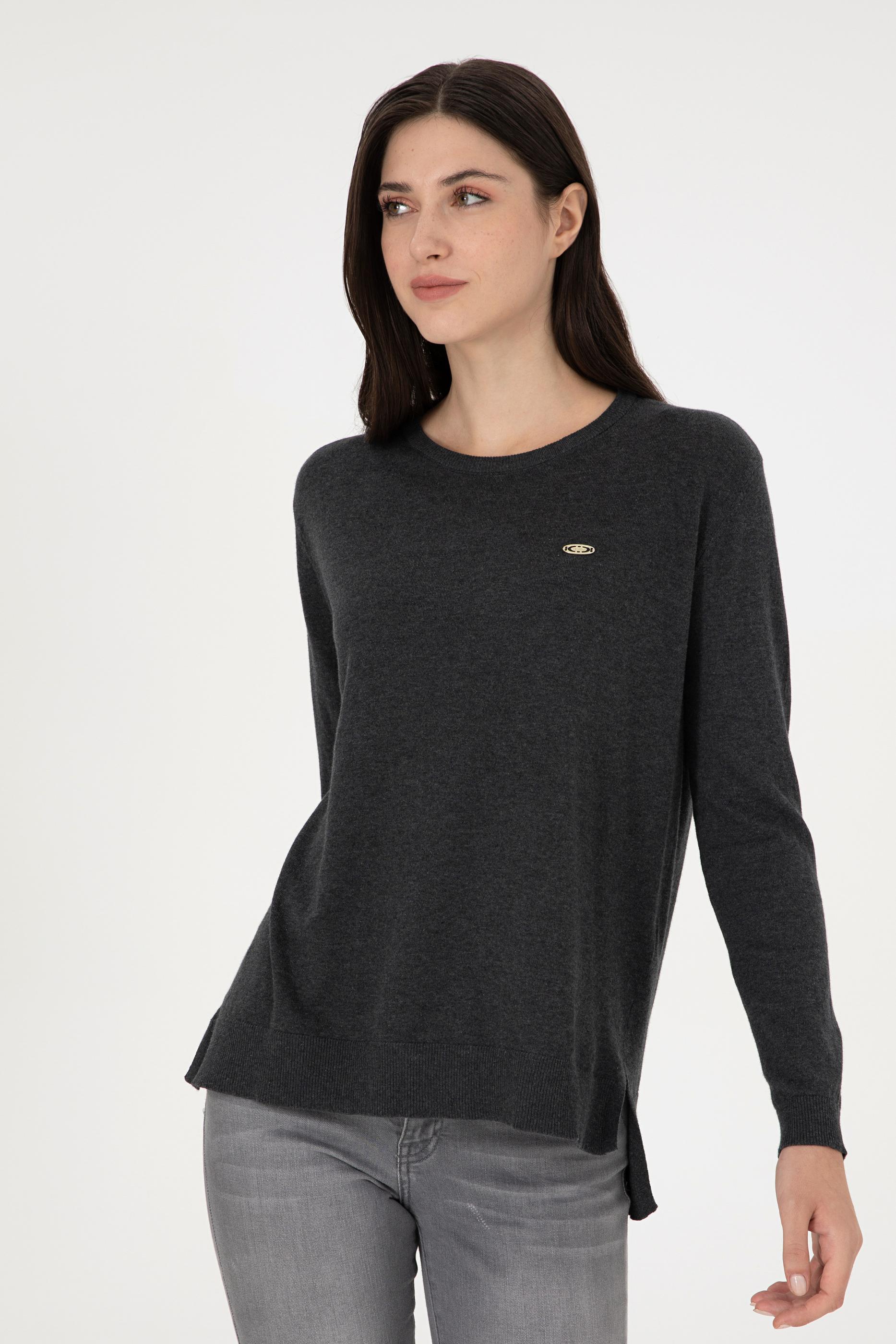 Kadın Antrasit Melanj Basic Bisiklet Yaka Kazak