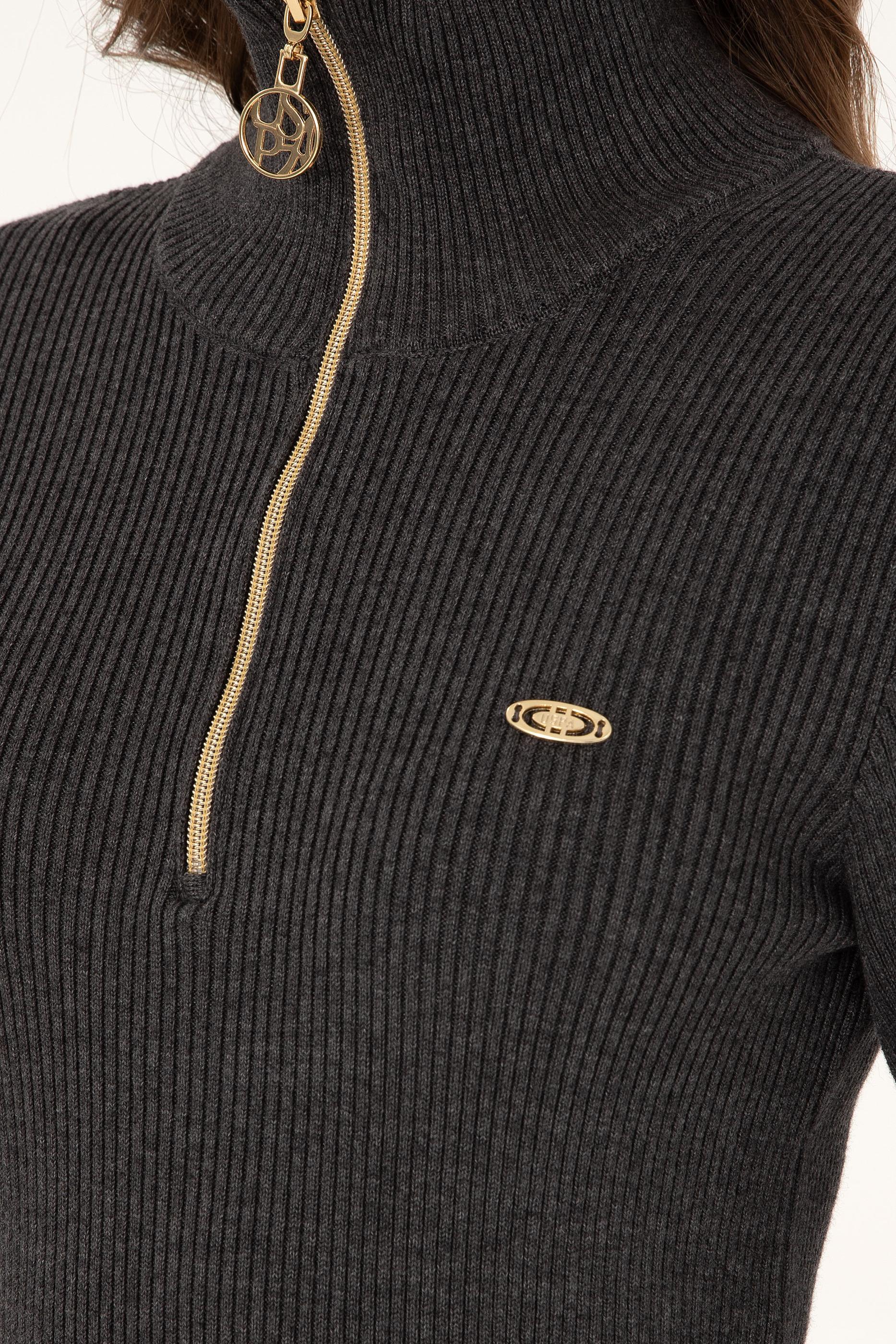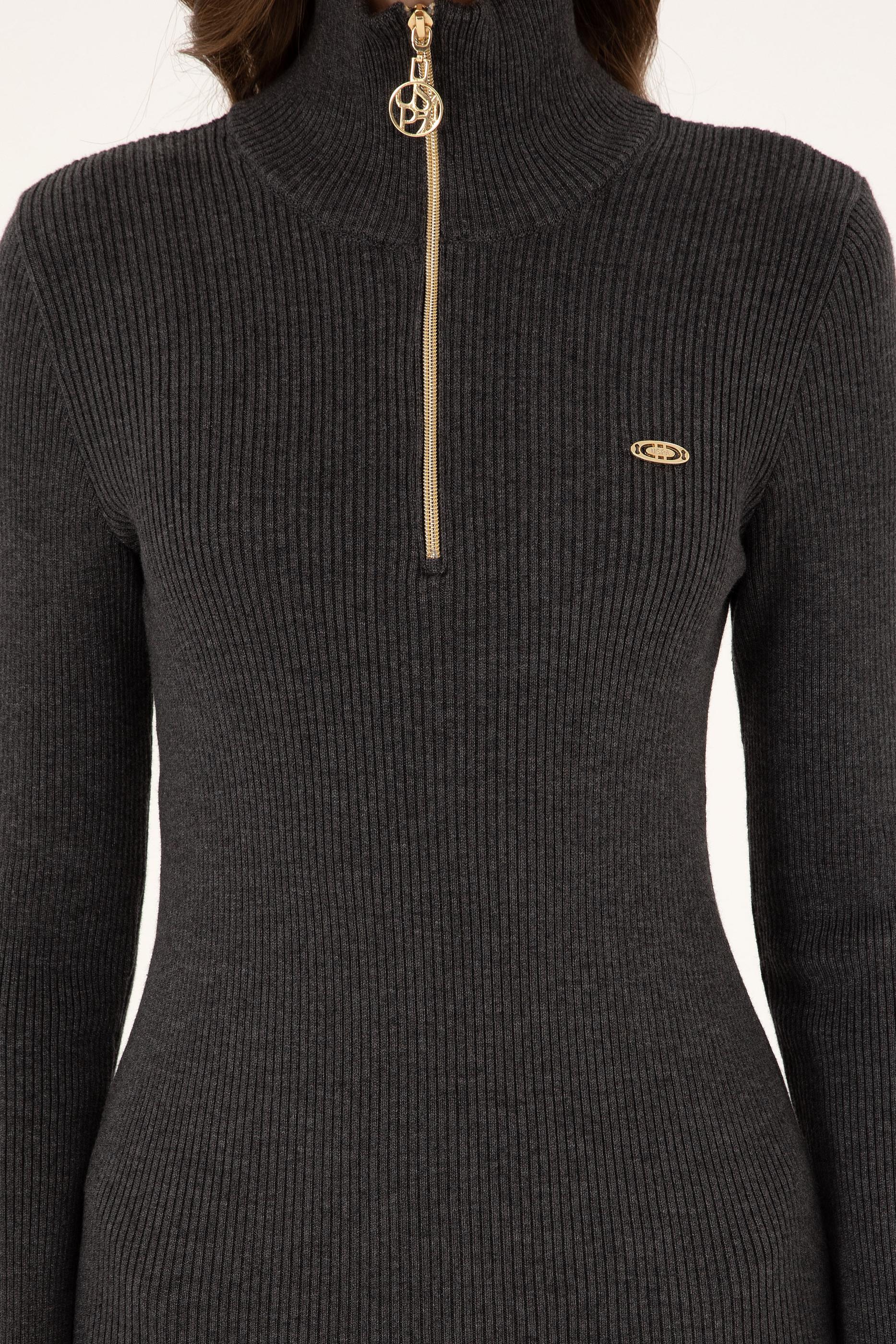 Kadın Antrasit Melanj Mini Boy Triko Elbise