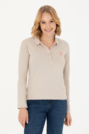 Kadın Bej Polo Yaka Basic Sweatshirt