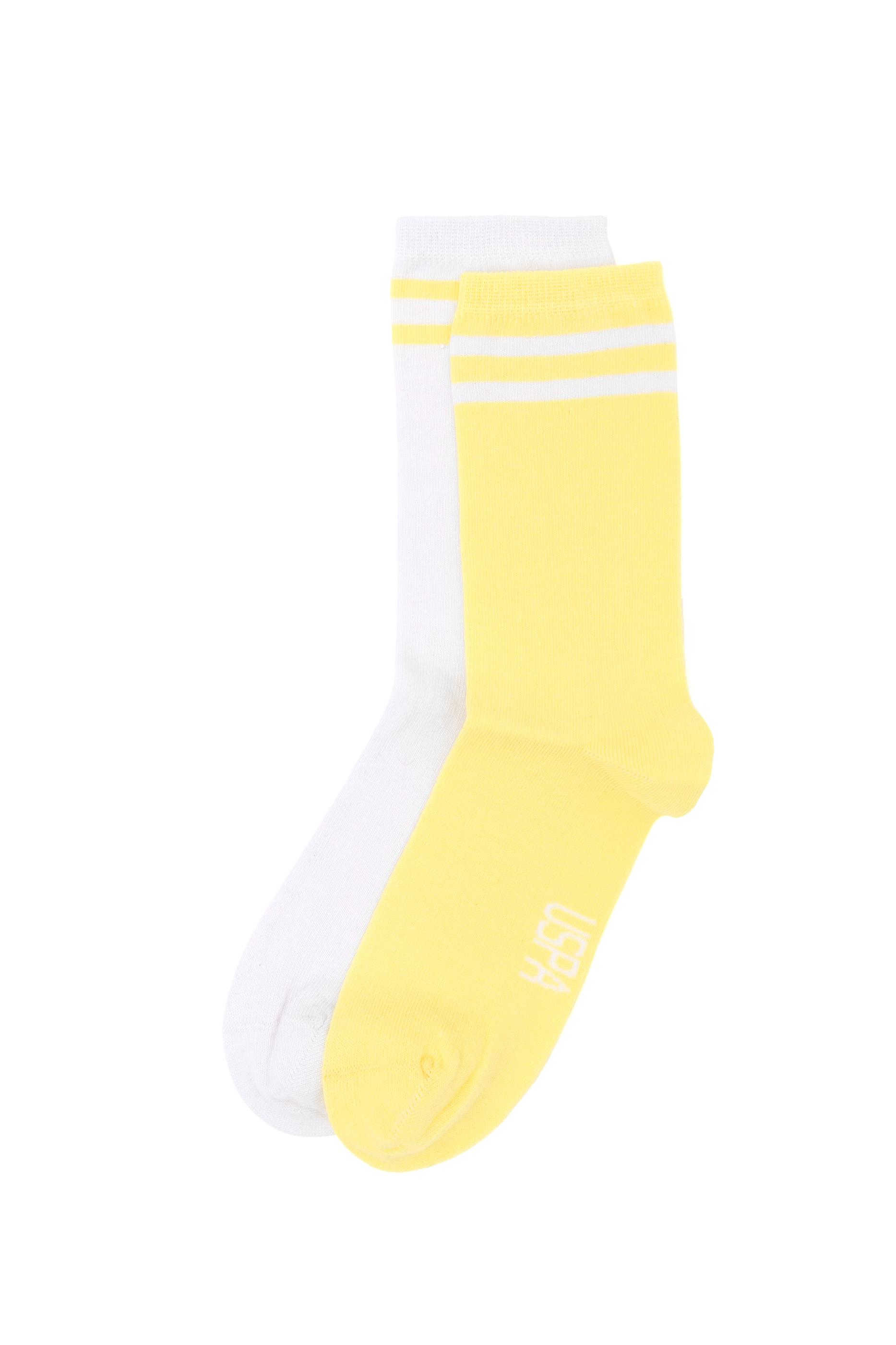 Kadın Beyaz Sarı 2'li Soket Çorap