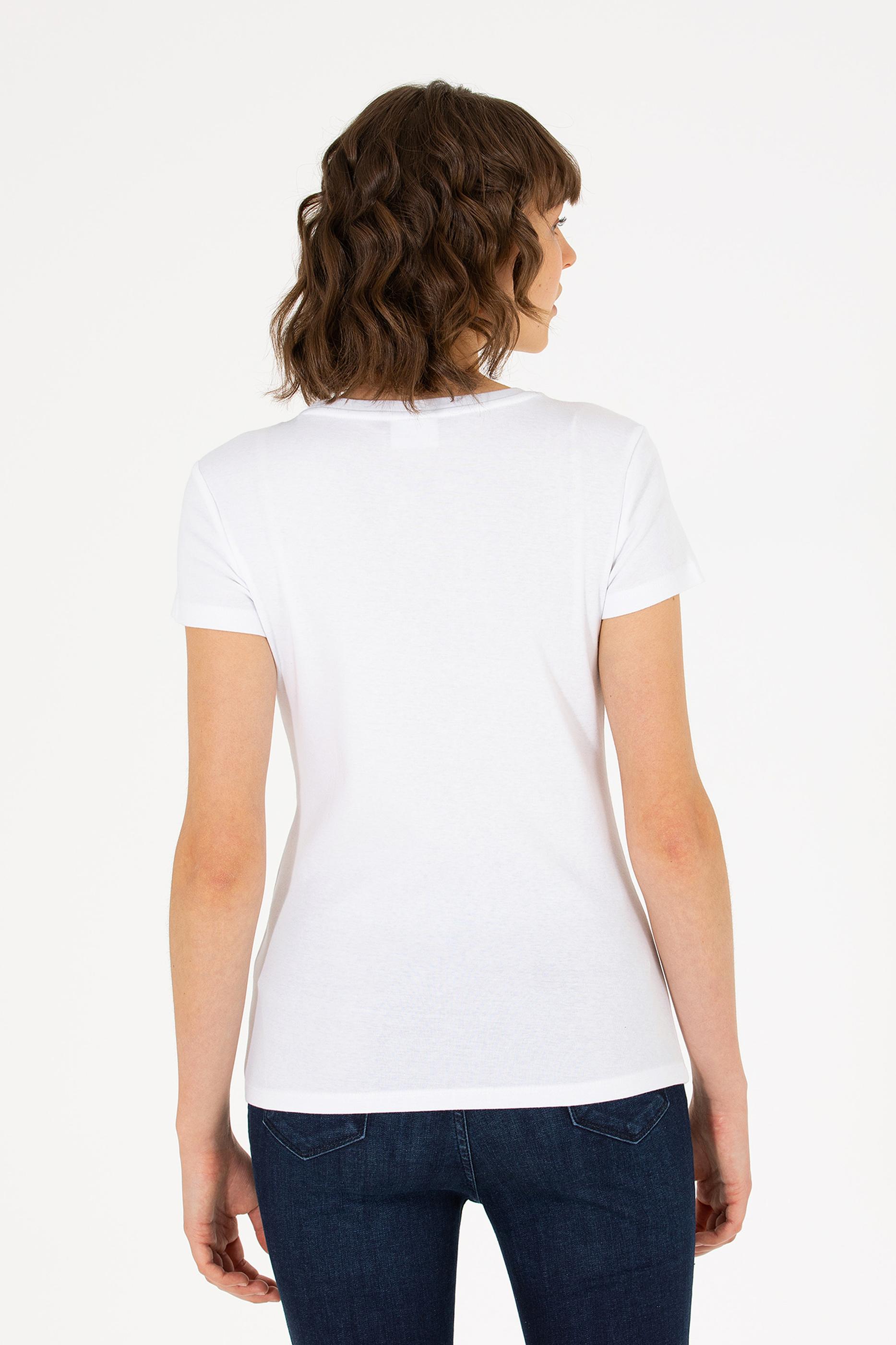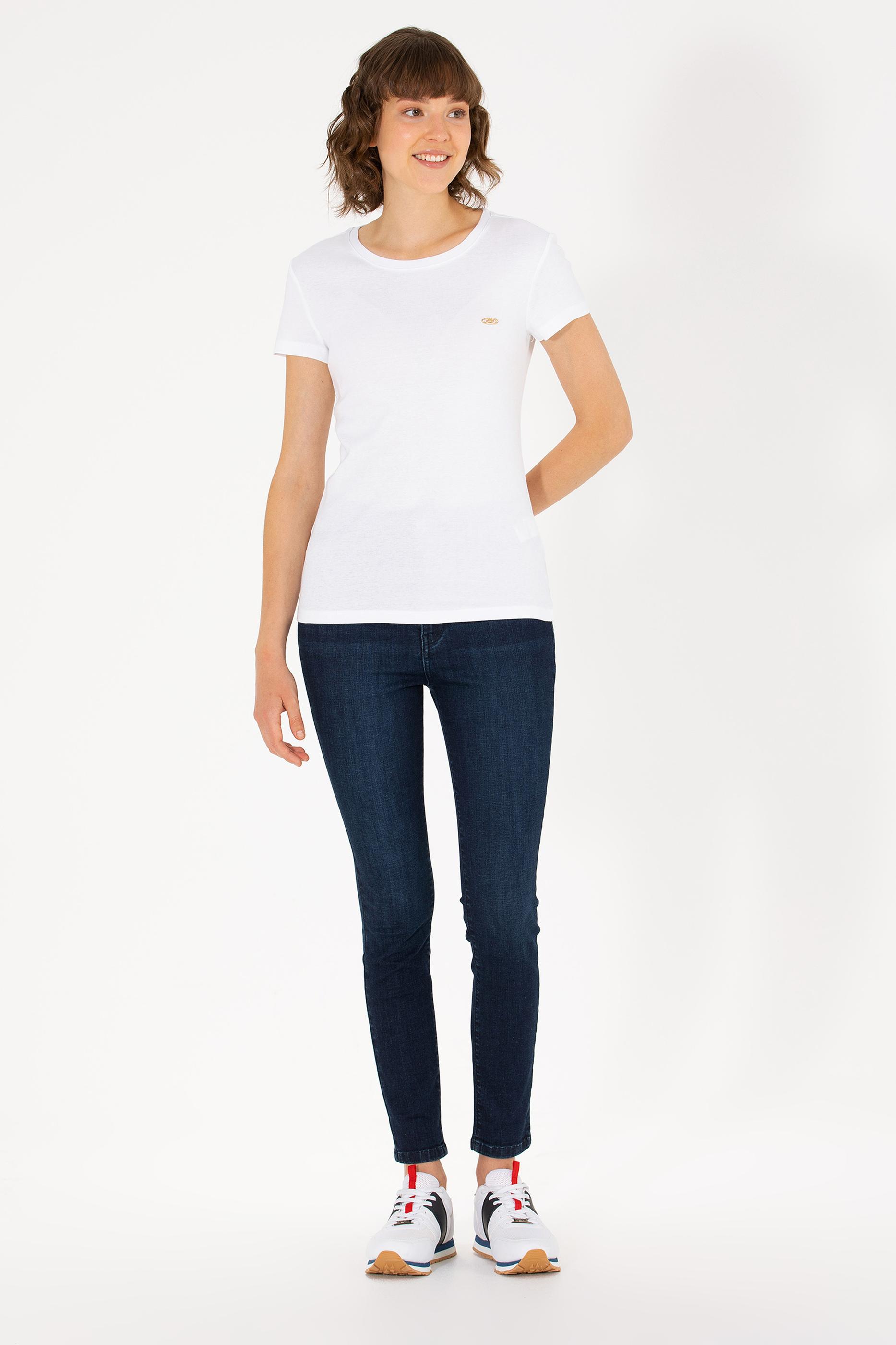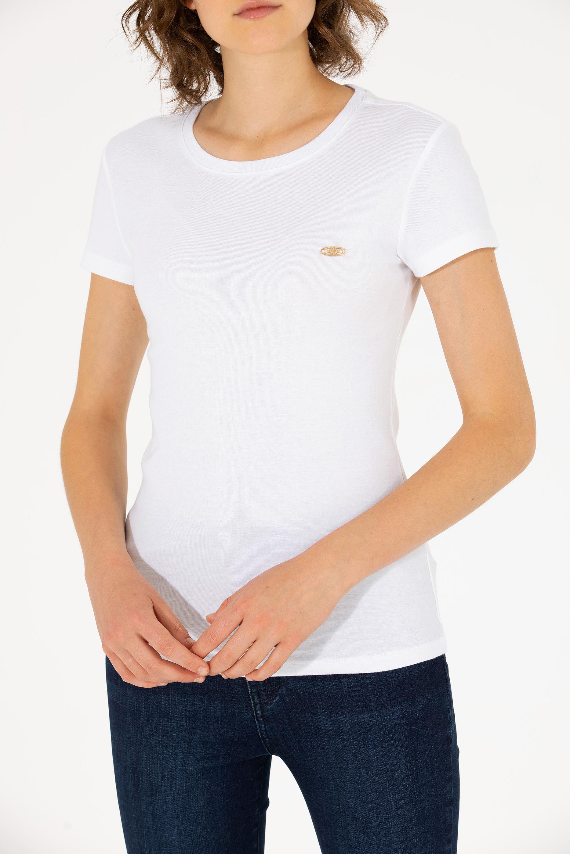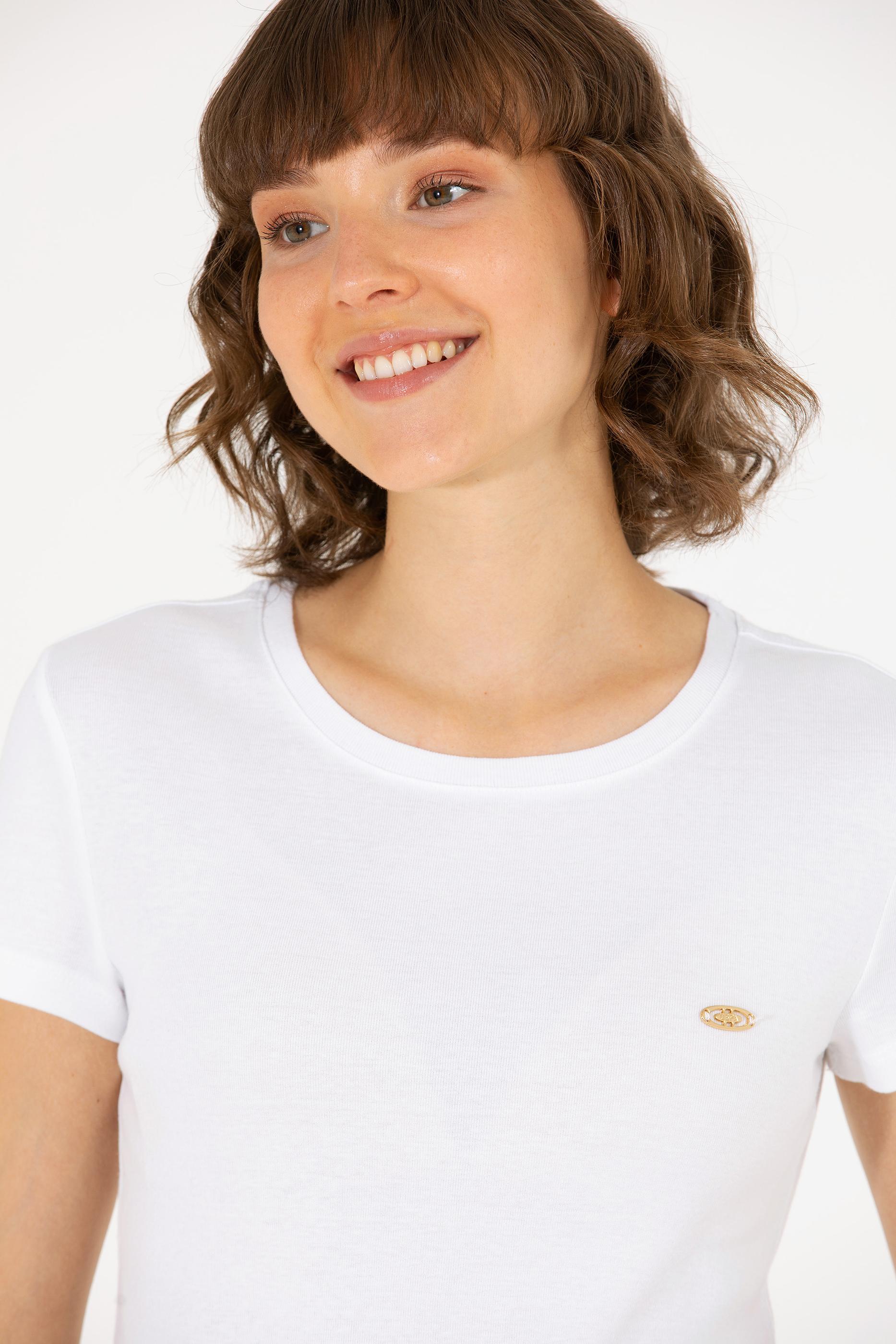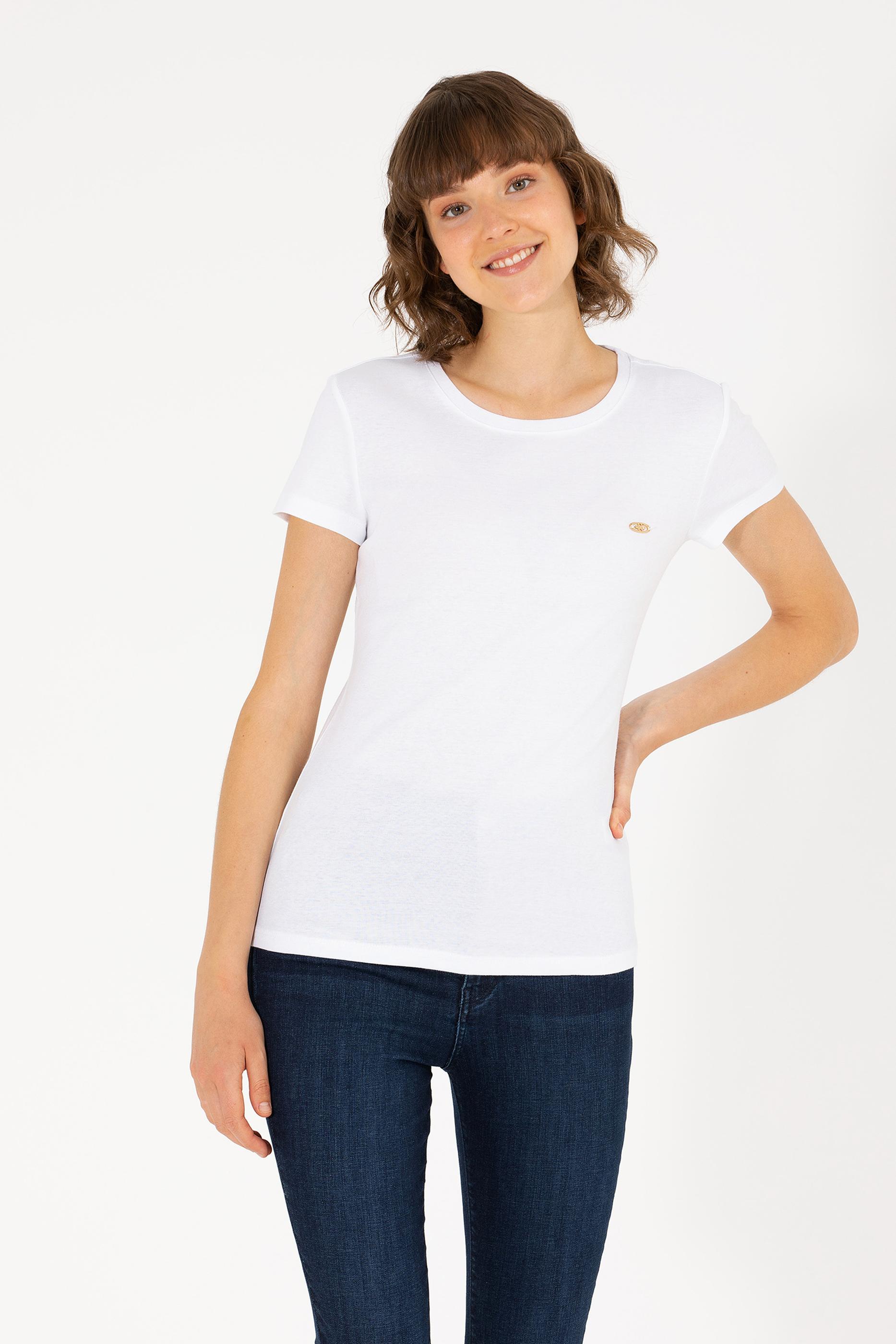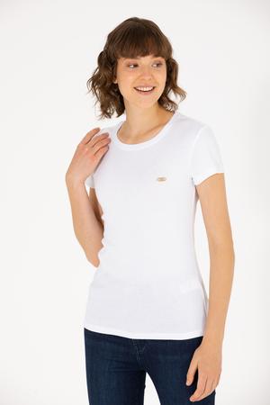 Kadın Beyaz Bisiklet Yaka Tişört