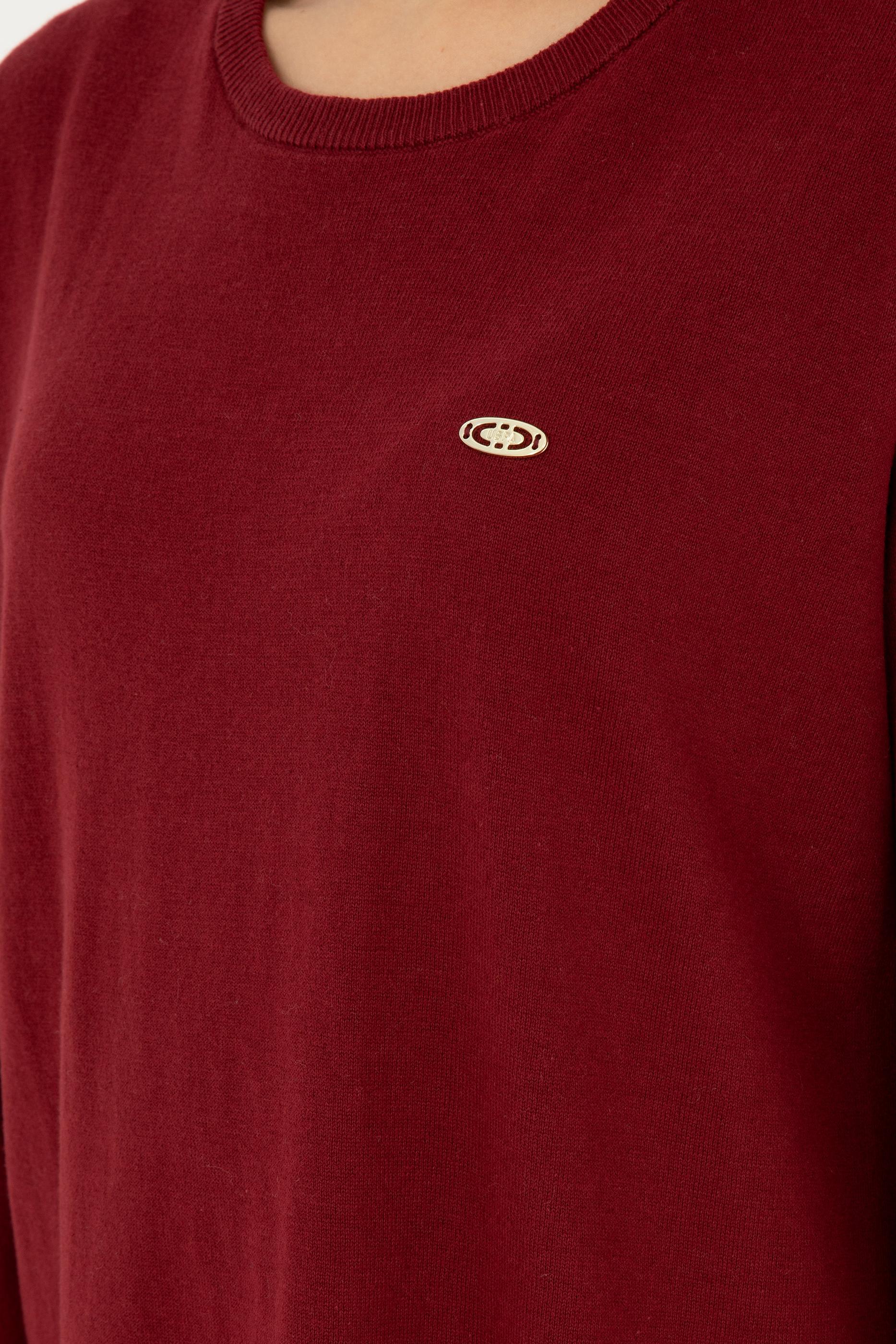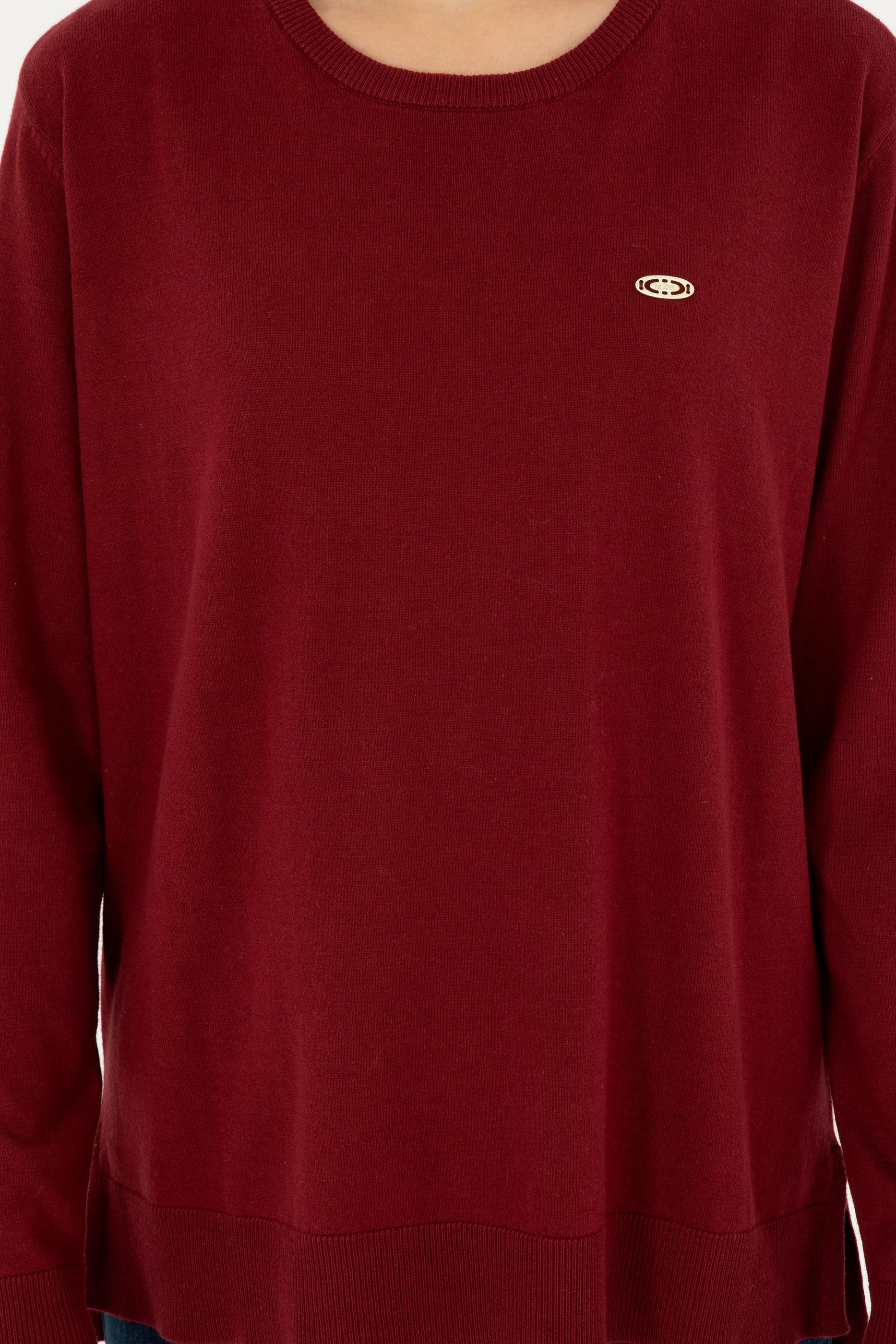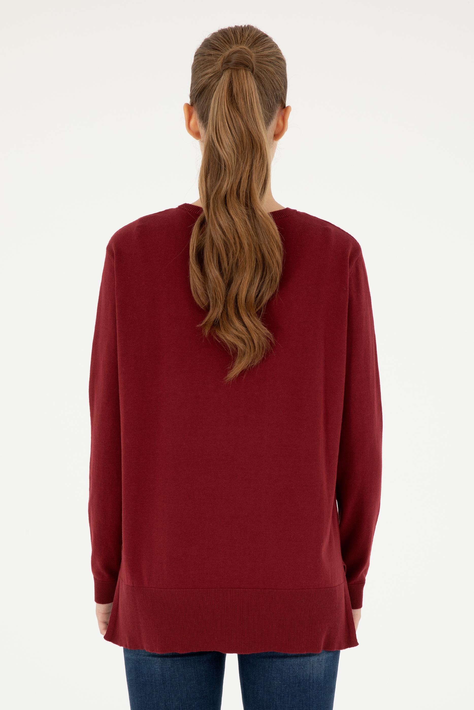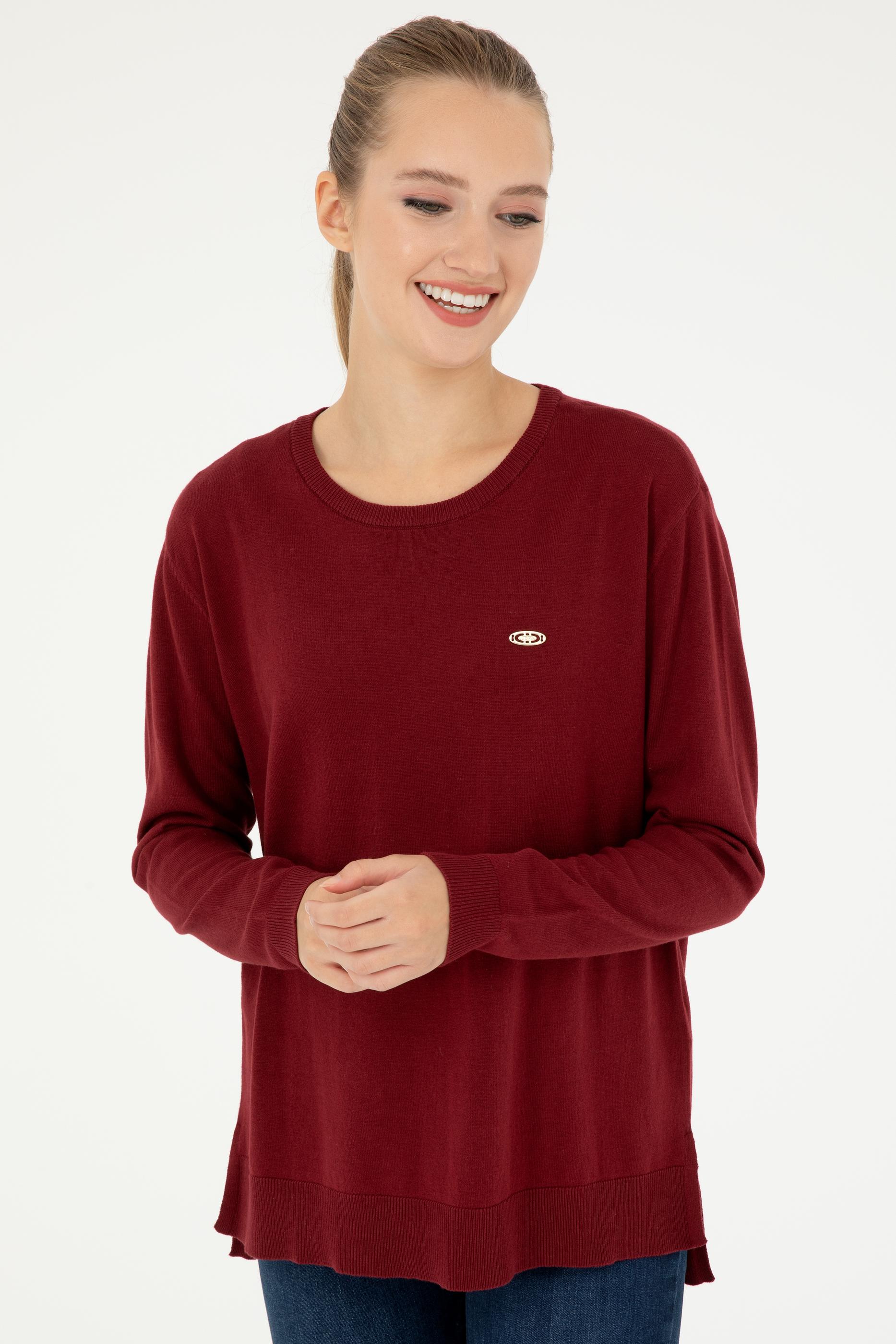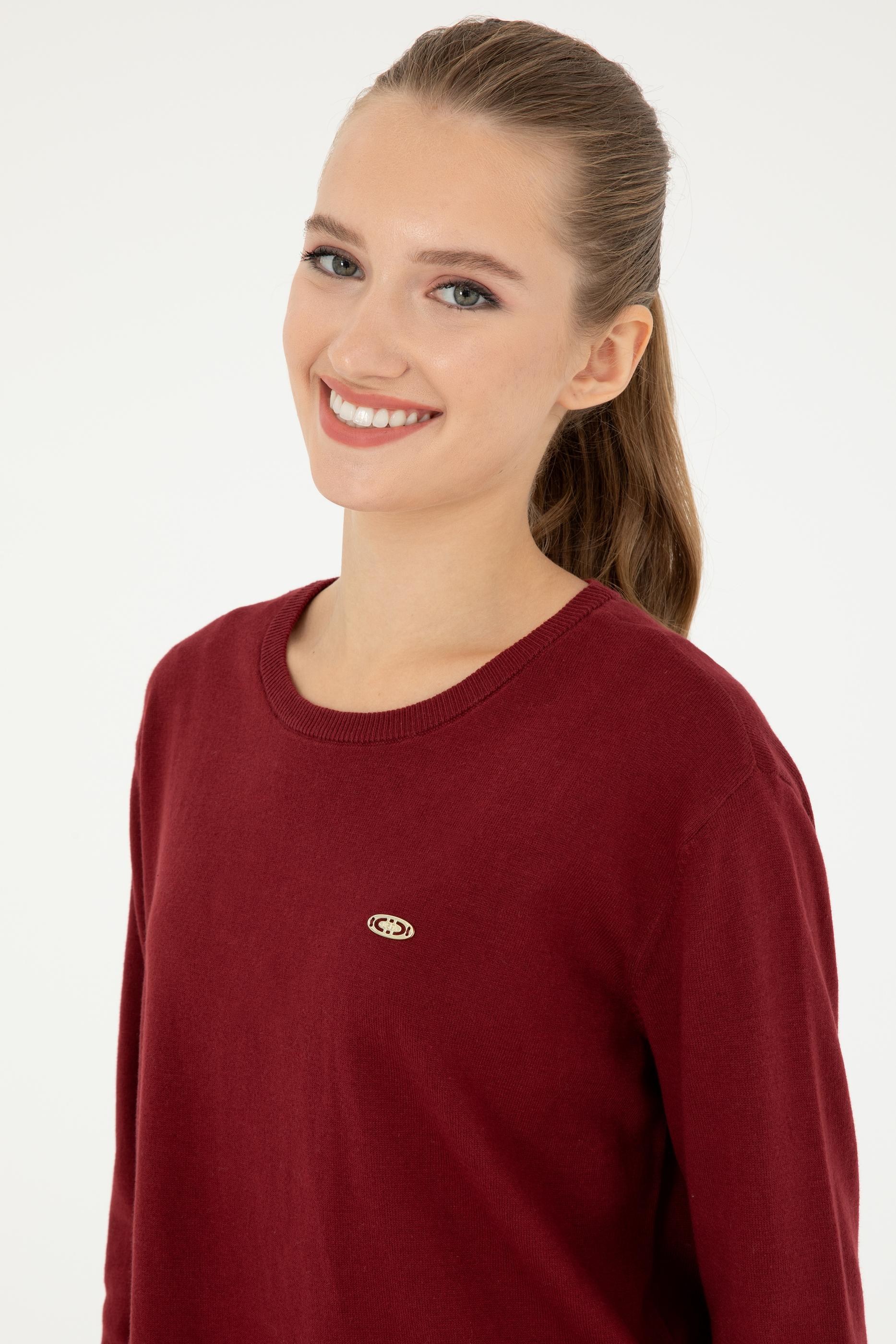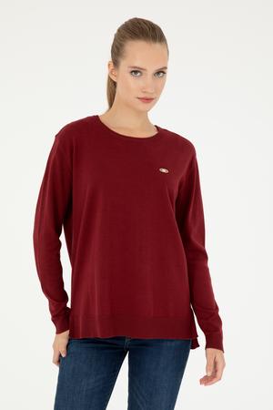 Kadın Bordo Bisiklet Yaka Basic Kazak