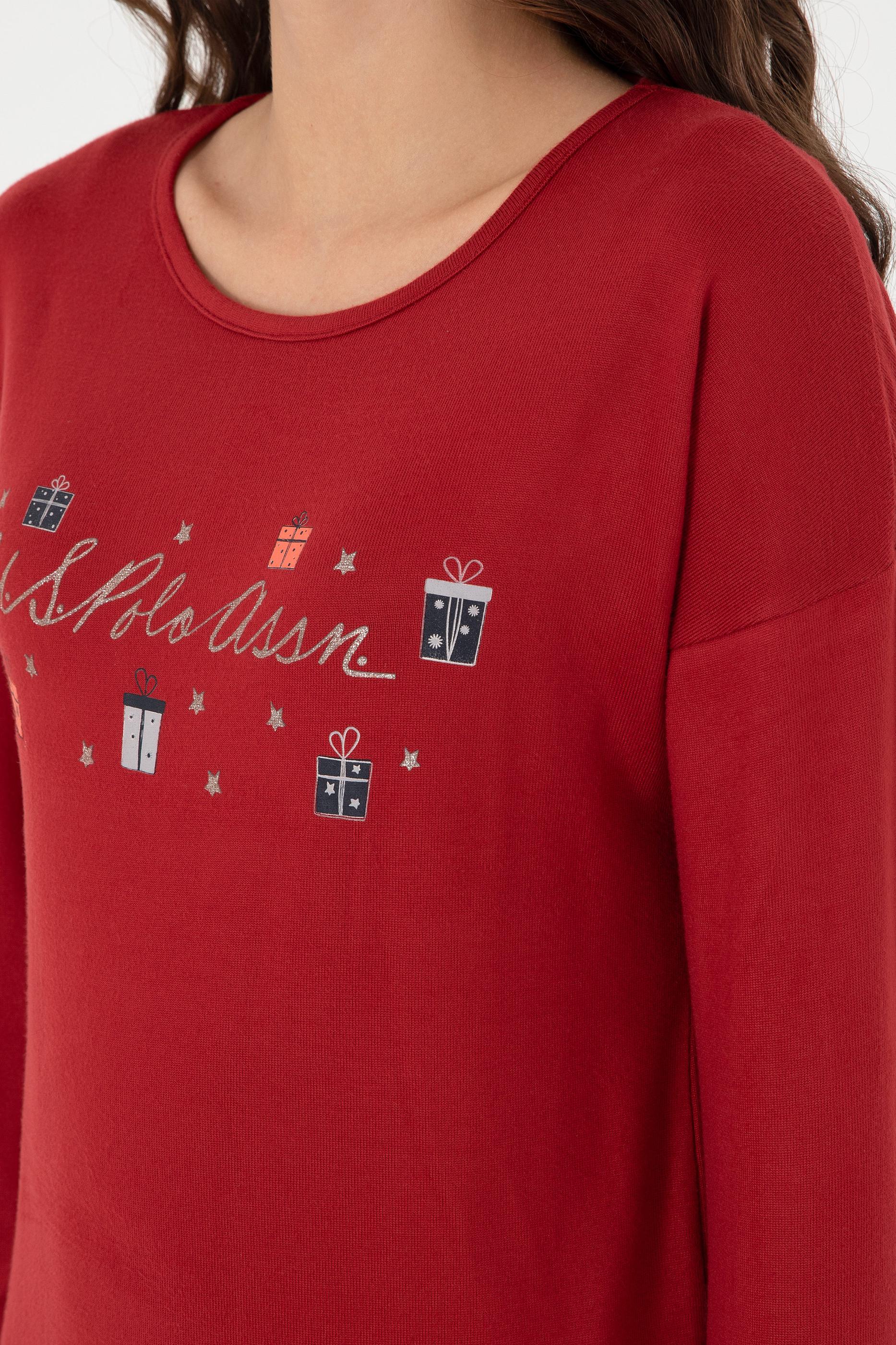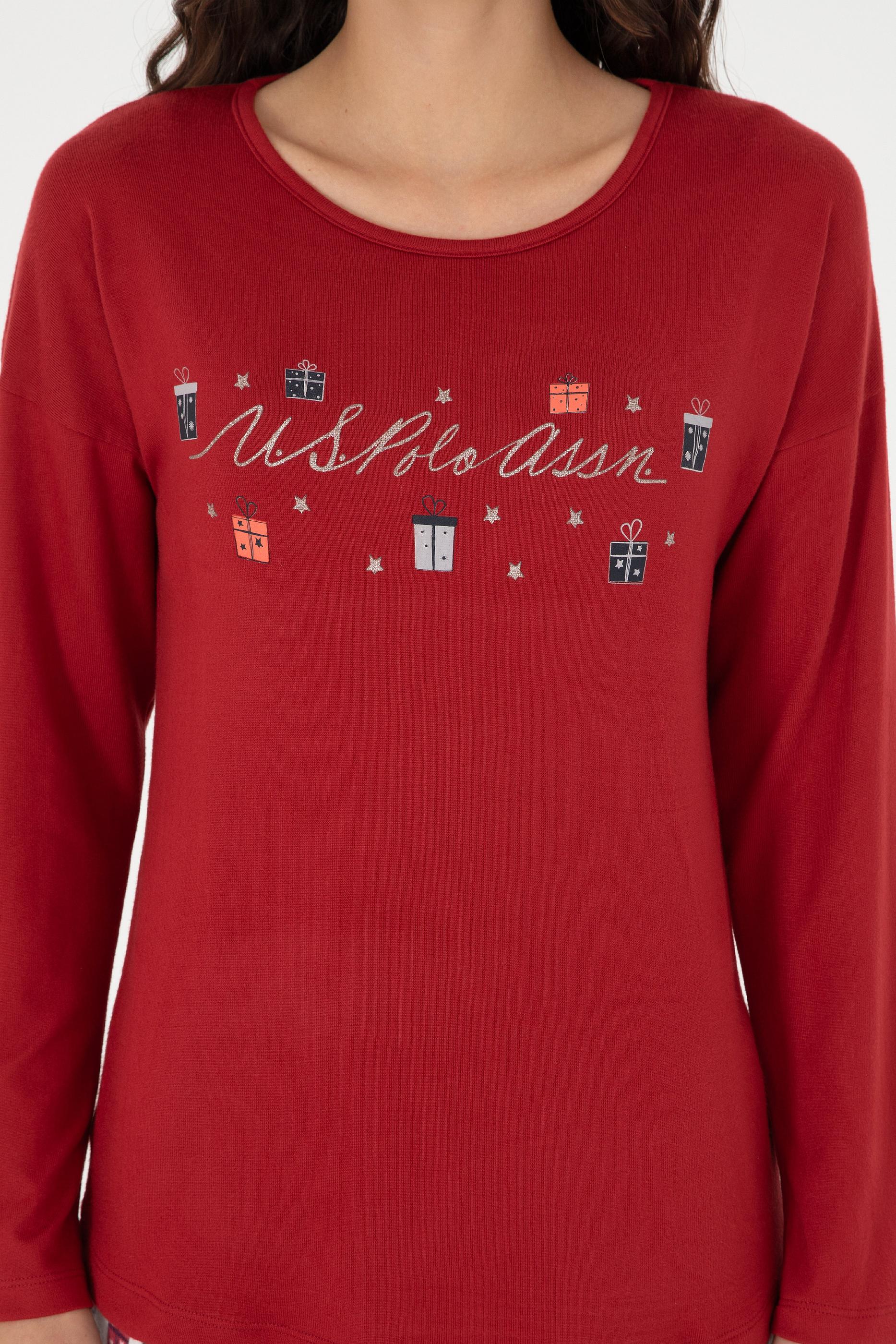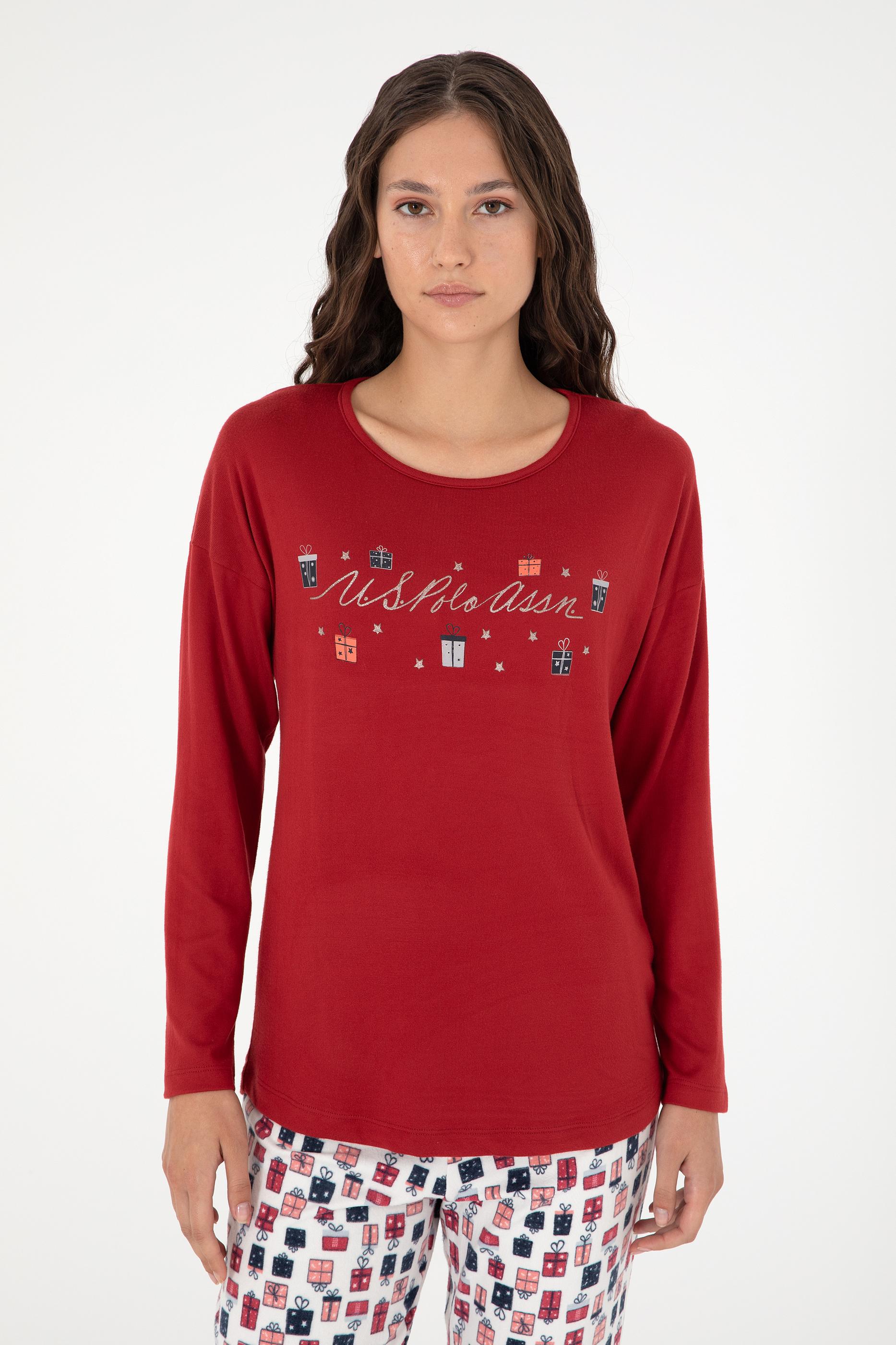 Kadın Bordo Yılbalı Temalı Pijama Takım