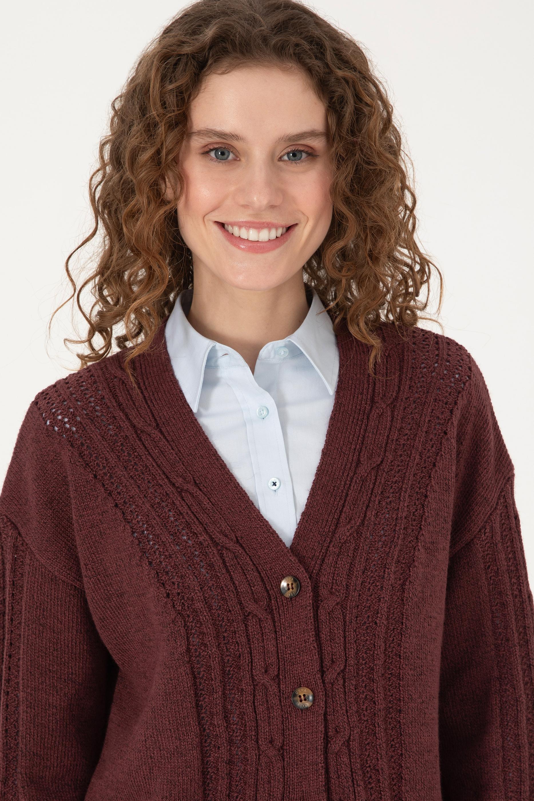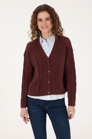 Kadın Bordo Triko Hırka