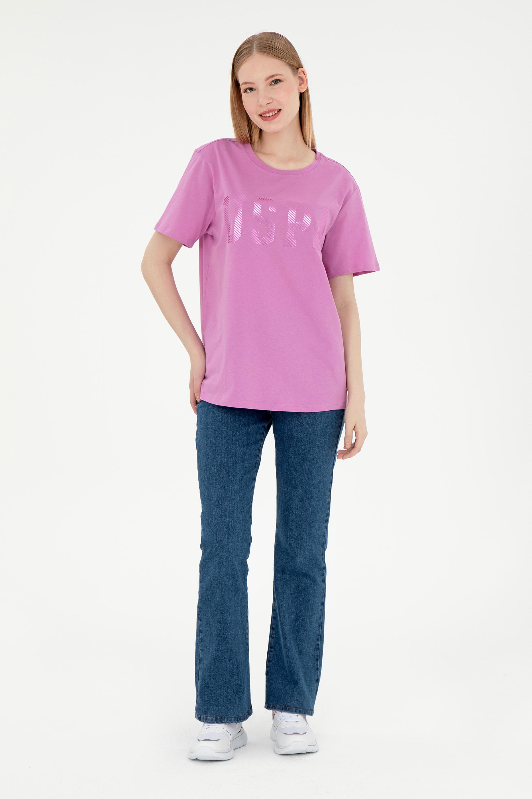 Kadın Pembe Bisiklet Yaka Basic Tişört
