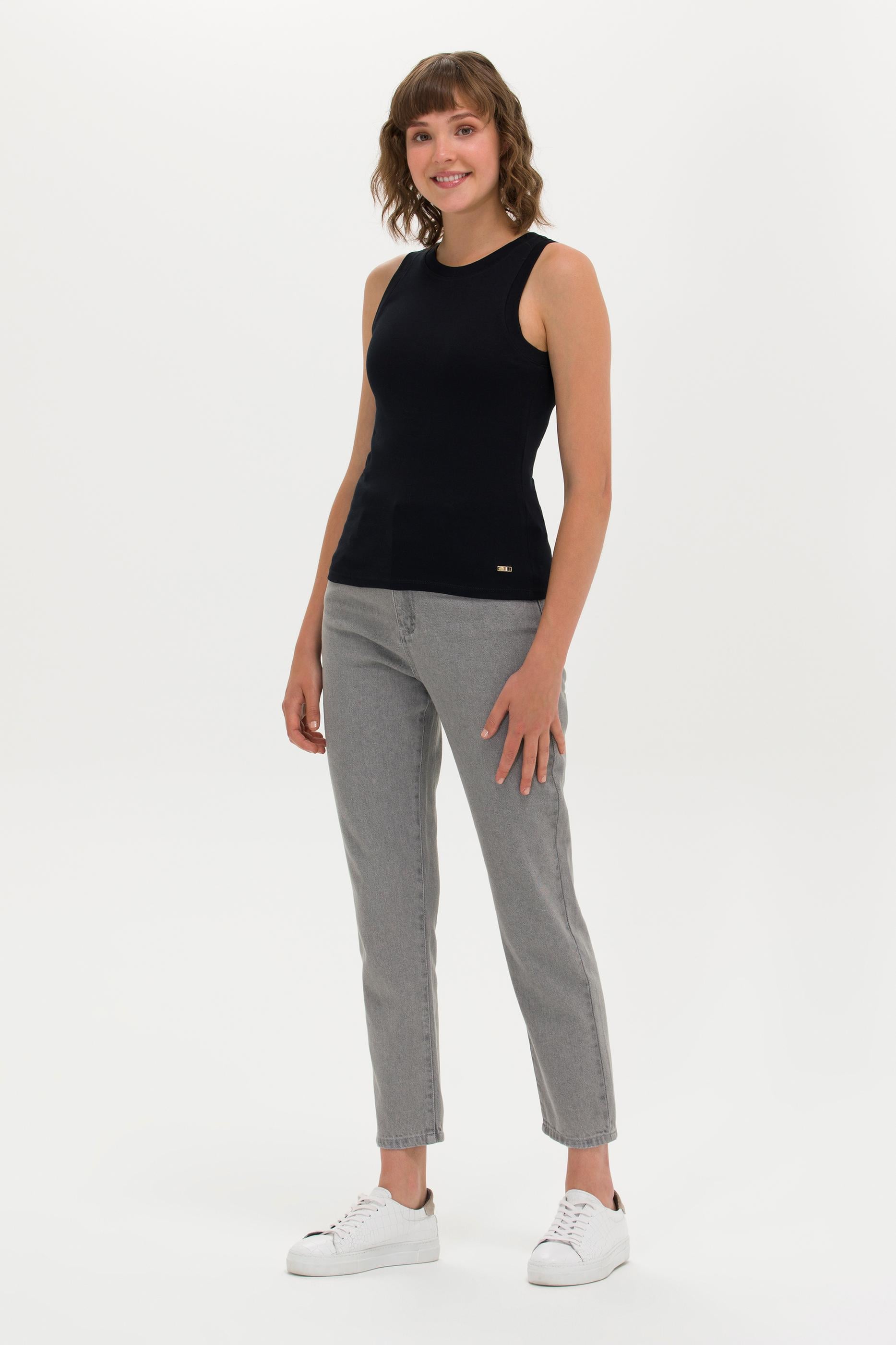 - Kadın Gri Mom High Waist Fit Jean Pantolon