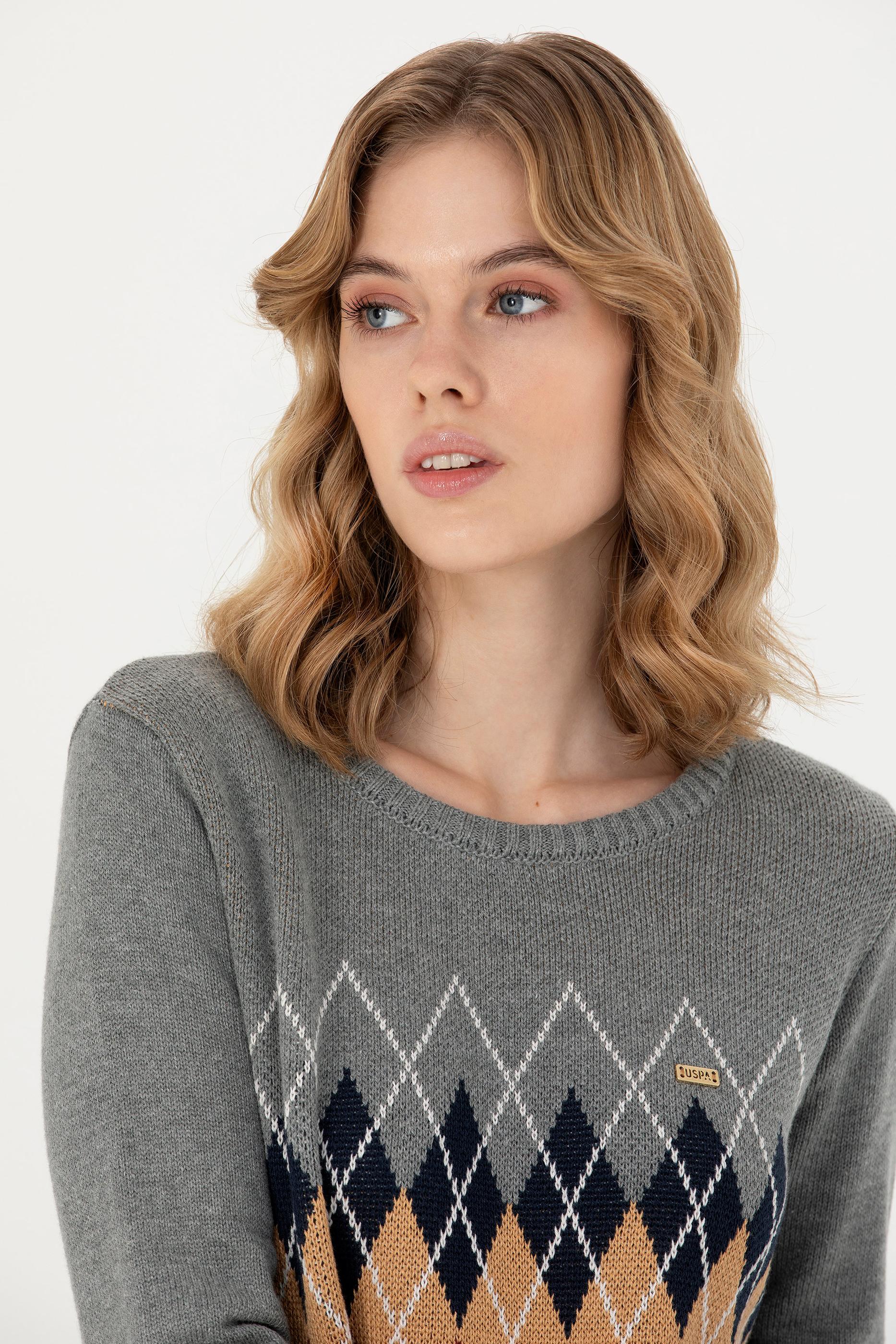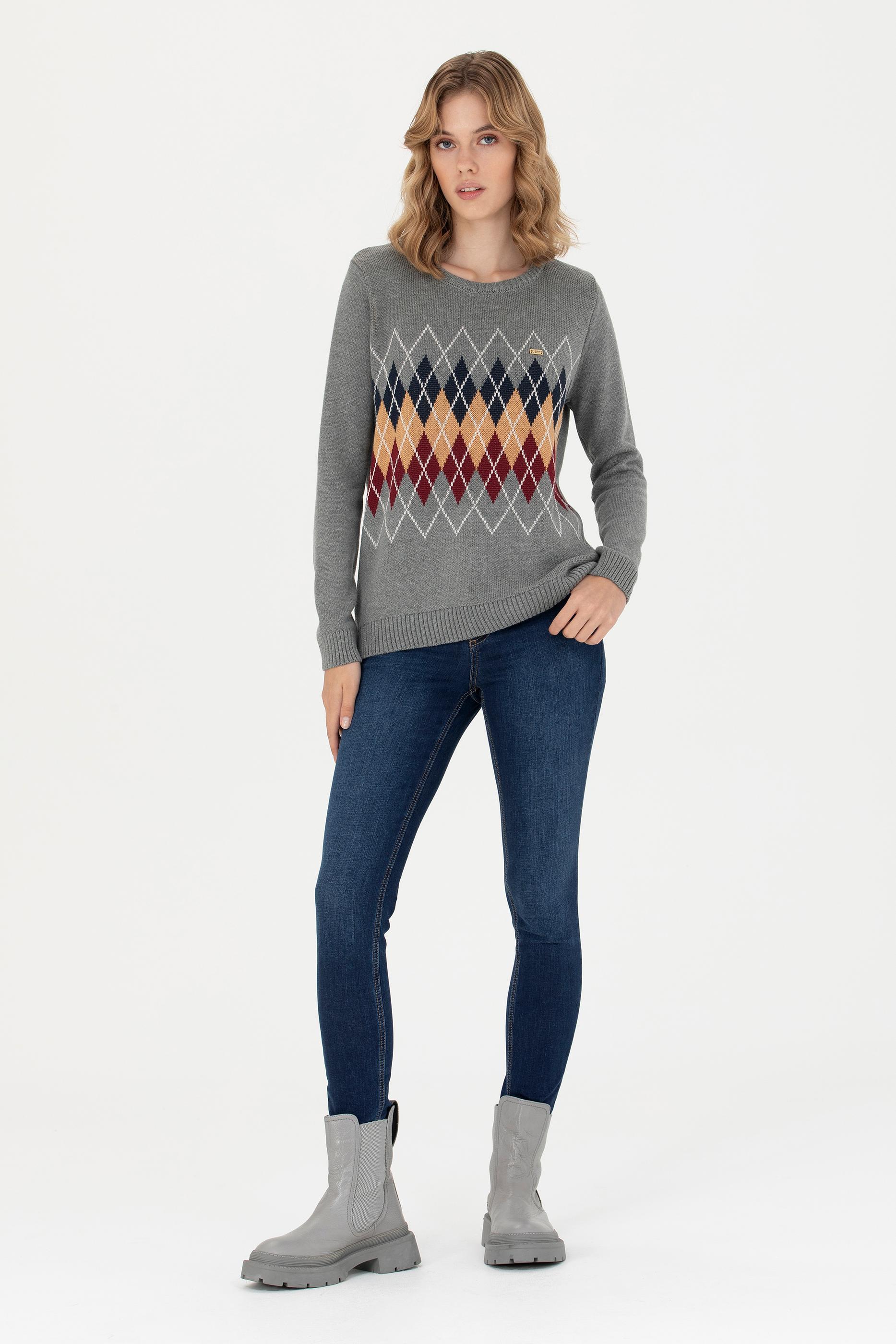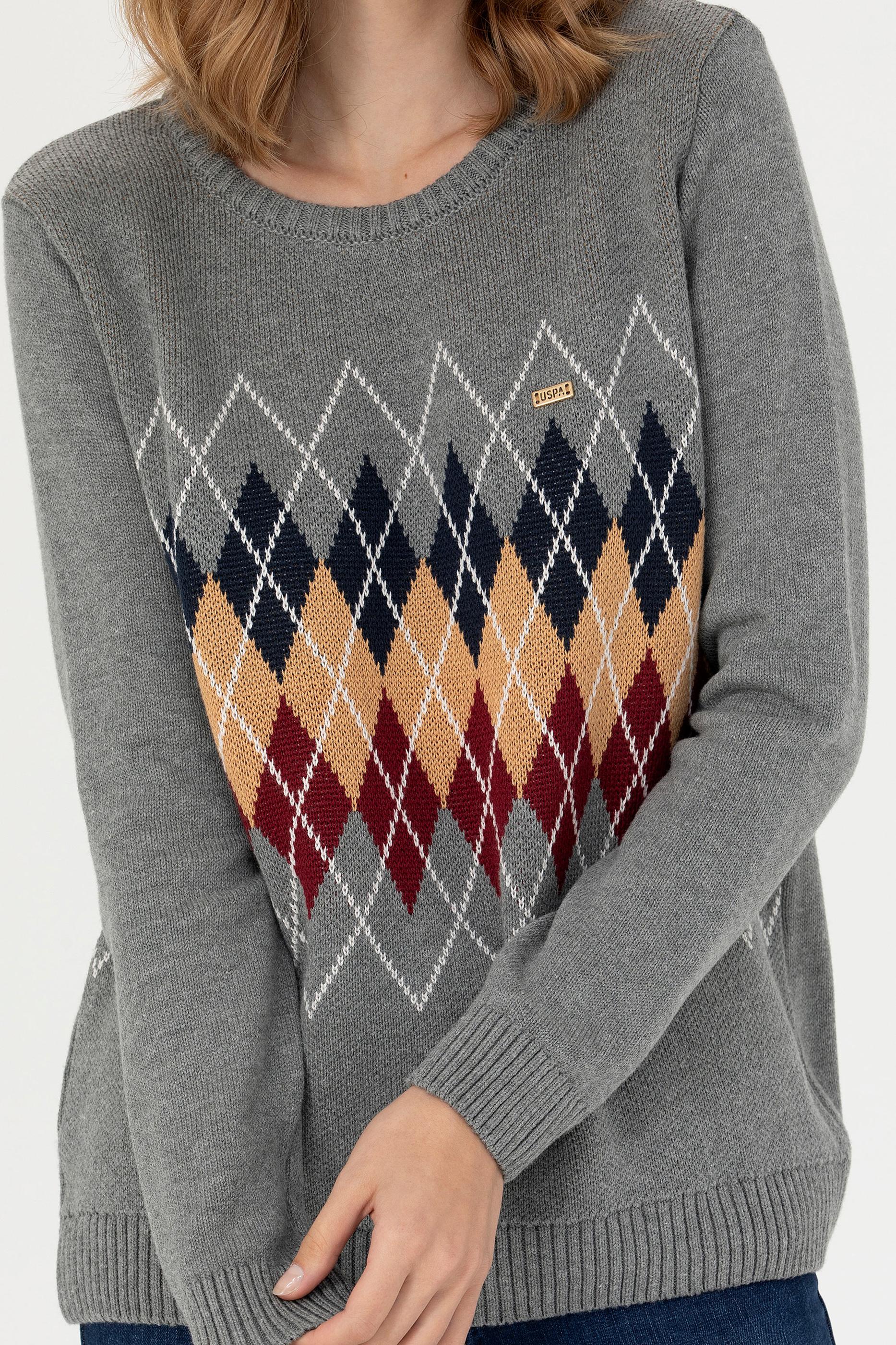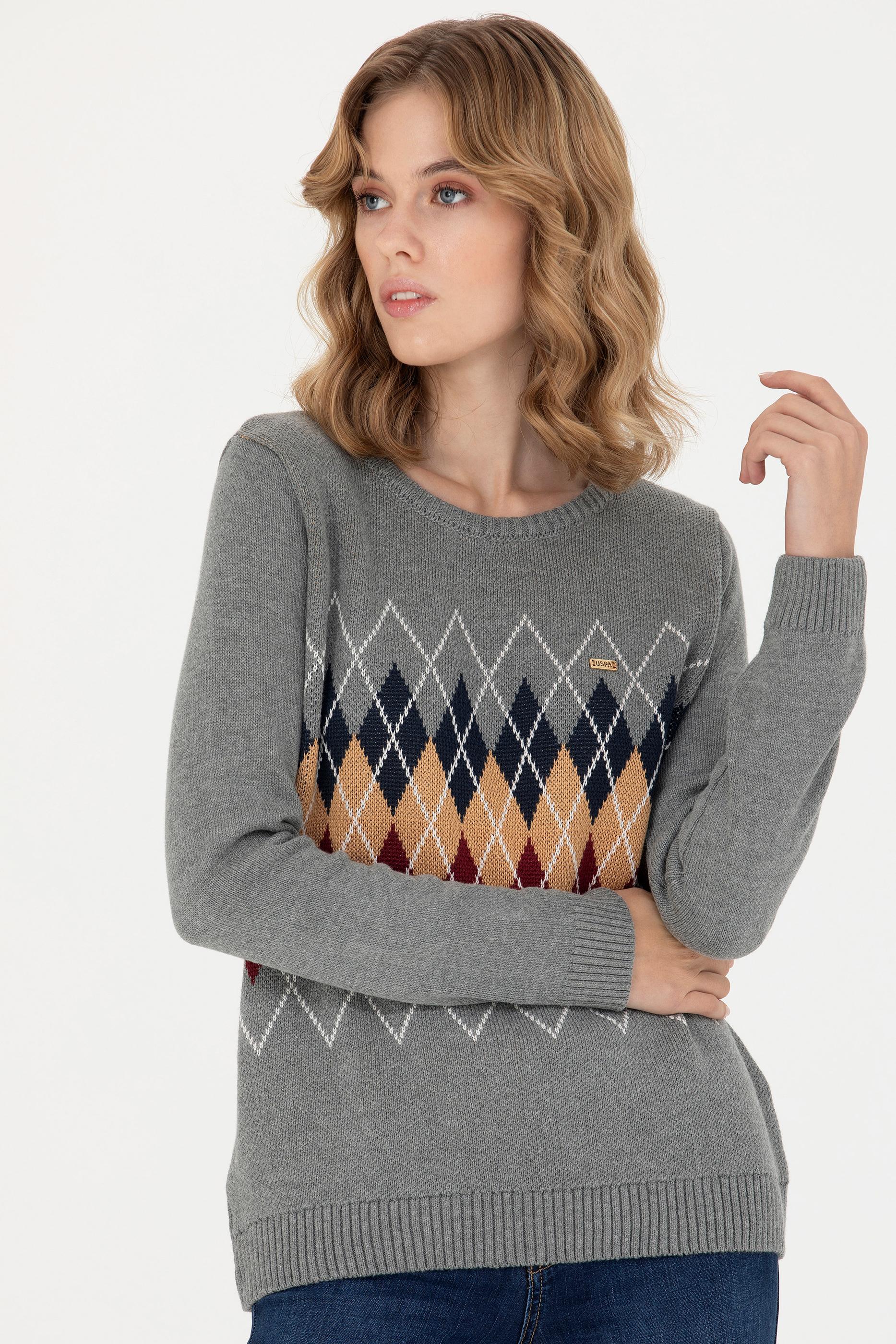 Kadın Gri Melanj Bisiklet Yaka Kazak
