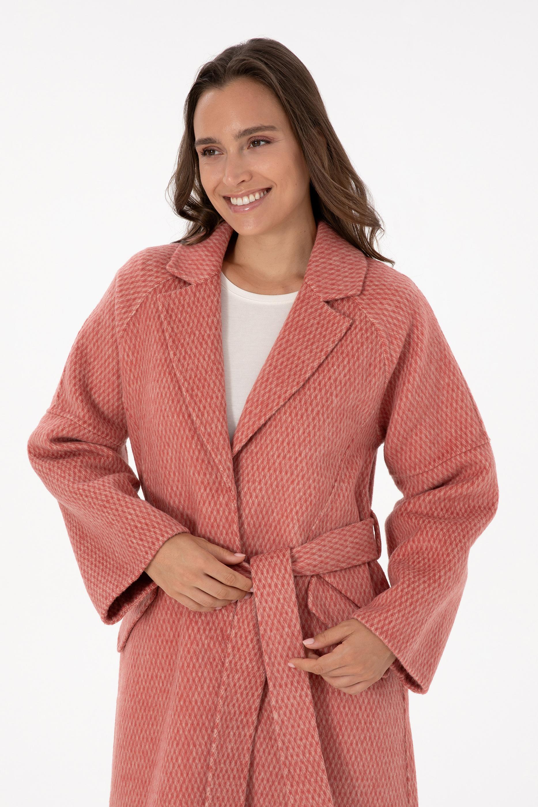 Kadın Gül Kurusu Kaşe Kaban