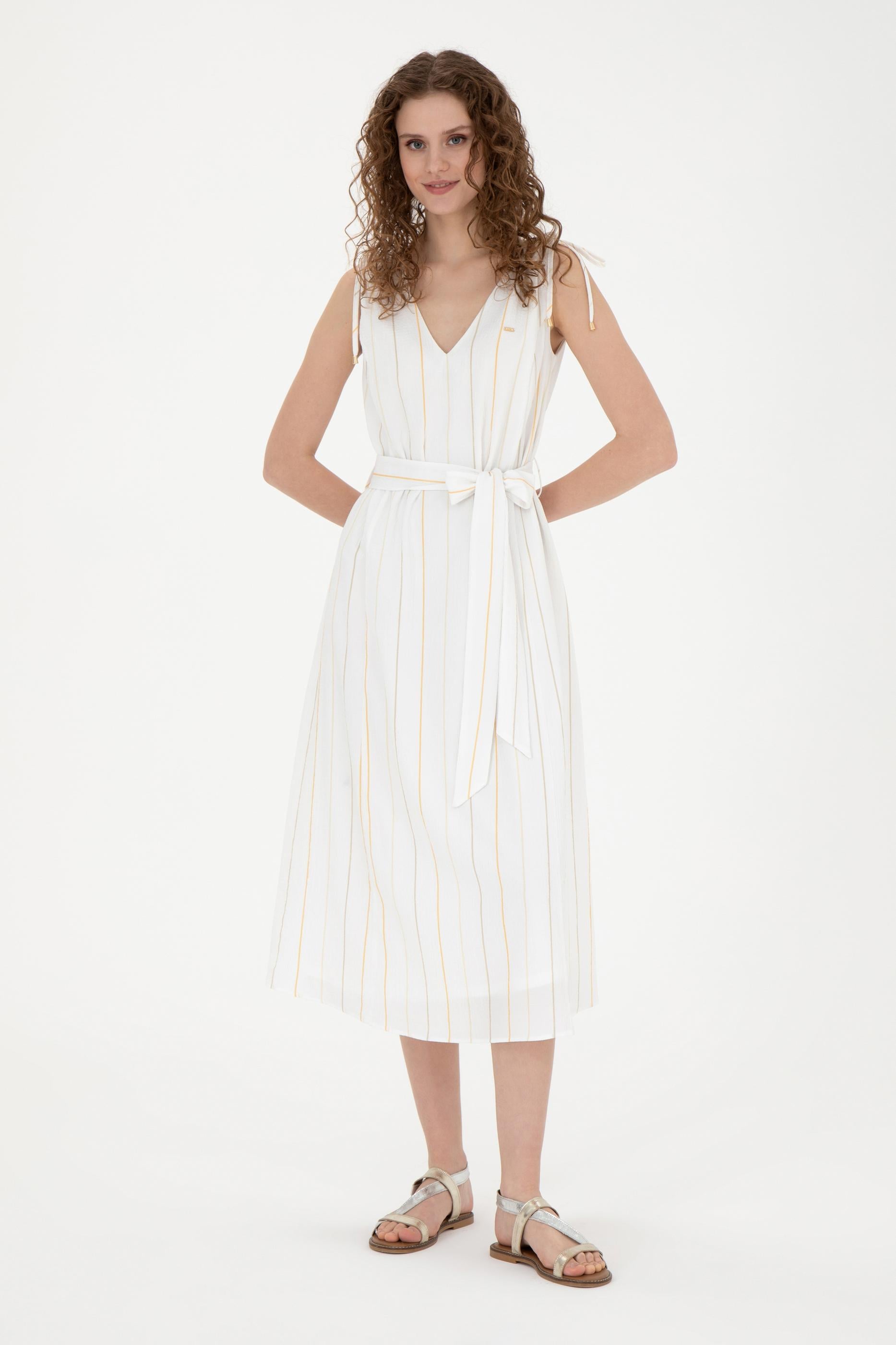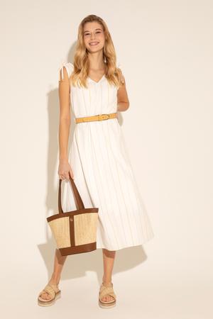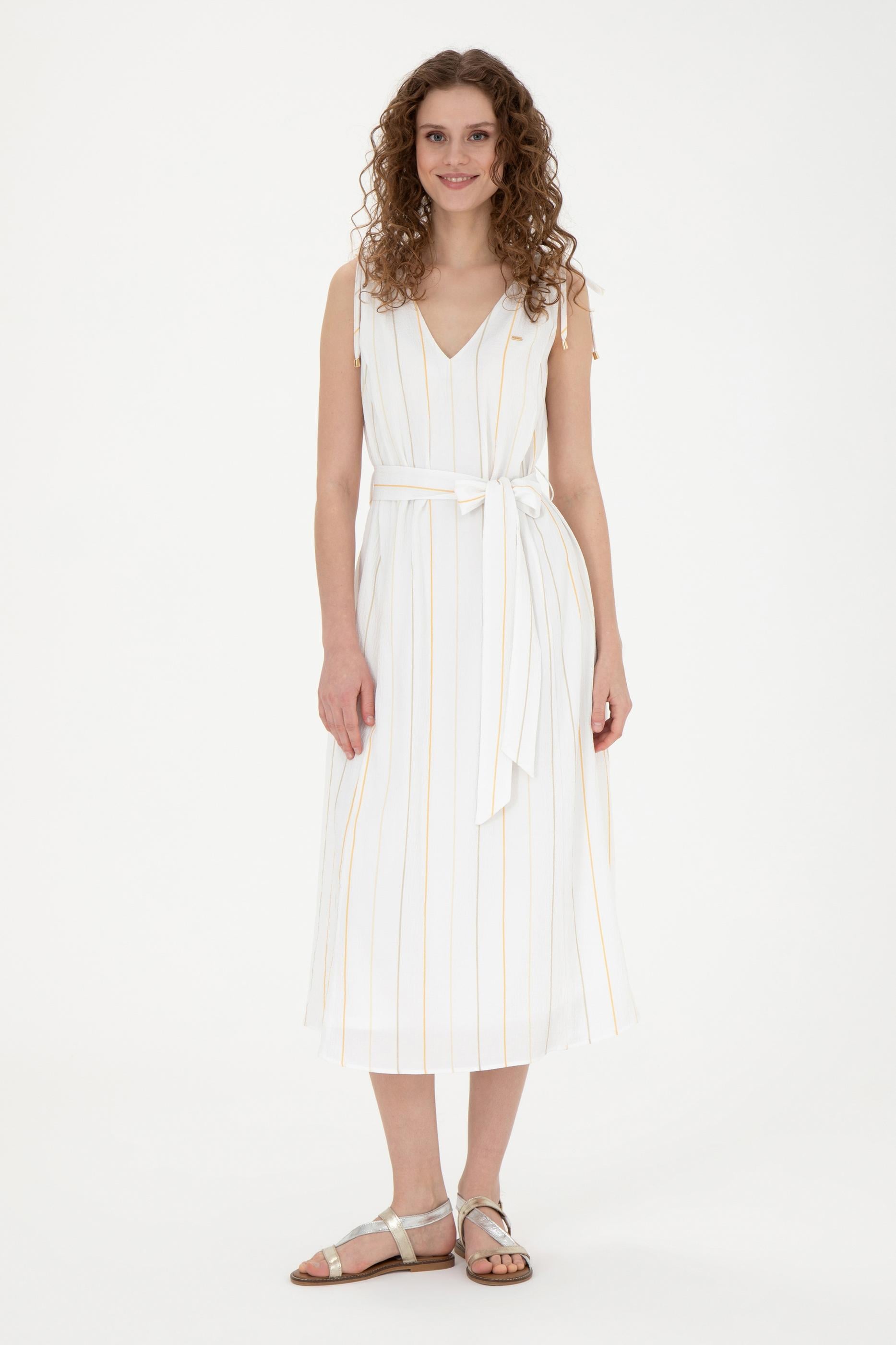 Kadın Haki Çizgili Midi Boy Dokuma Elbise