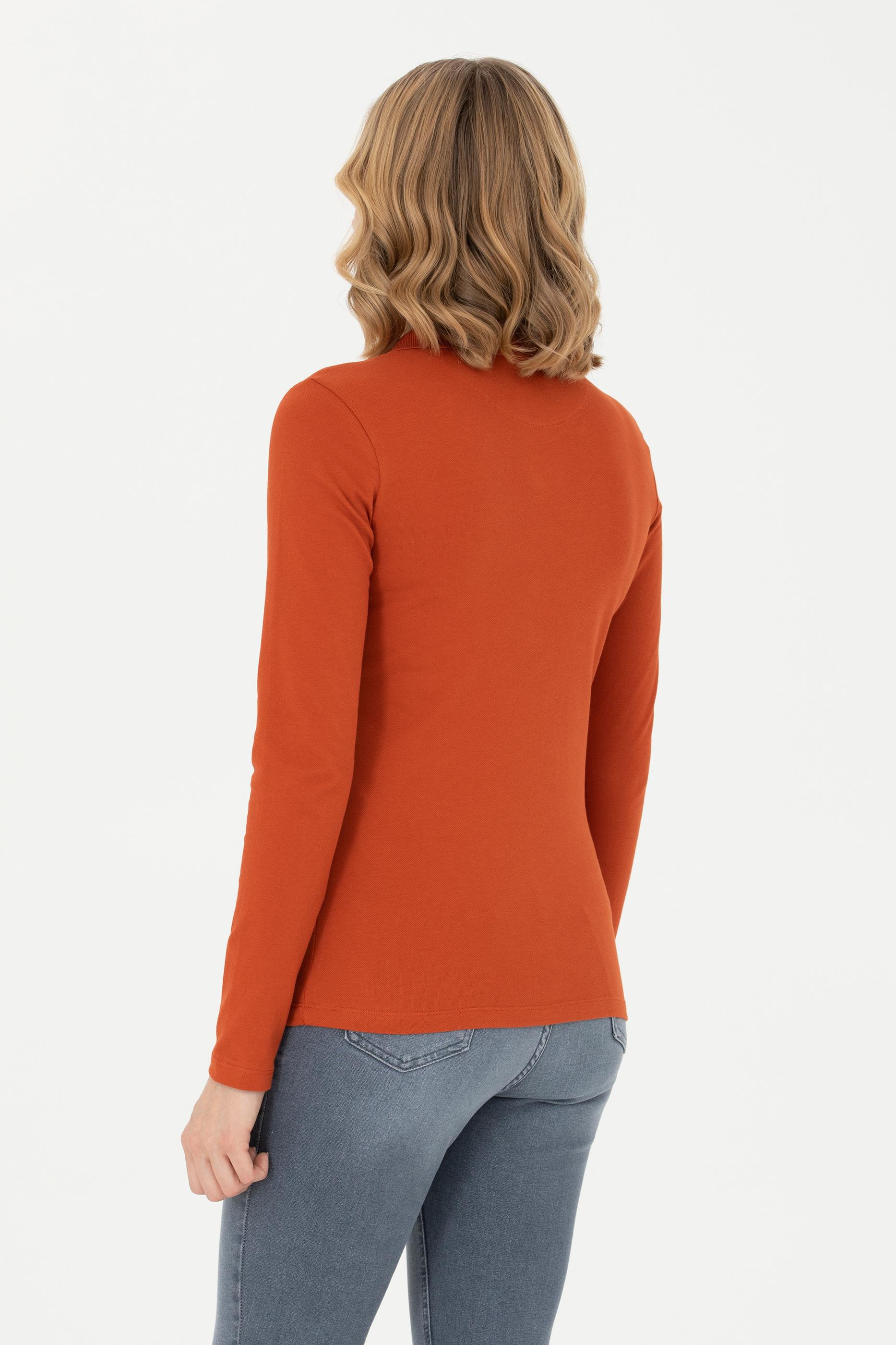 Kadın Kiremit Polo Yaka Basic Sweatshirt