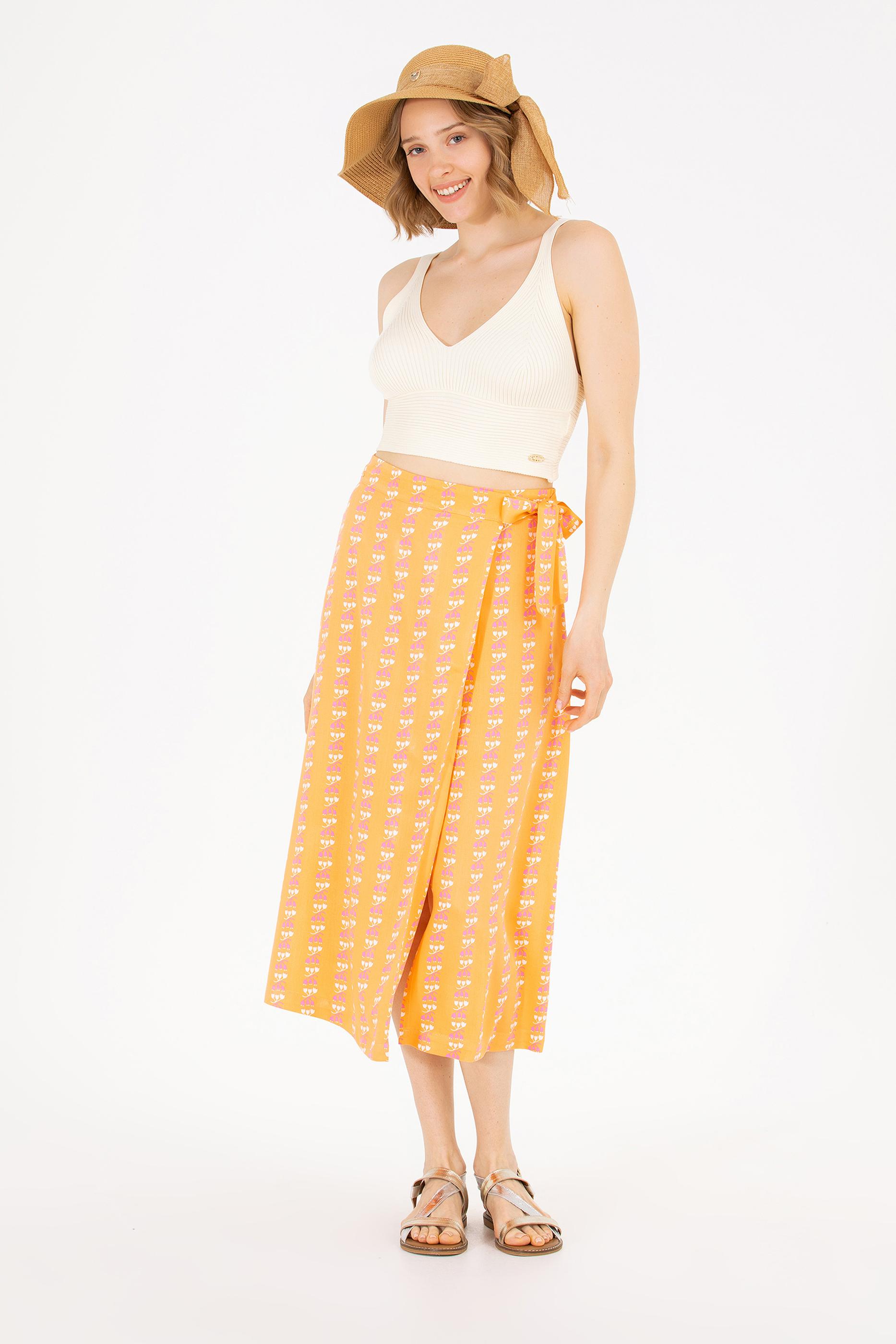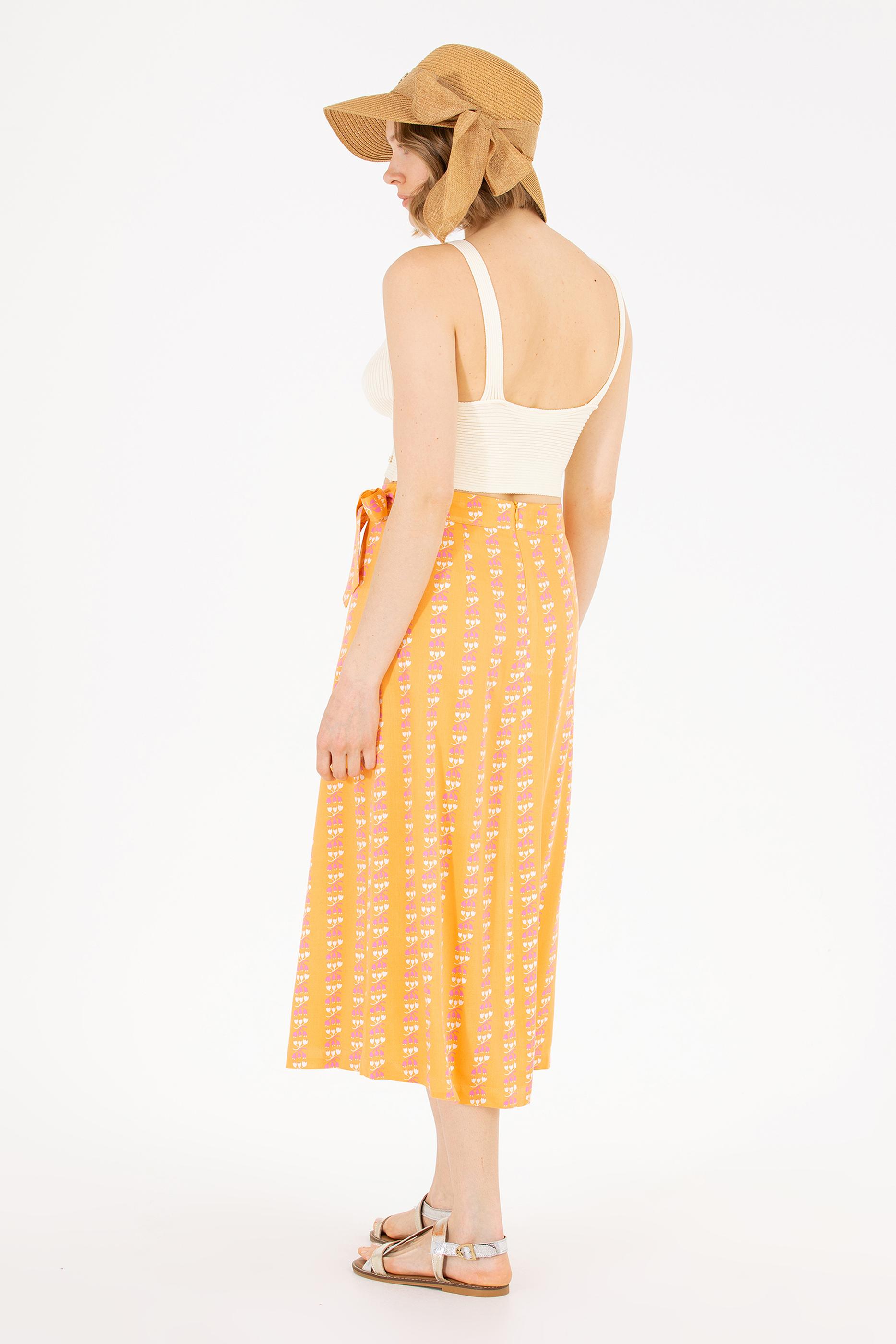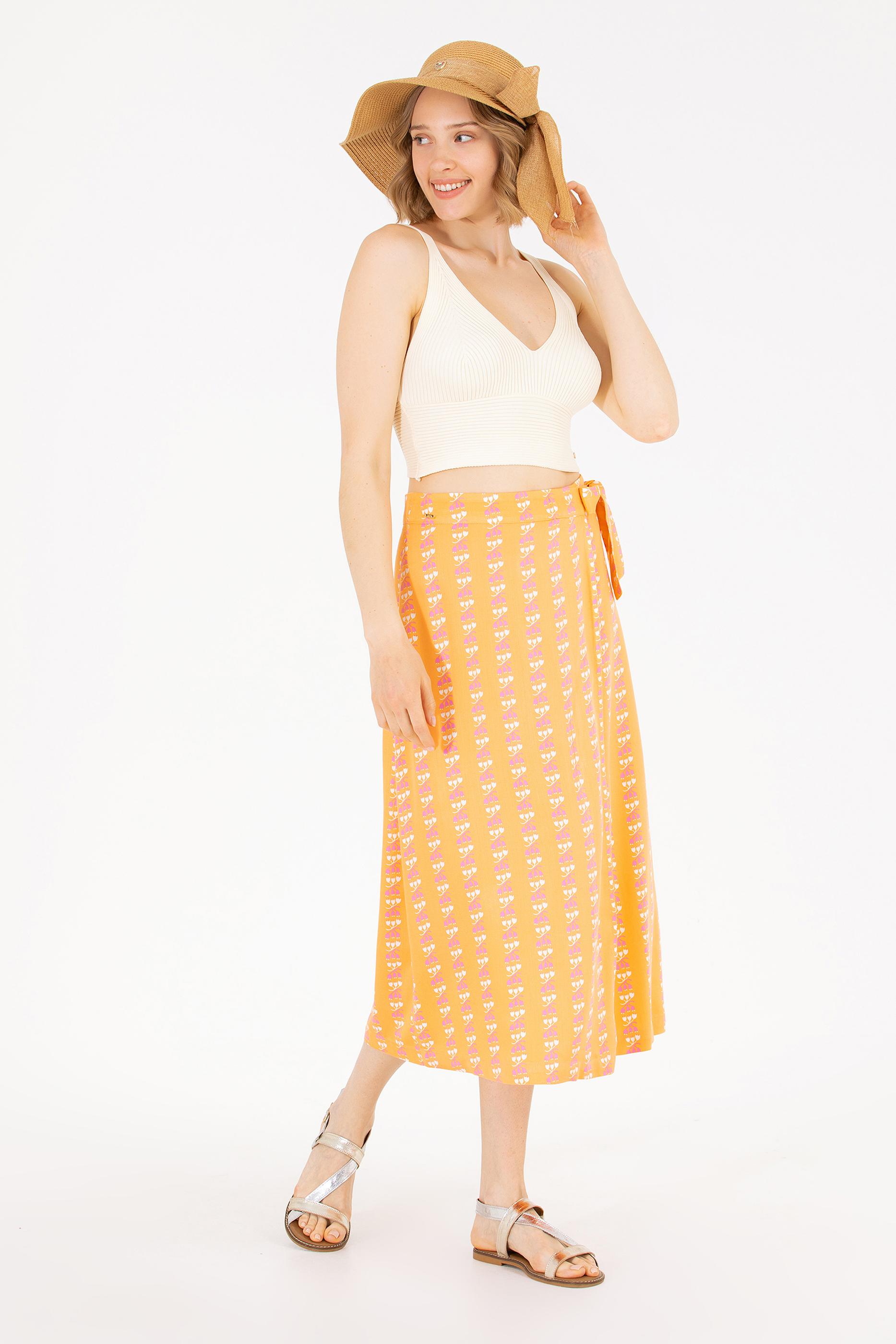Kadın Kiremit Midi Boy Dokuma Etek