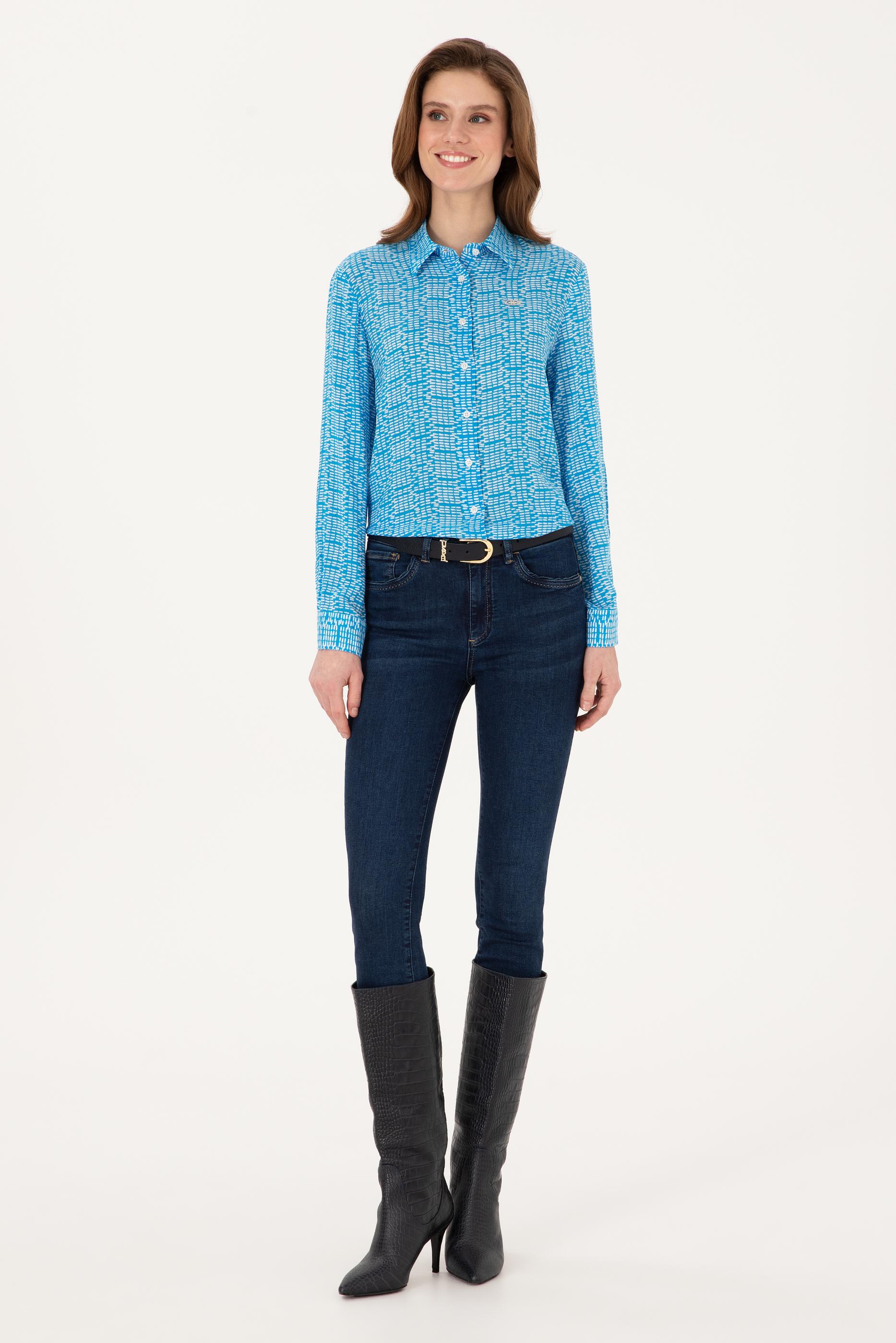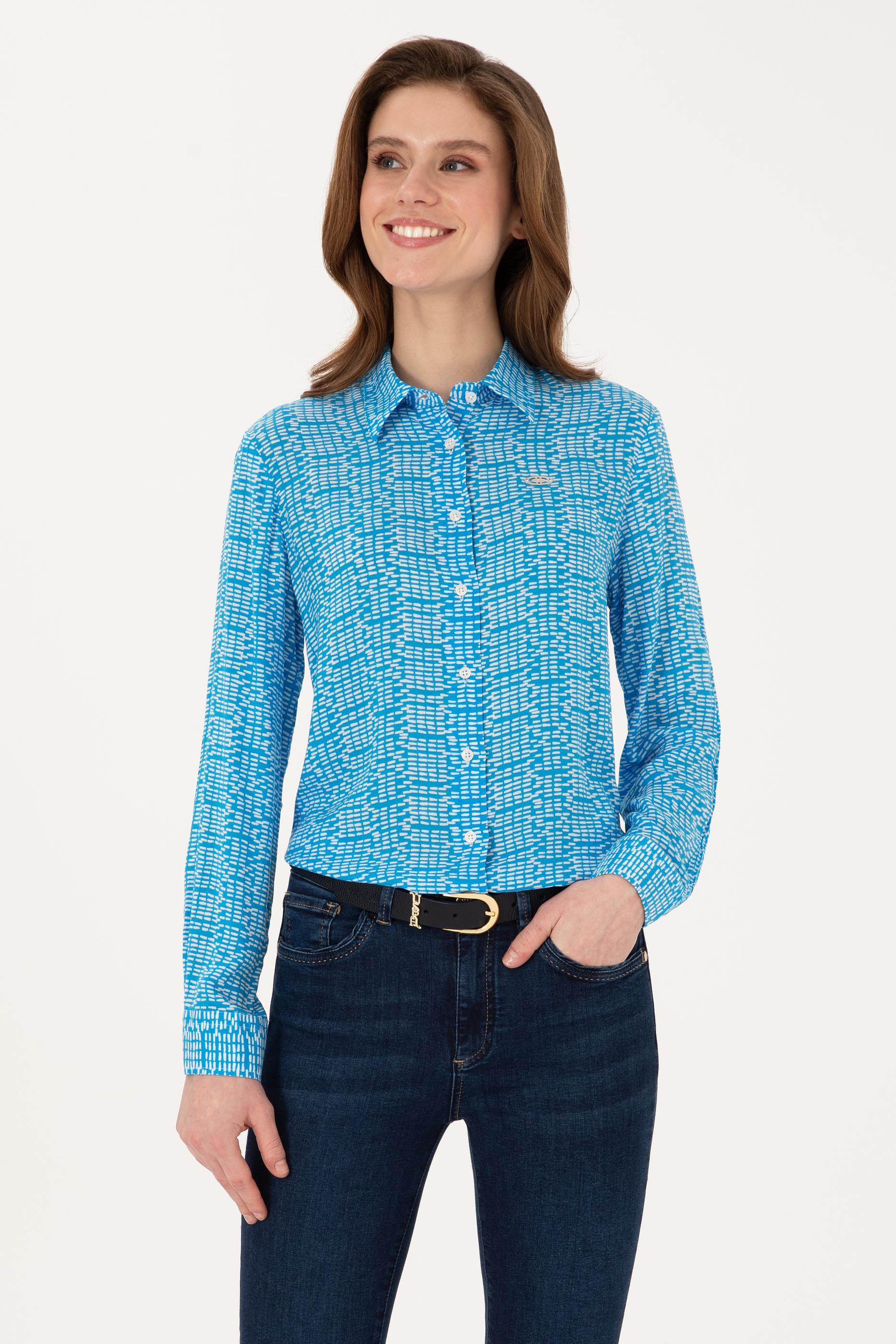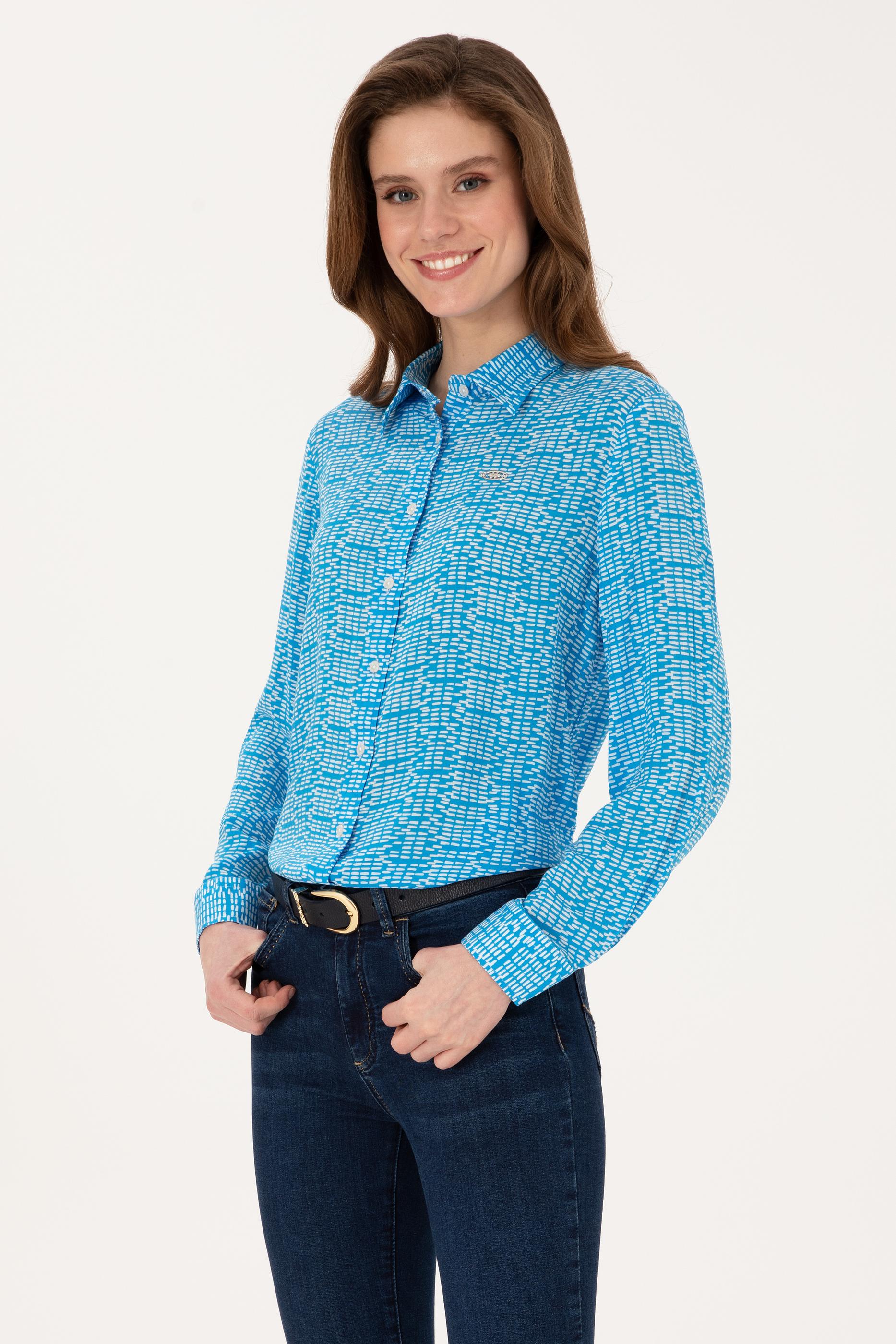 - Kadın Kobalt Mavi Uzun Kollu Gömlek