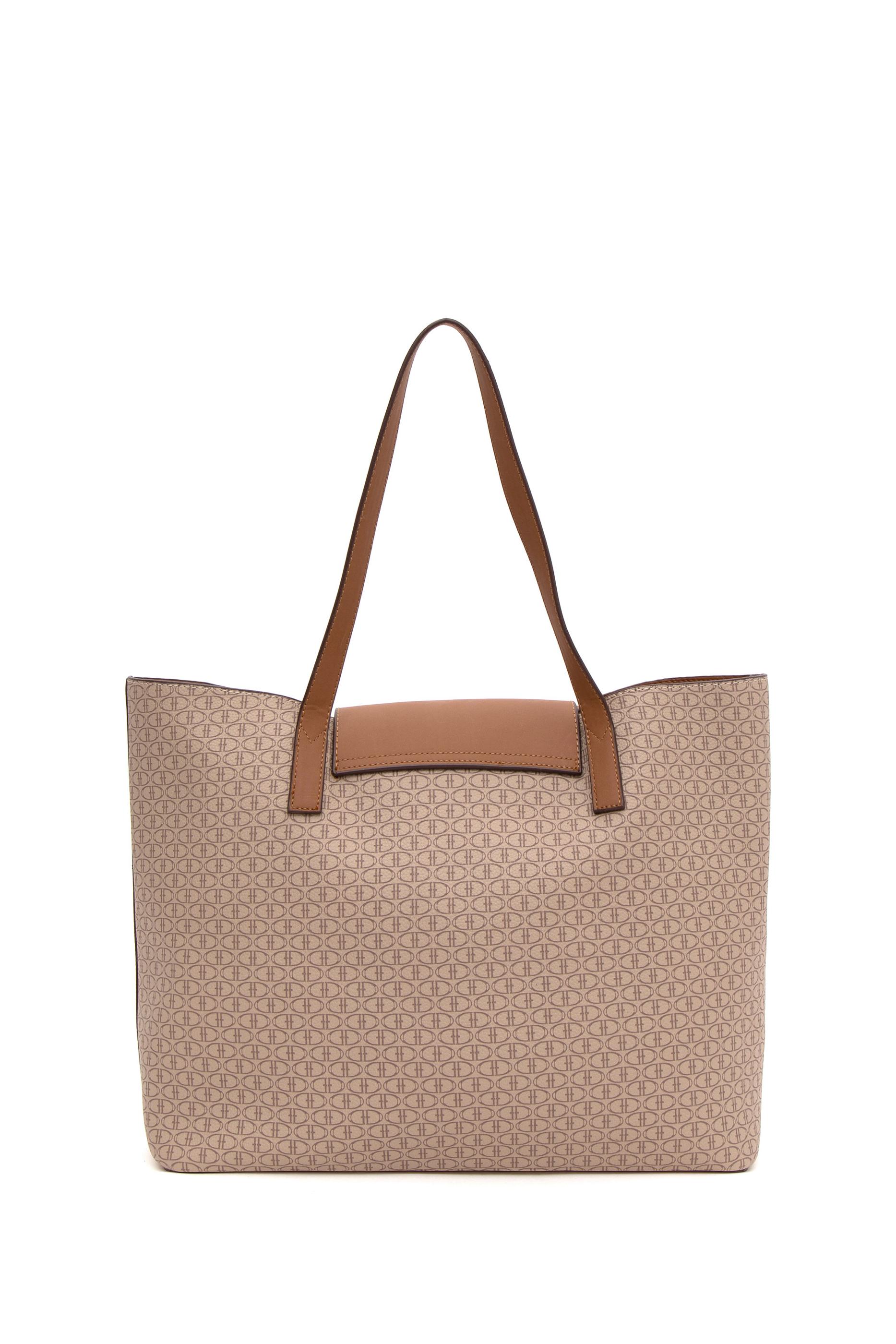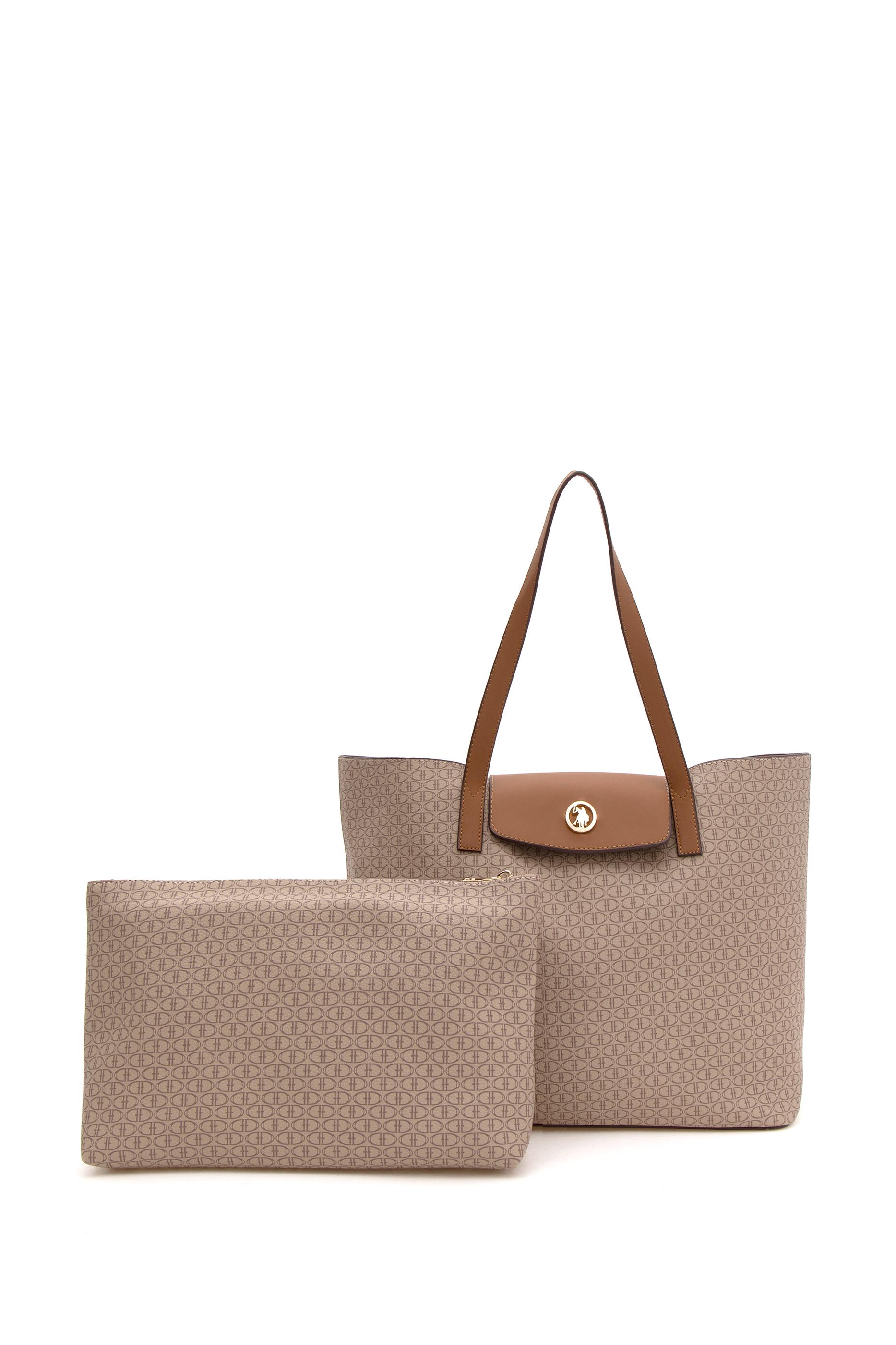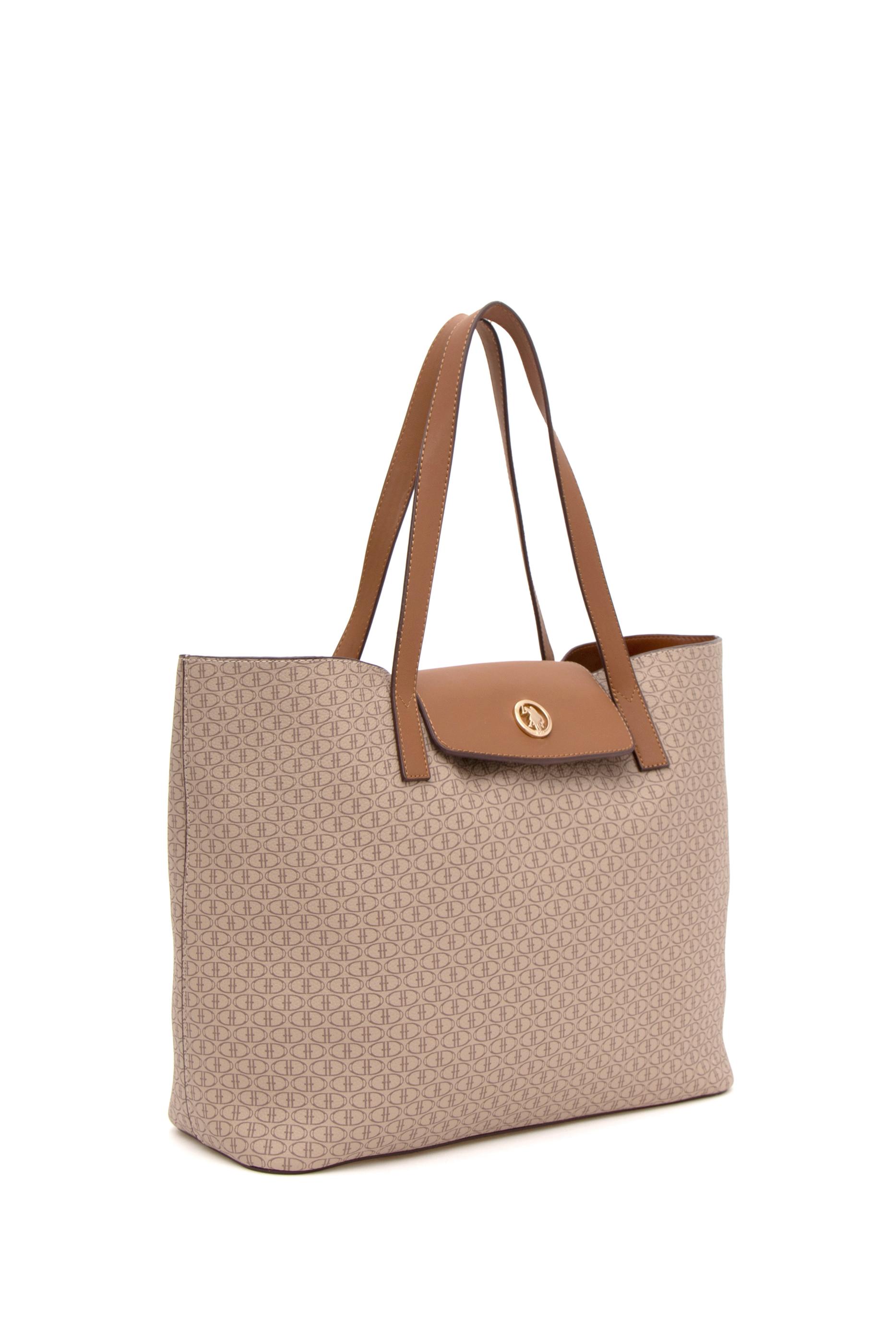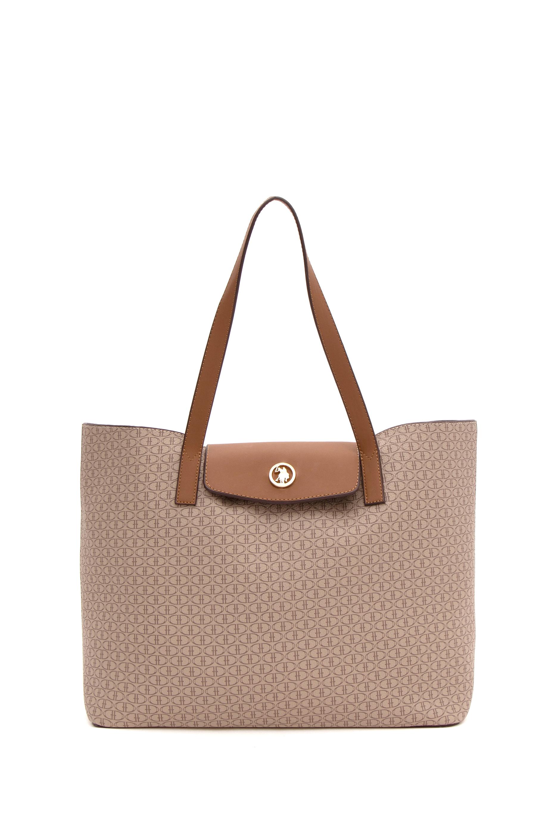U.S. Polo Assn. bej omuz çantası, dikdörtgen formda tasarlanmış, geniş iç hacimli ve şık bir modeldir. Tüm yüzeyi küçük logolardan oluşan kabartmalı desenle kaplıdır. Ön kısmında altın tonlu yuvarlak metal logo detayı bulunur. Orta uzunluktaki çift sapı sayesinde elde ya da omuzda taşımaya uygundur. Kapaklı çıtçıt kapanışı hem güvenlik hem estetik sağlar. Beyaz rengi ve ince koyu kenar şeritleriyle zarif bir kontrast sunar; yumuşak hatlı ve dik durabilen yapısıyla sade ama dikkat çekici bir görünüm oluşturur.