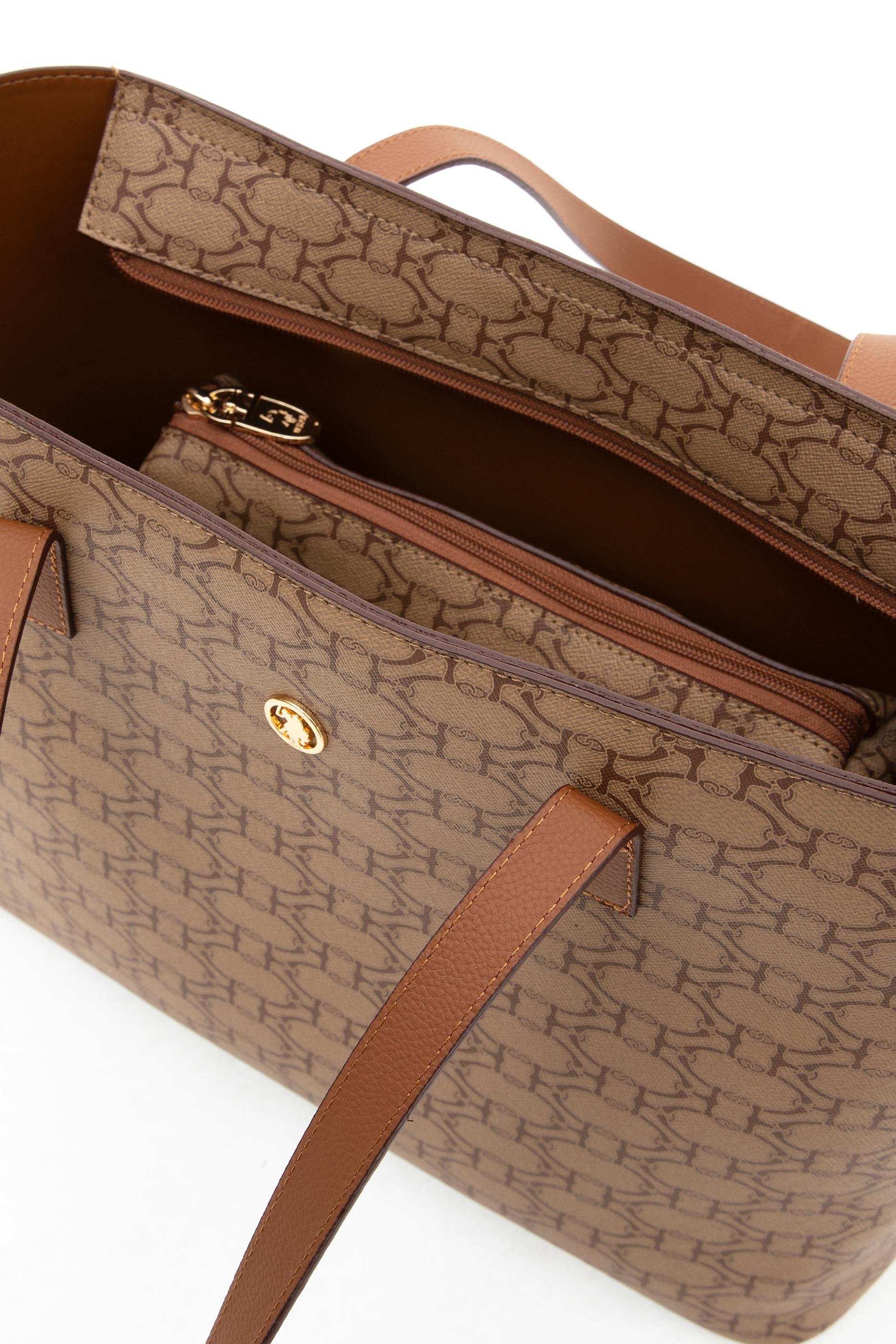 Zarafeti ve işlevselliği bir araya getiren bu bej omuz çantası, monogram desenli yüzeyiyle dikkat çeken şık bir tasarıma sahip. Geniş iç hacmiyle günlük kullanımda ihtiyacınız olan her şeyi rahatça taşımanıza olanak tanırken, beraberinde sunulan küçük makyaj çantası pratiklik katıyor. Hafif yapısı ve uzun sap detayları sayesinde gün boyu konfor sağlarken, yumuşak vizon tonu sayesinde açık tonlu kombinlerle kolayca uyum sağlıyor. Şehir hayatına uyumlu, sofistike bir alternatif arayanlar için ideal.