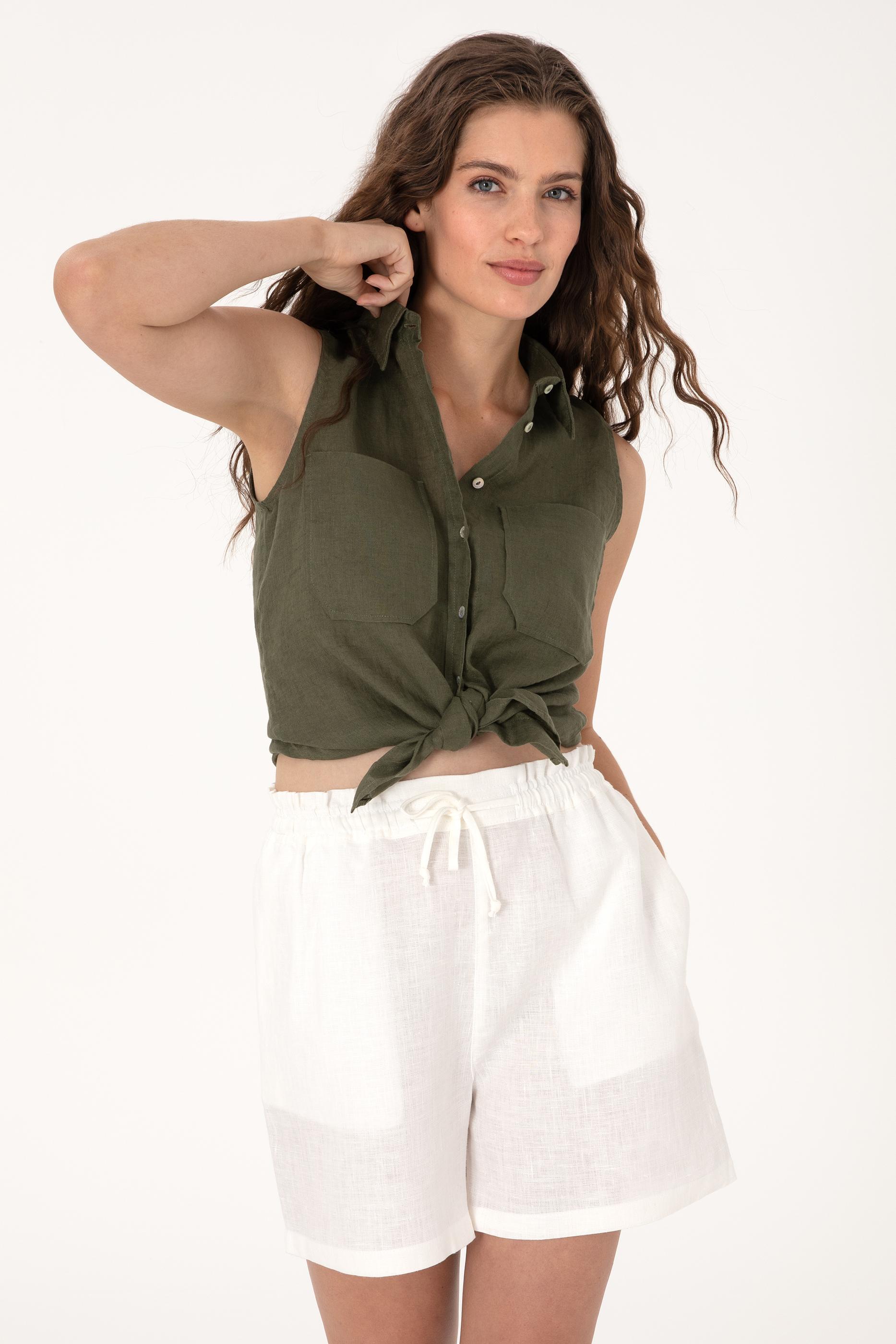- Kadın Koyu Haki Kısa Kollu Gömlek
