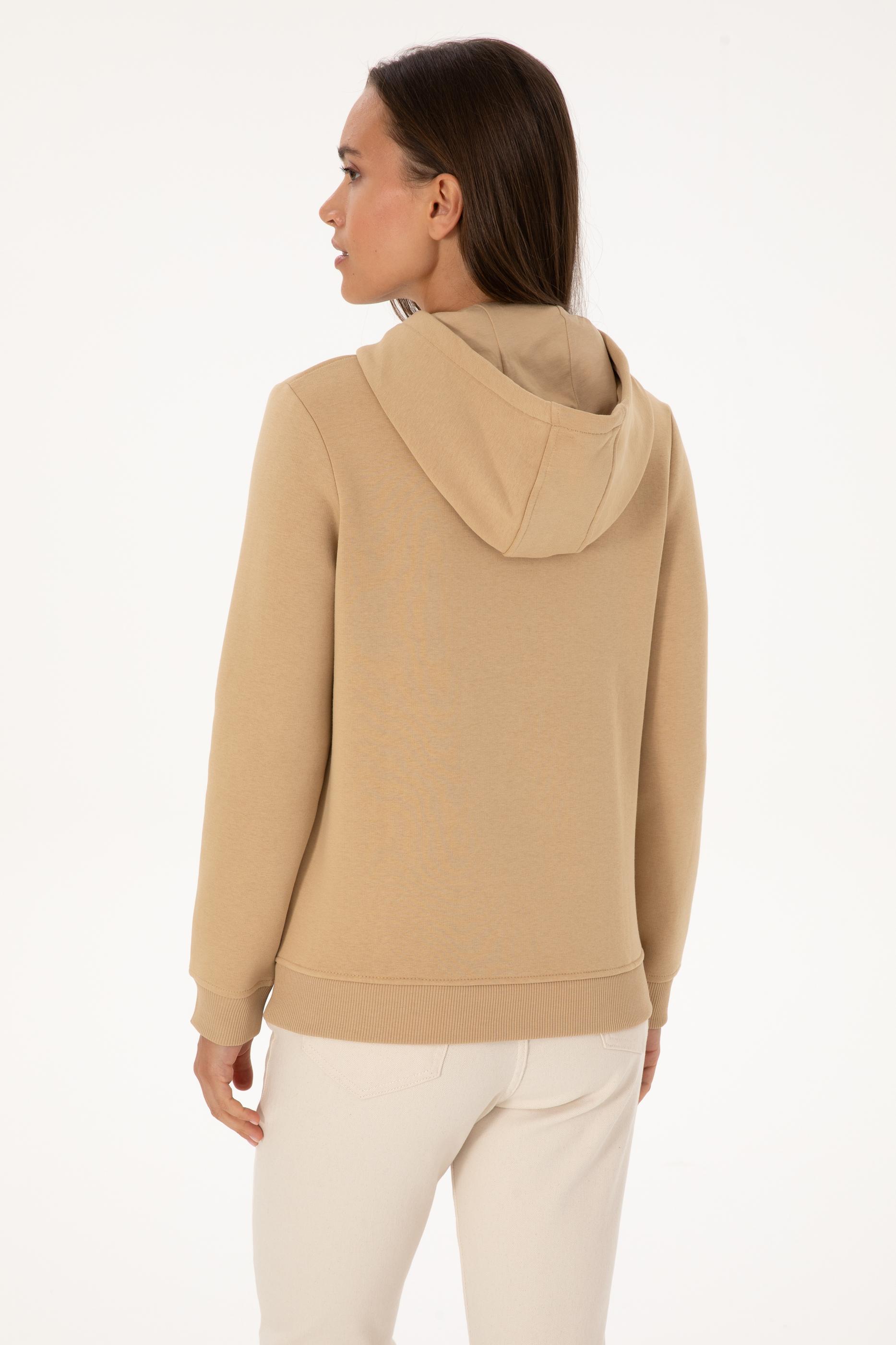 - Kadın Kum Şardonlu Kapüşonlu Basic Sweatshirt
