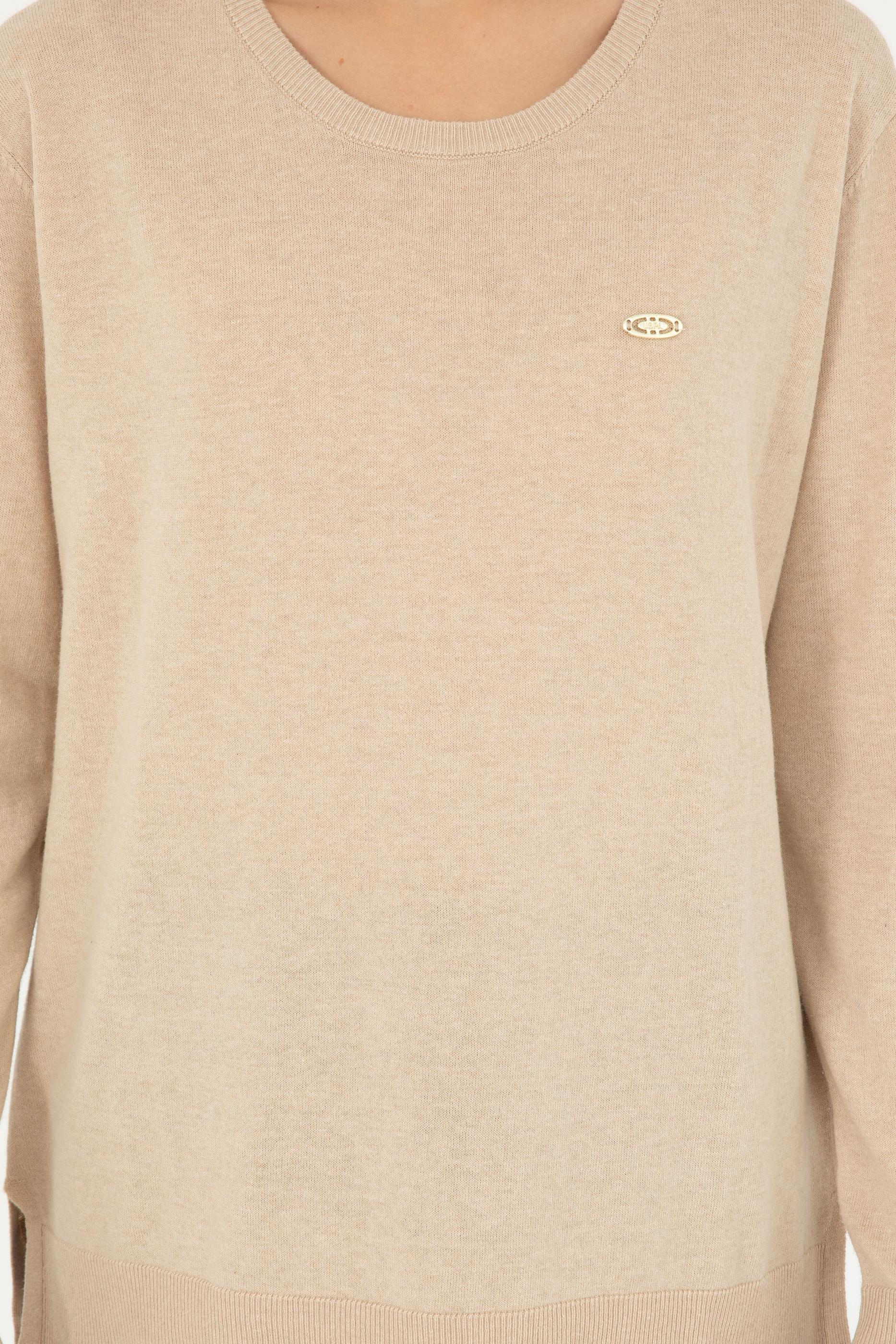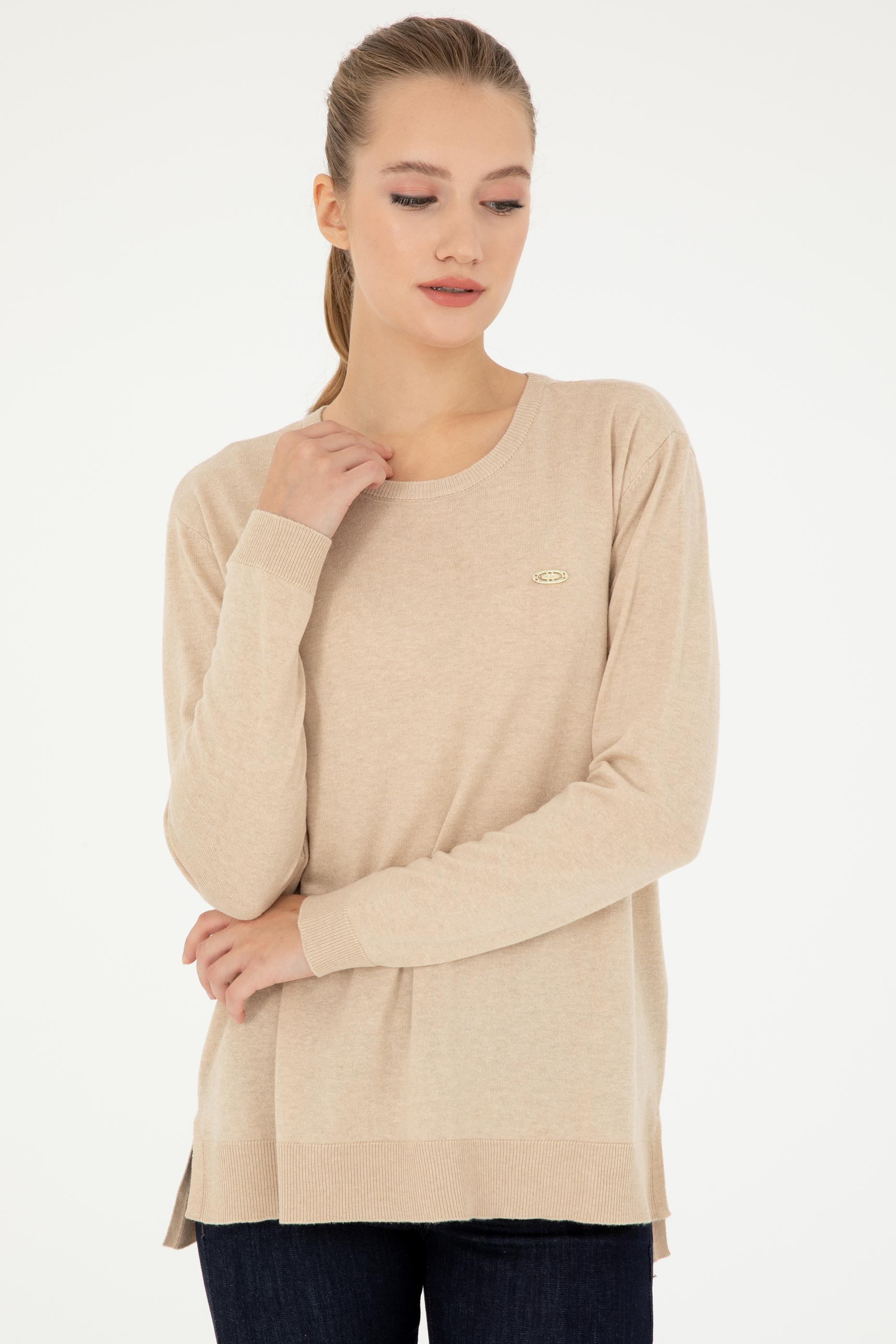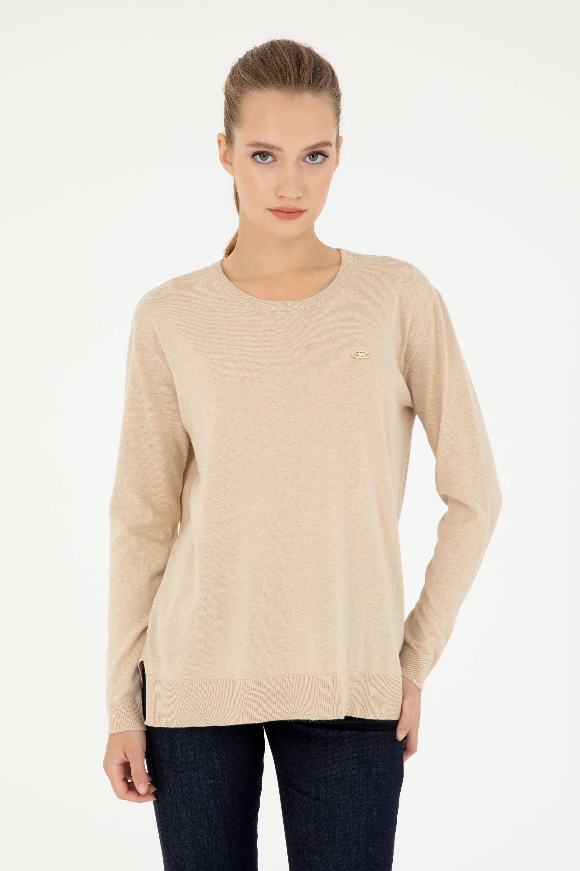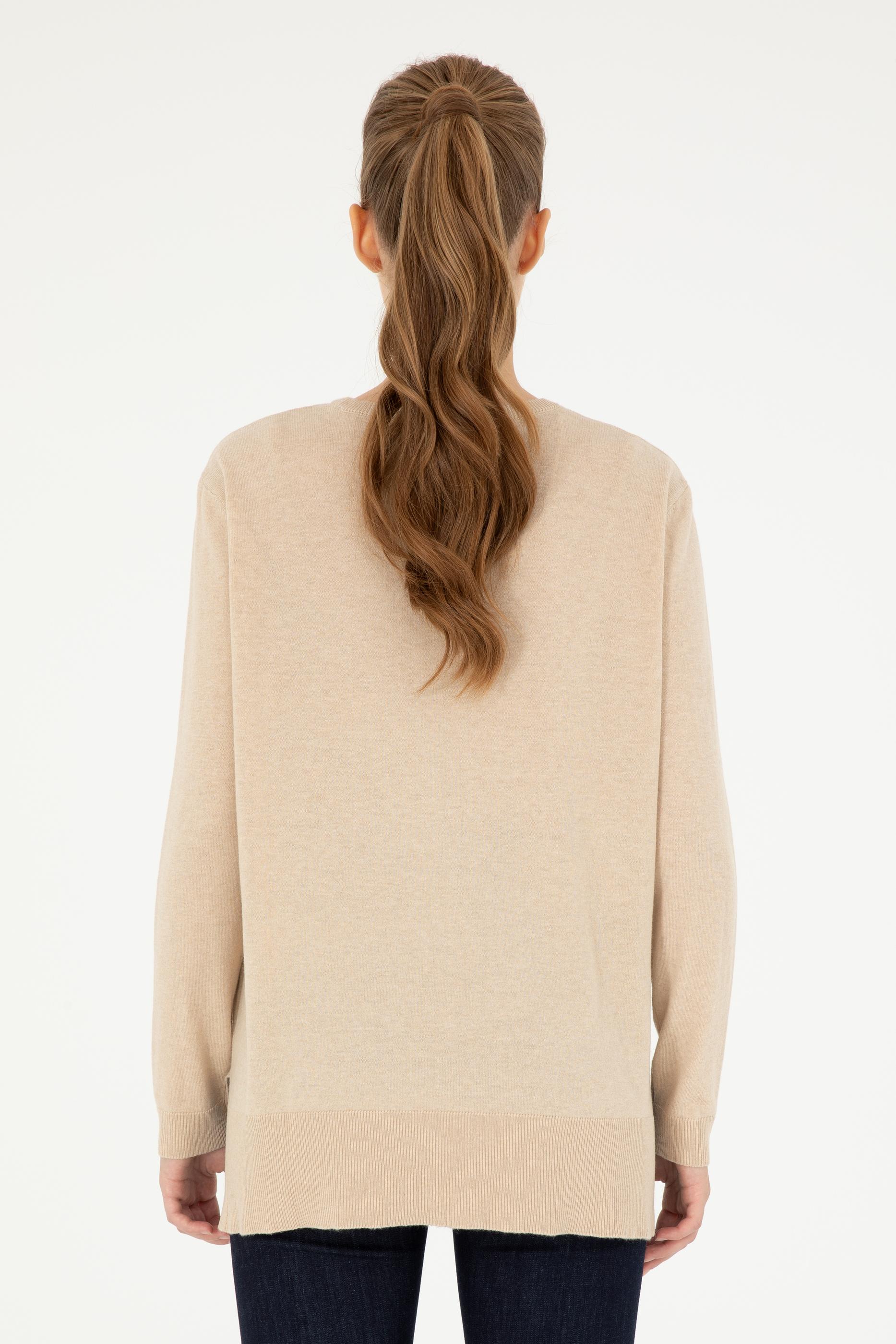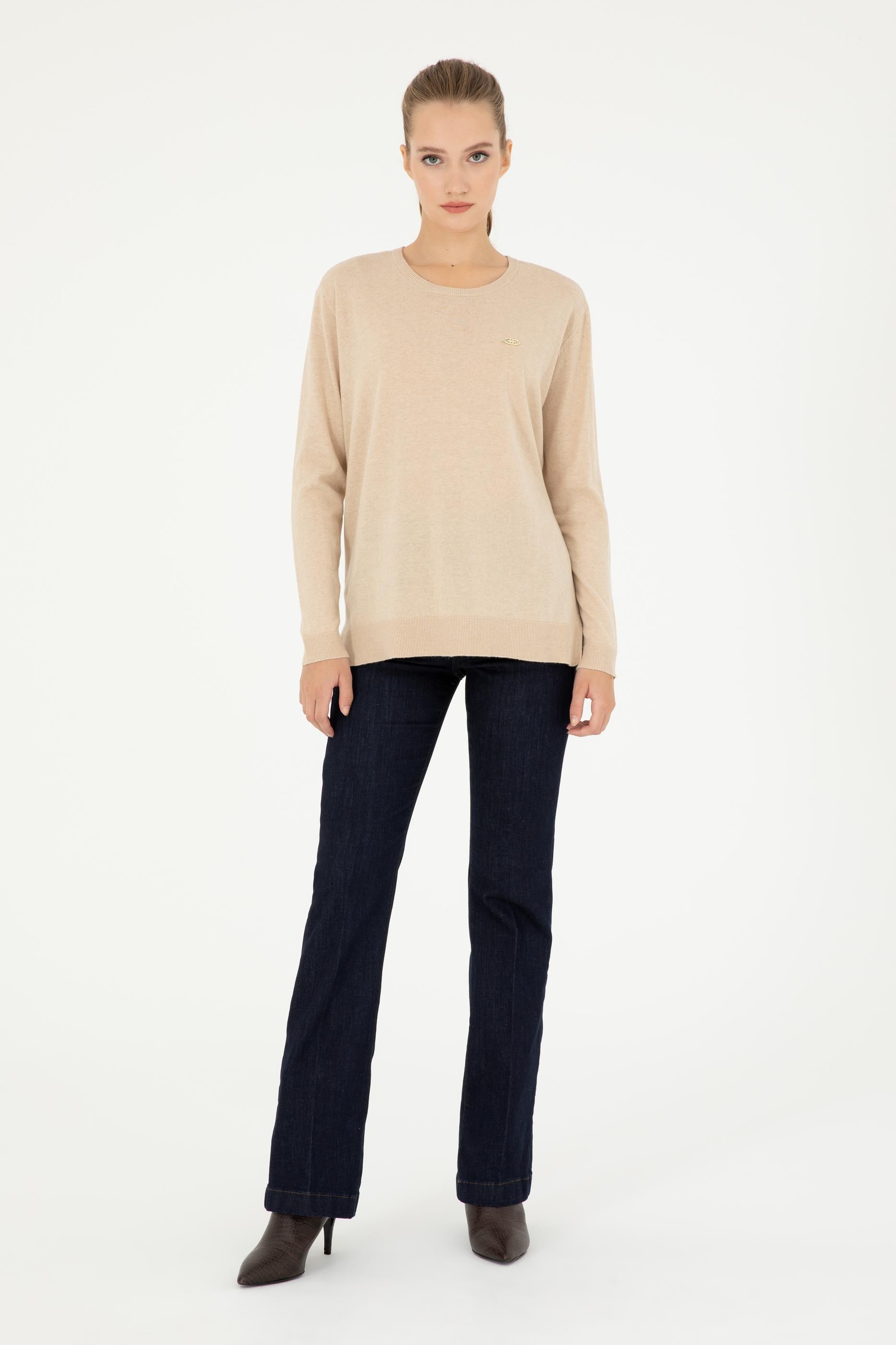 Kadın Kum Melanj Bisiklet Yaka Basic Kazak