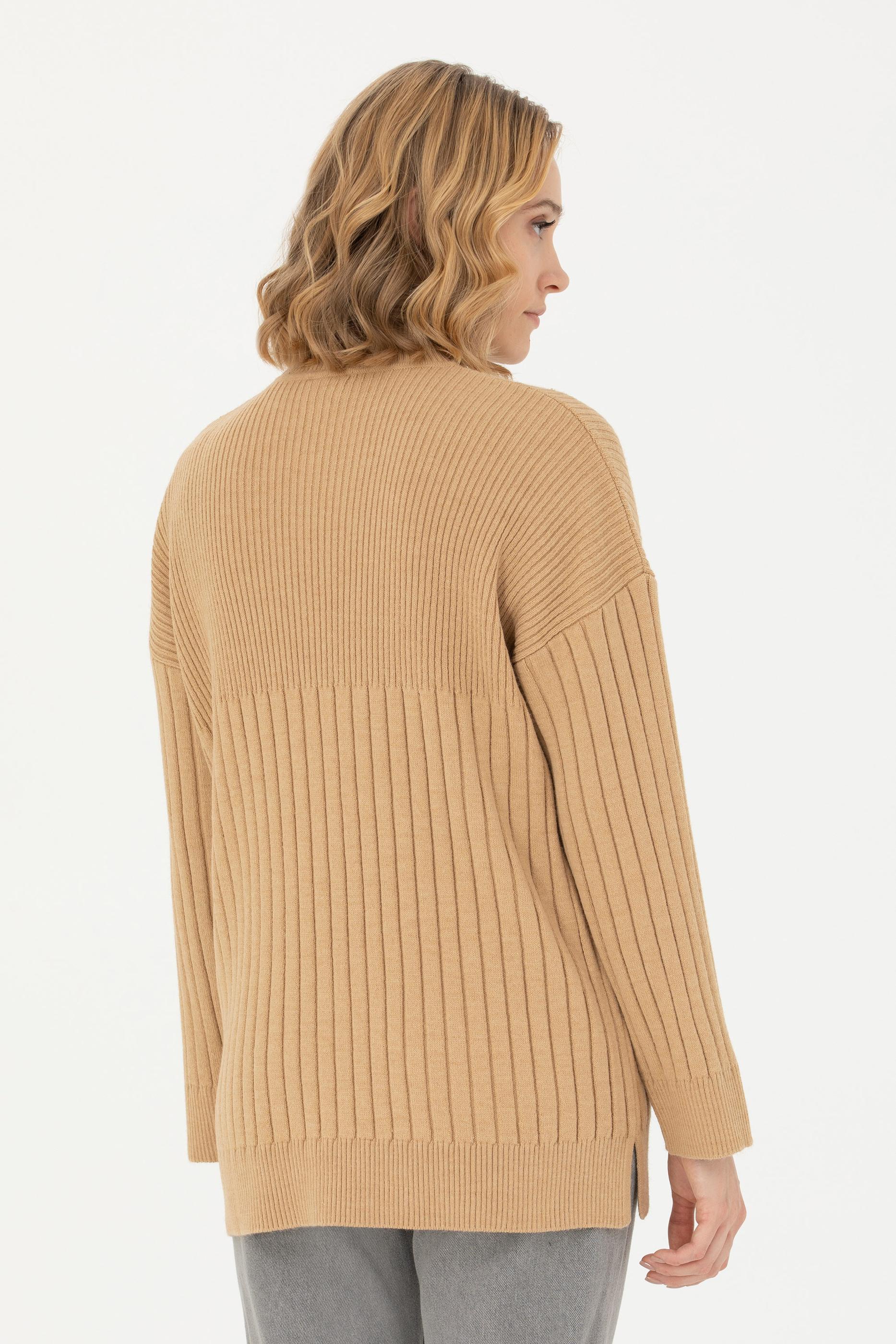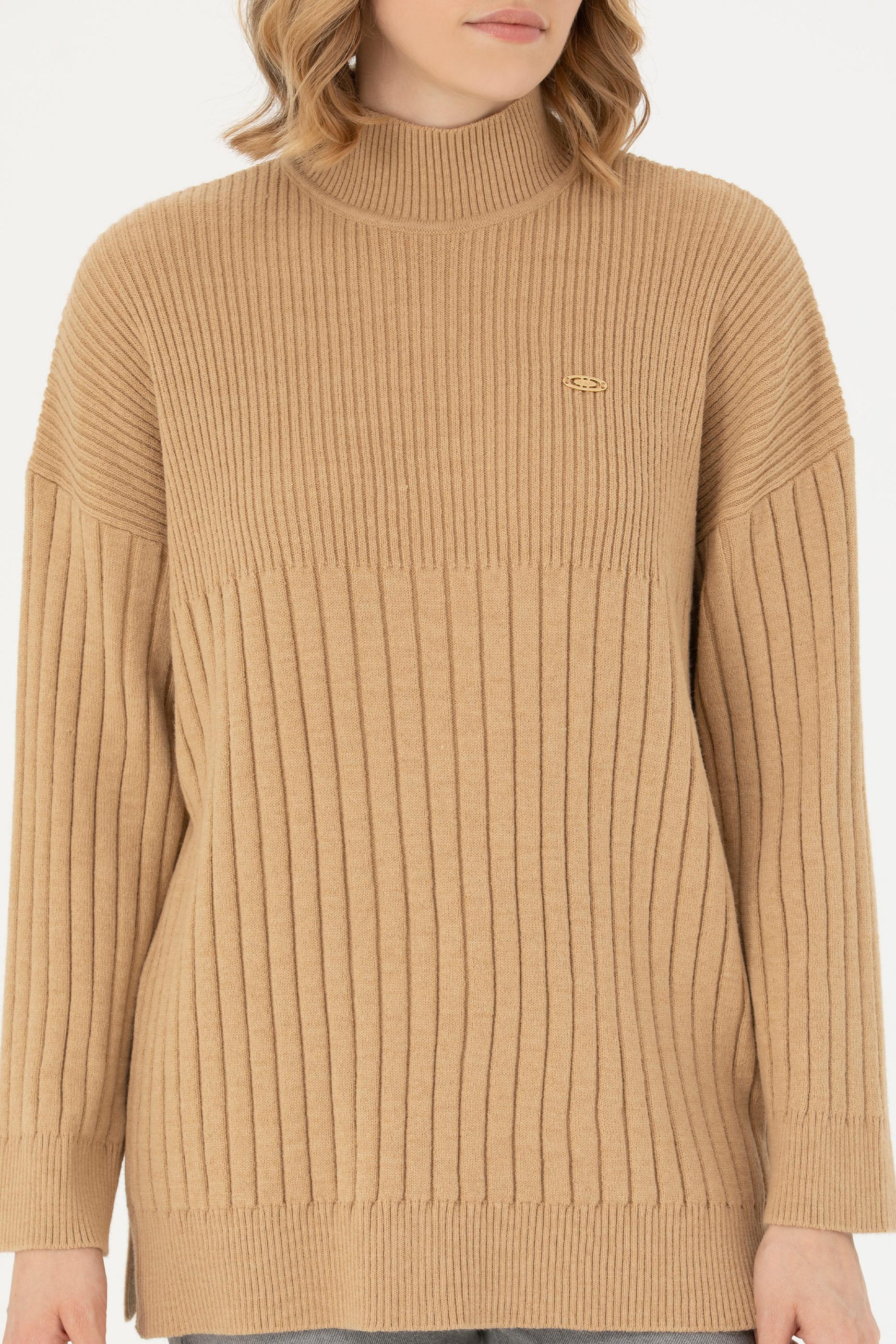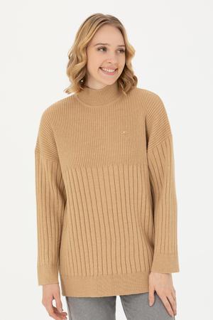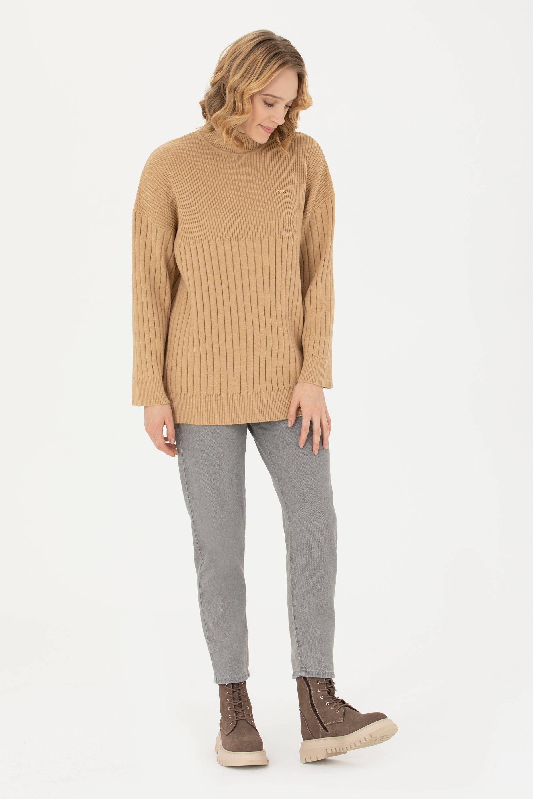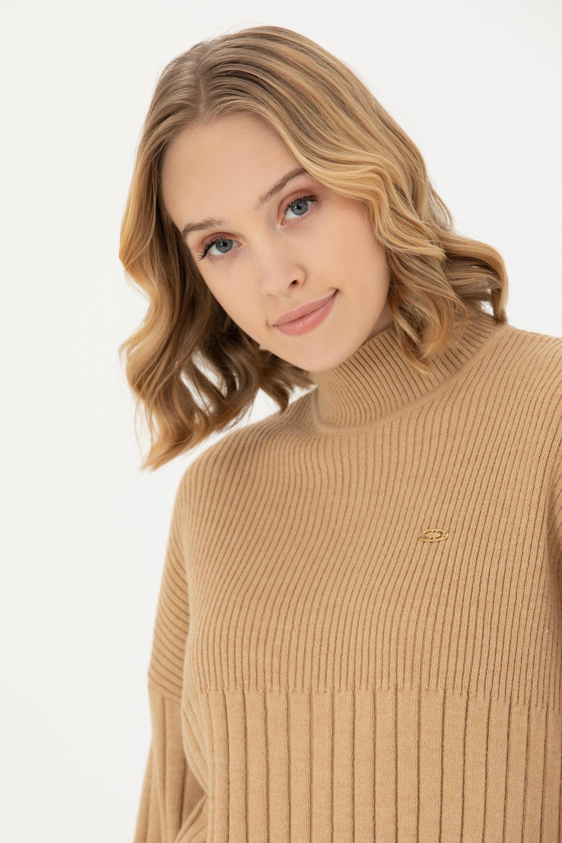 Kadın Kum Melanj Balıkçı Yaka Kazak