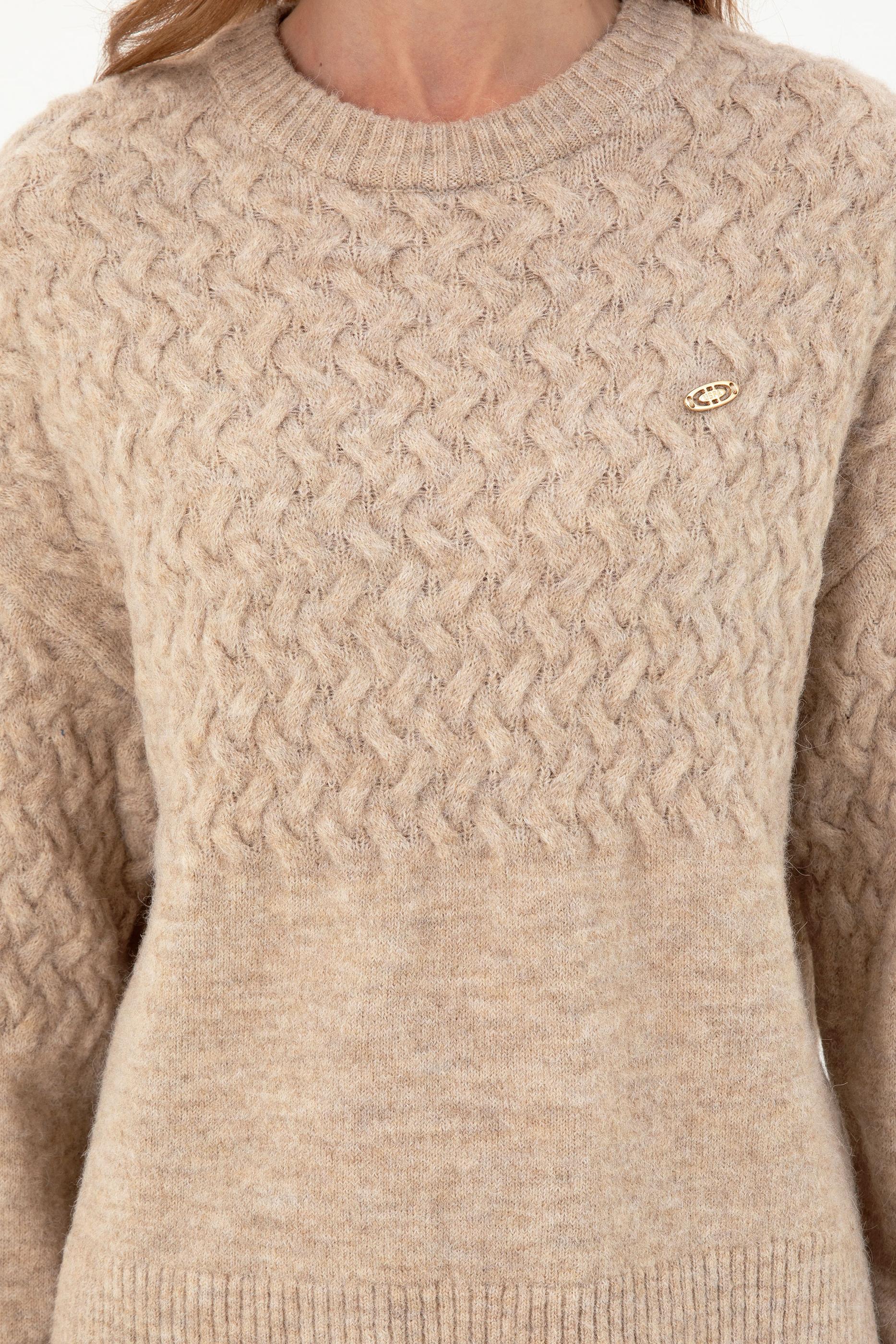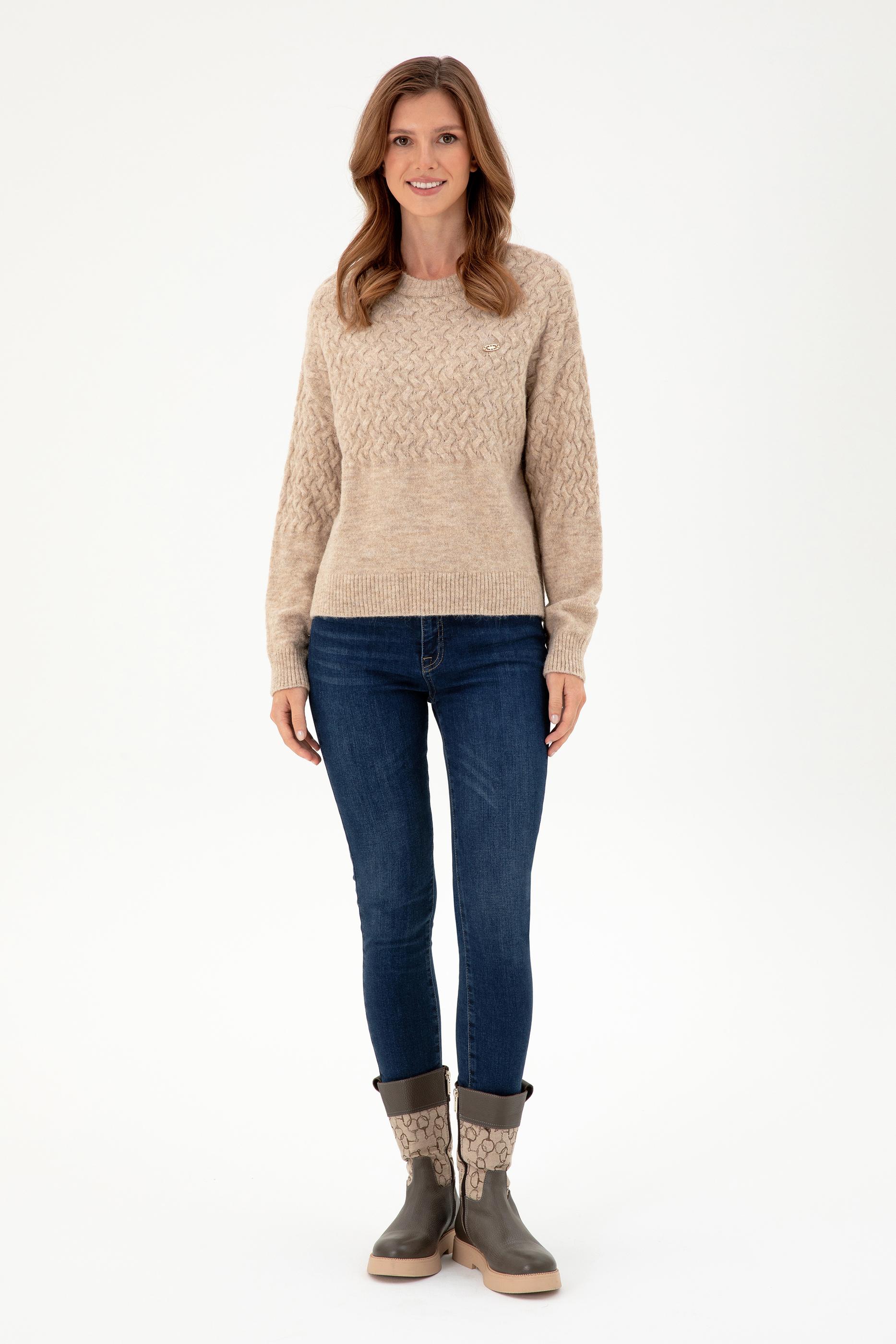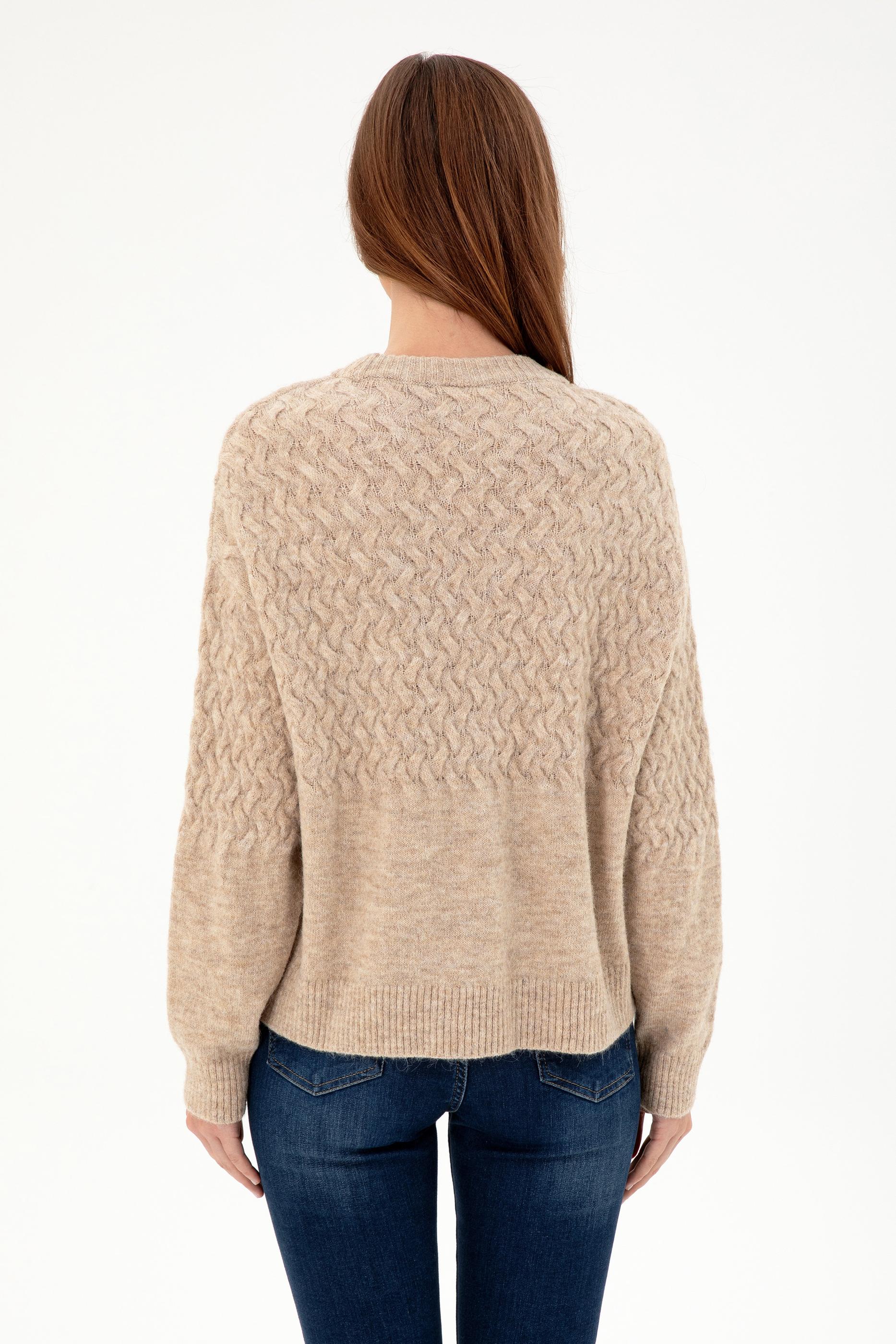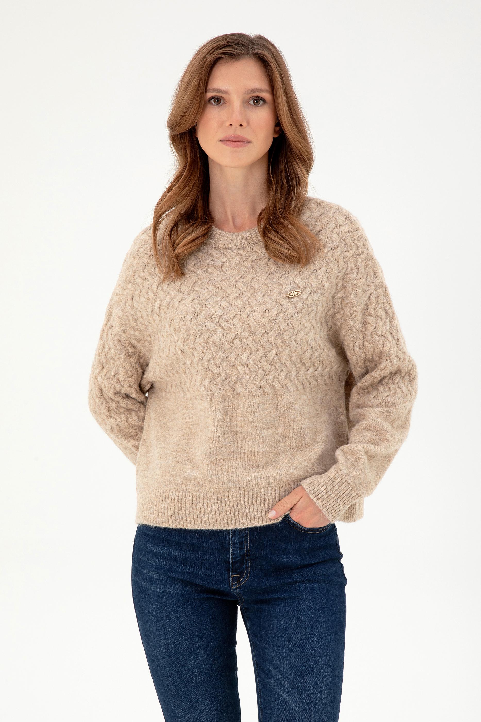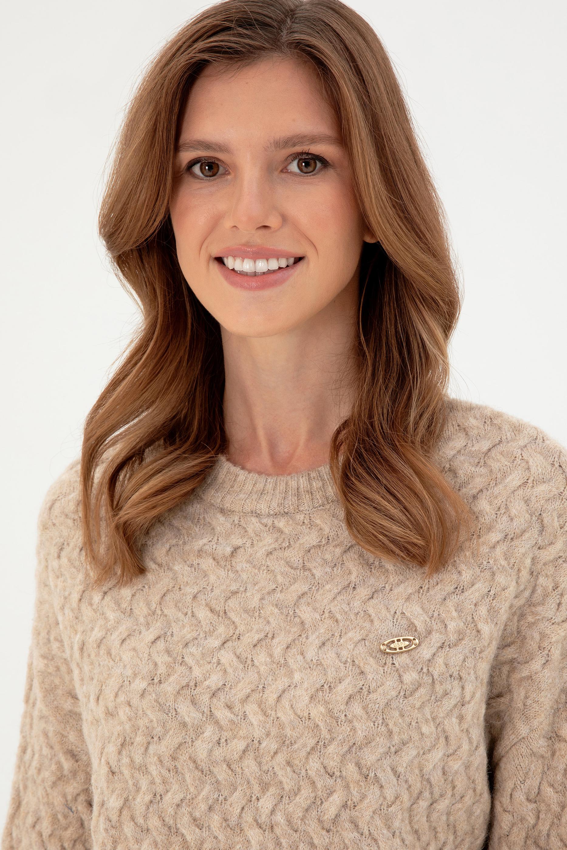 Kadın Kum Melanj Bisiklet Yaka Kazak