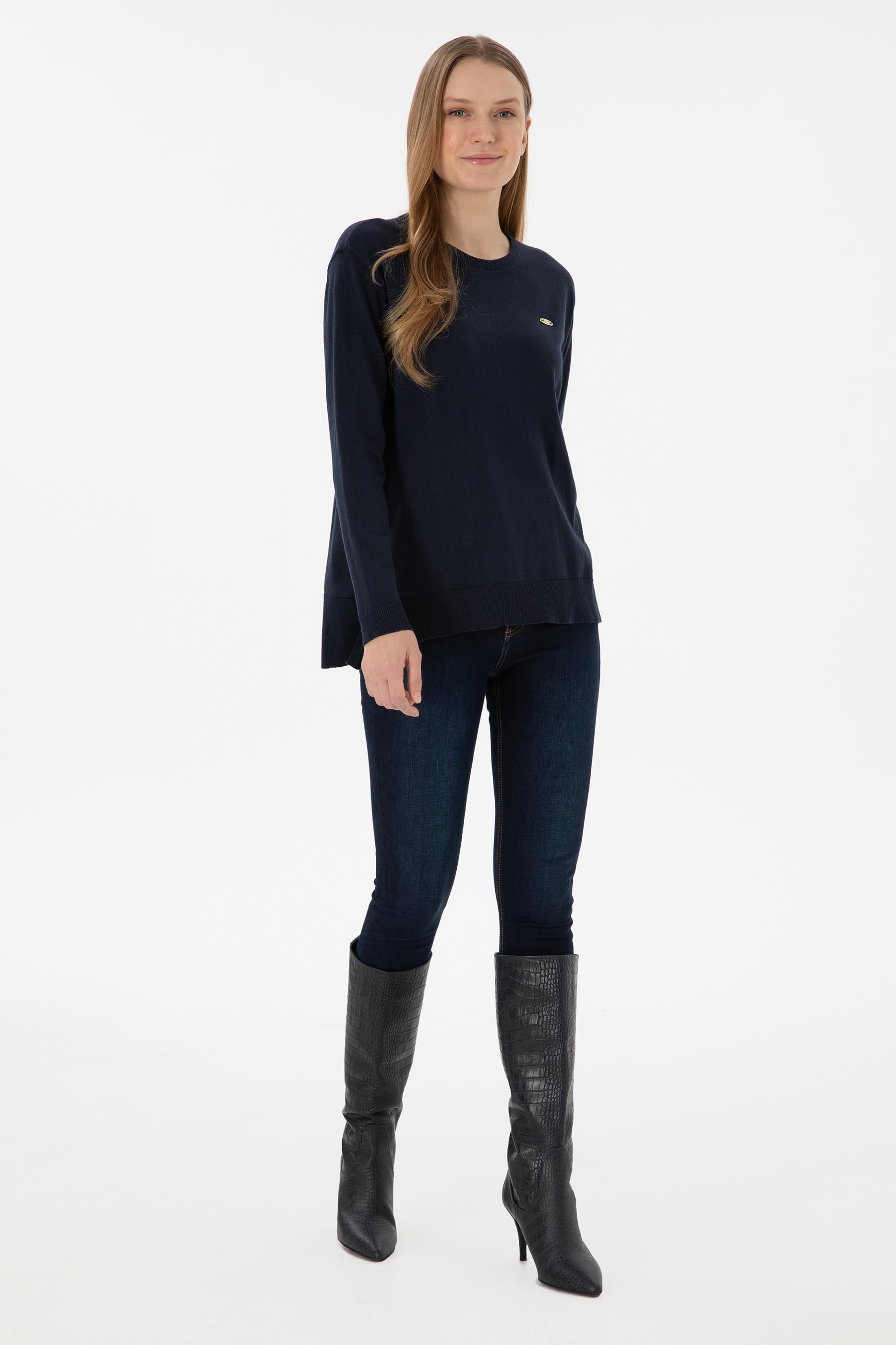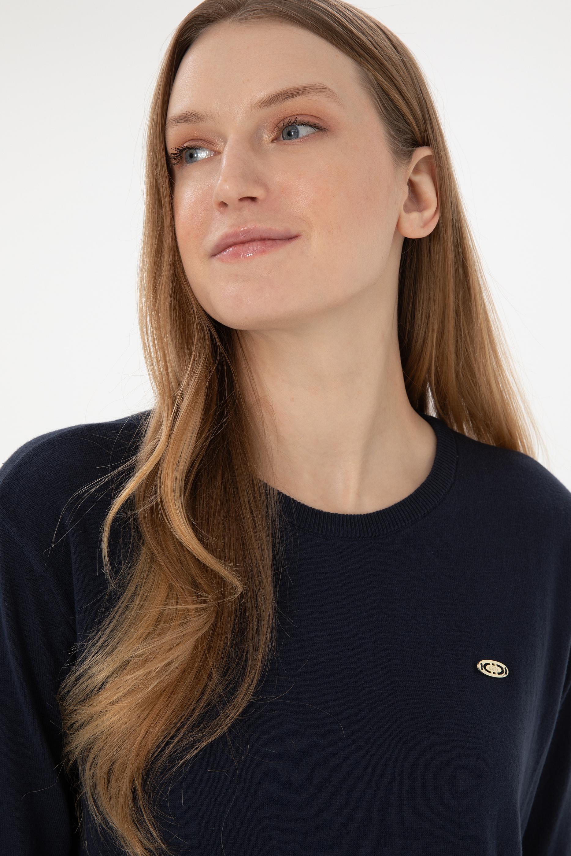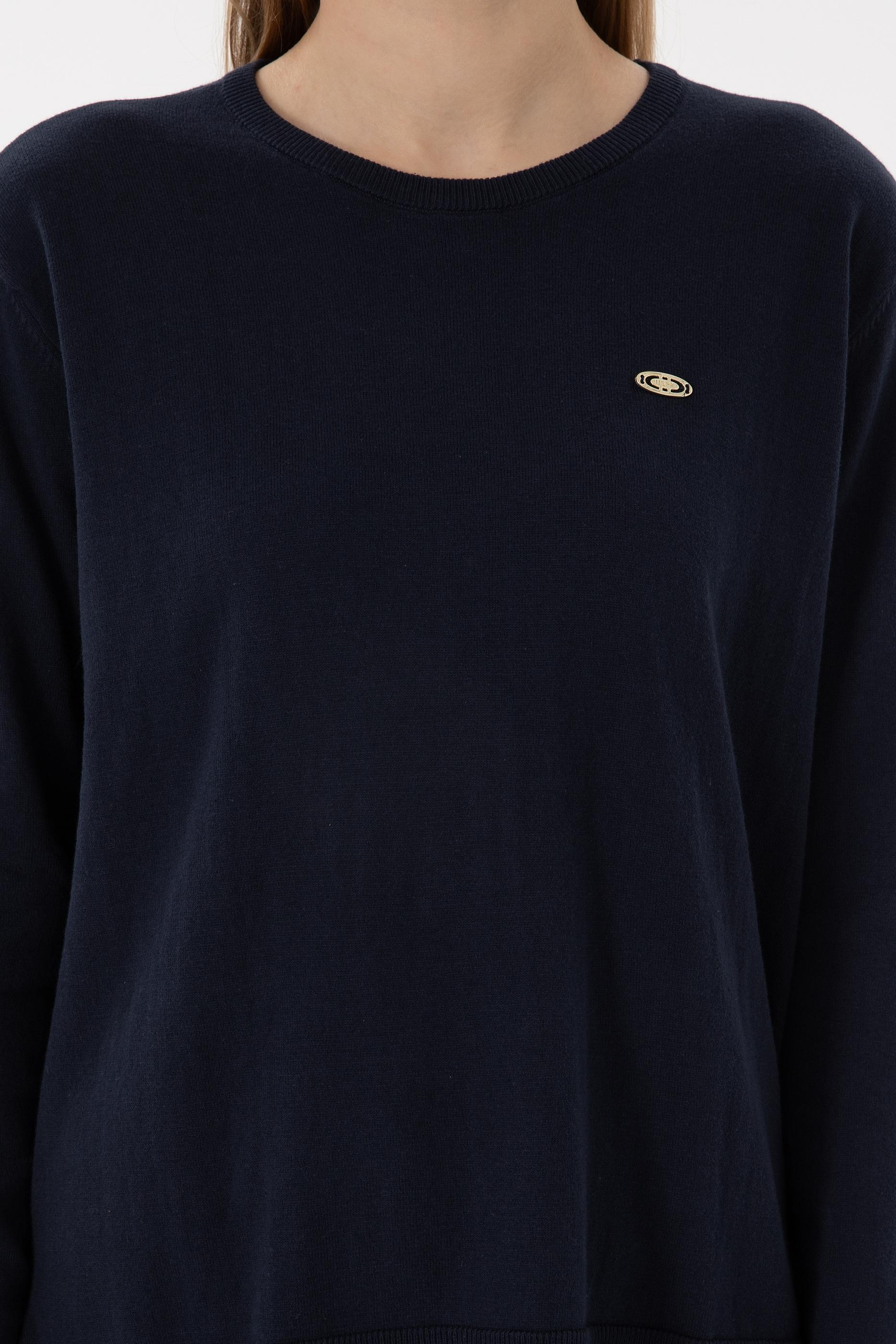 Kadın Lacivert Bisiklet Yaka Basic Kazak
