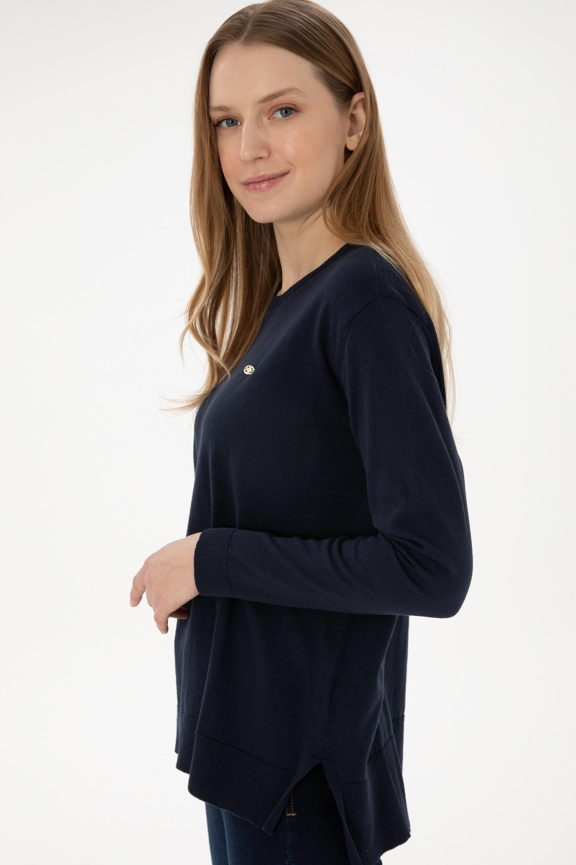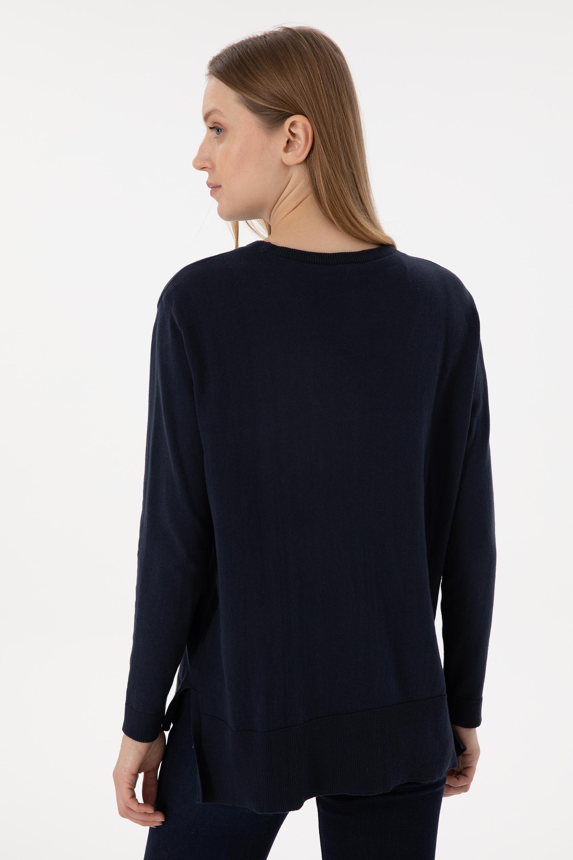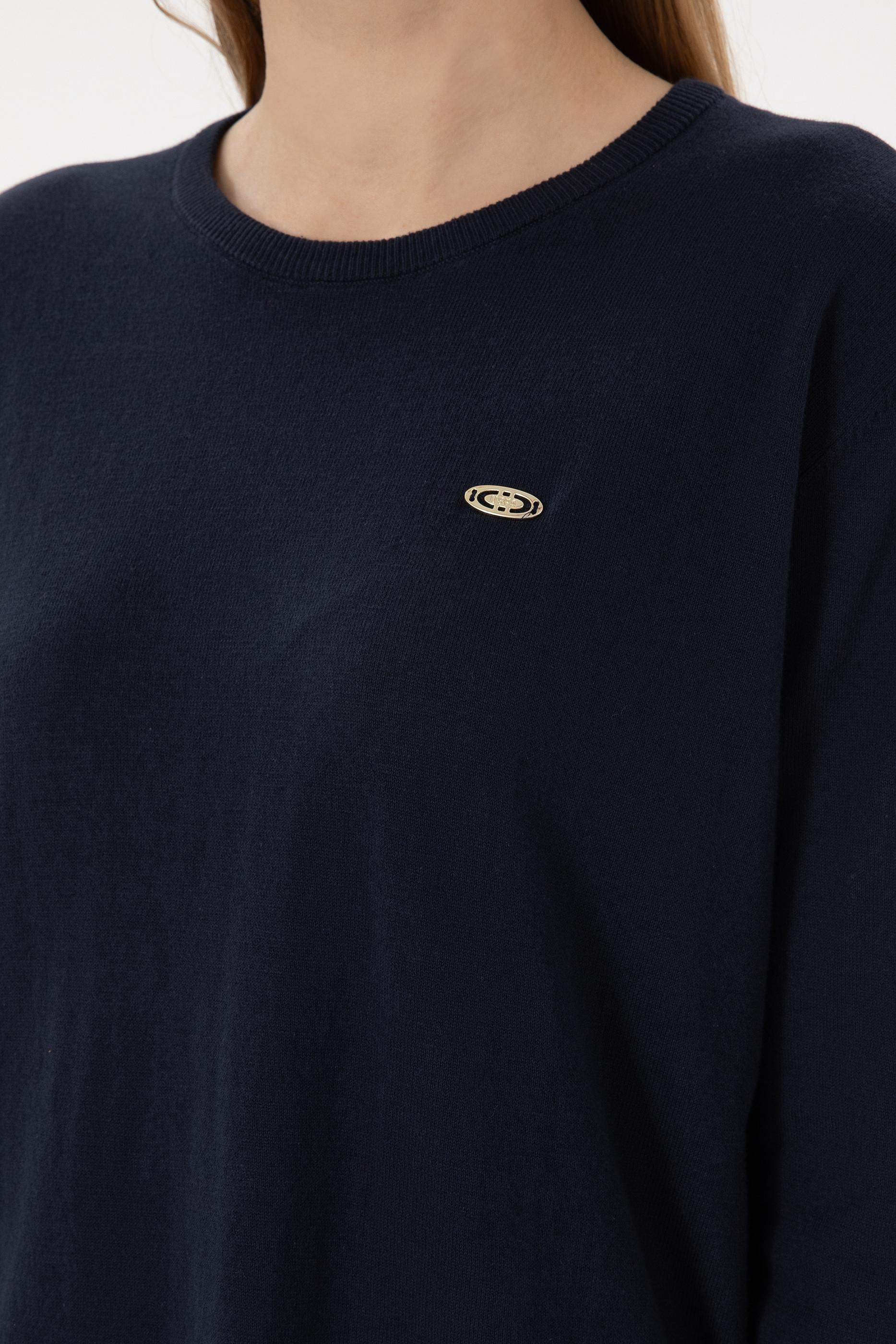 Kadın Lacivert Bisiklet Yaka Basic Kazak