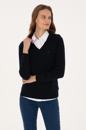 Kadın Lacivert V Yaka Basic Kazak
