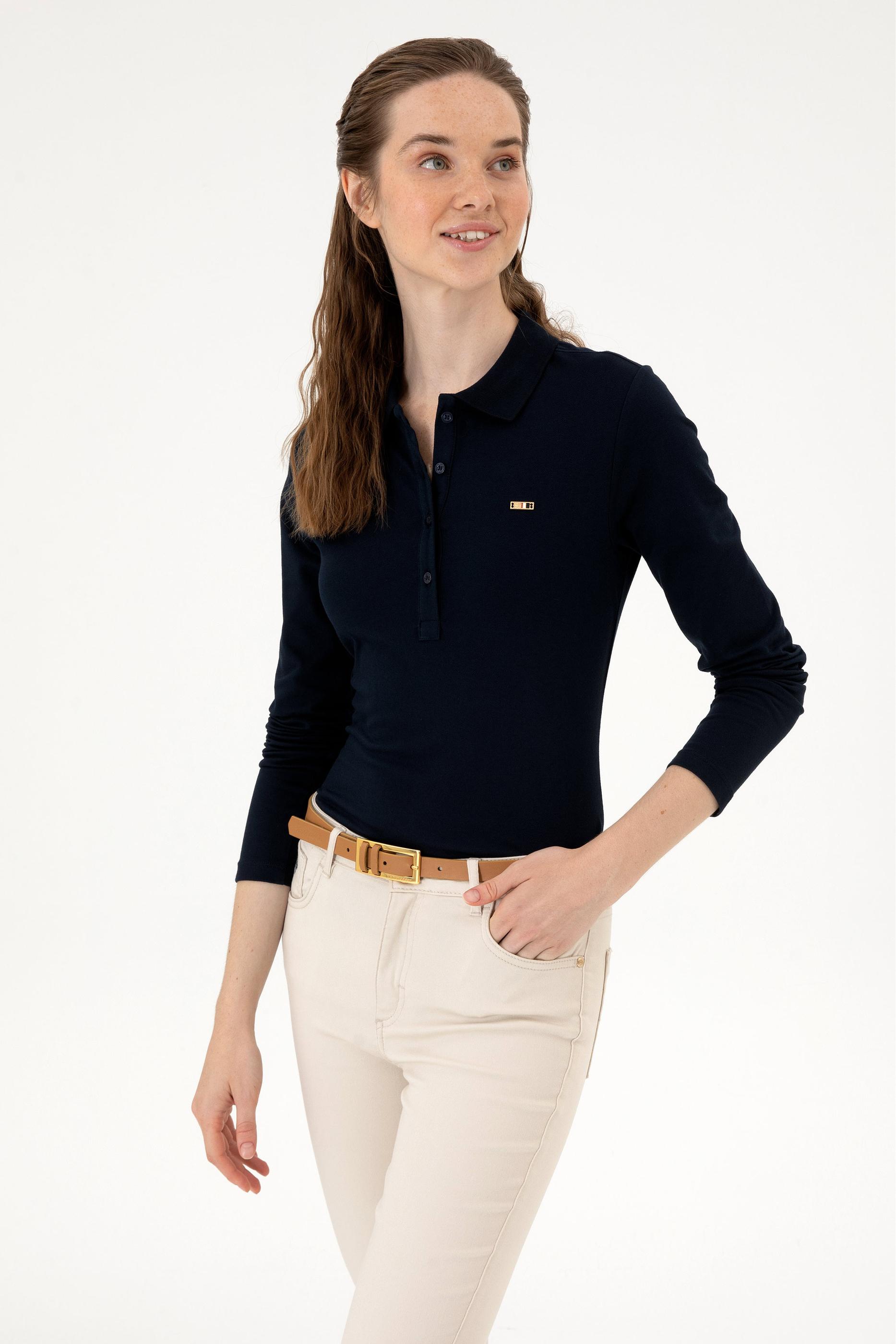 Kadın Lacivert Basic Polo Yaka Sweatshırt
