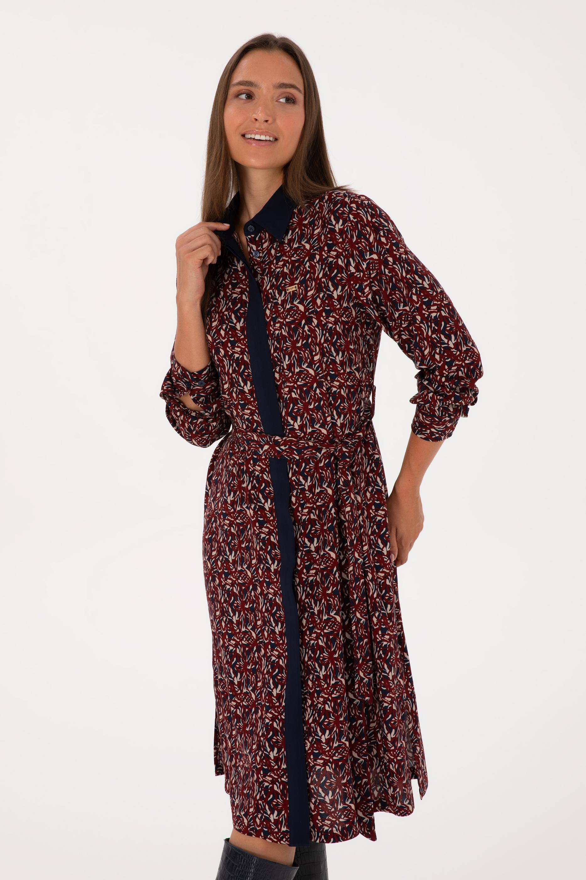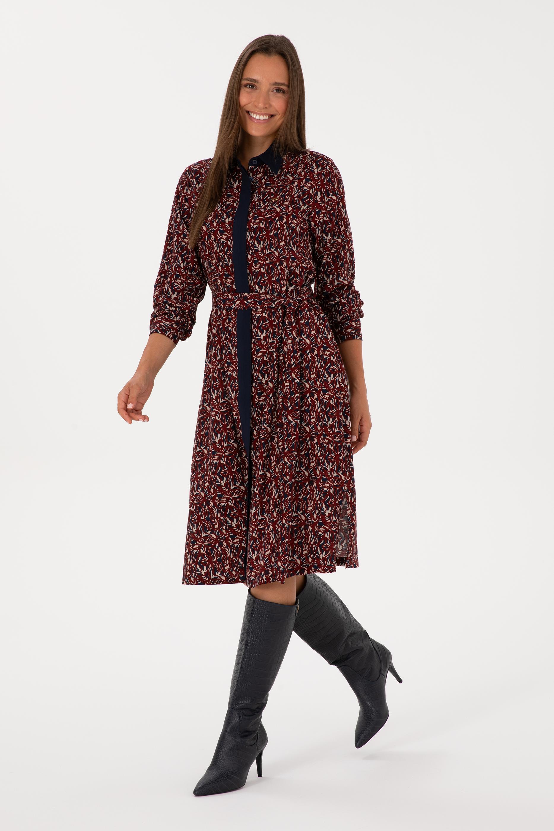 - Kadın Lacivert Kemerli Dokuma Elbise