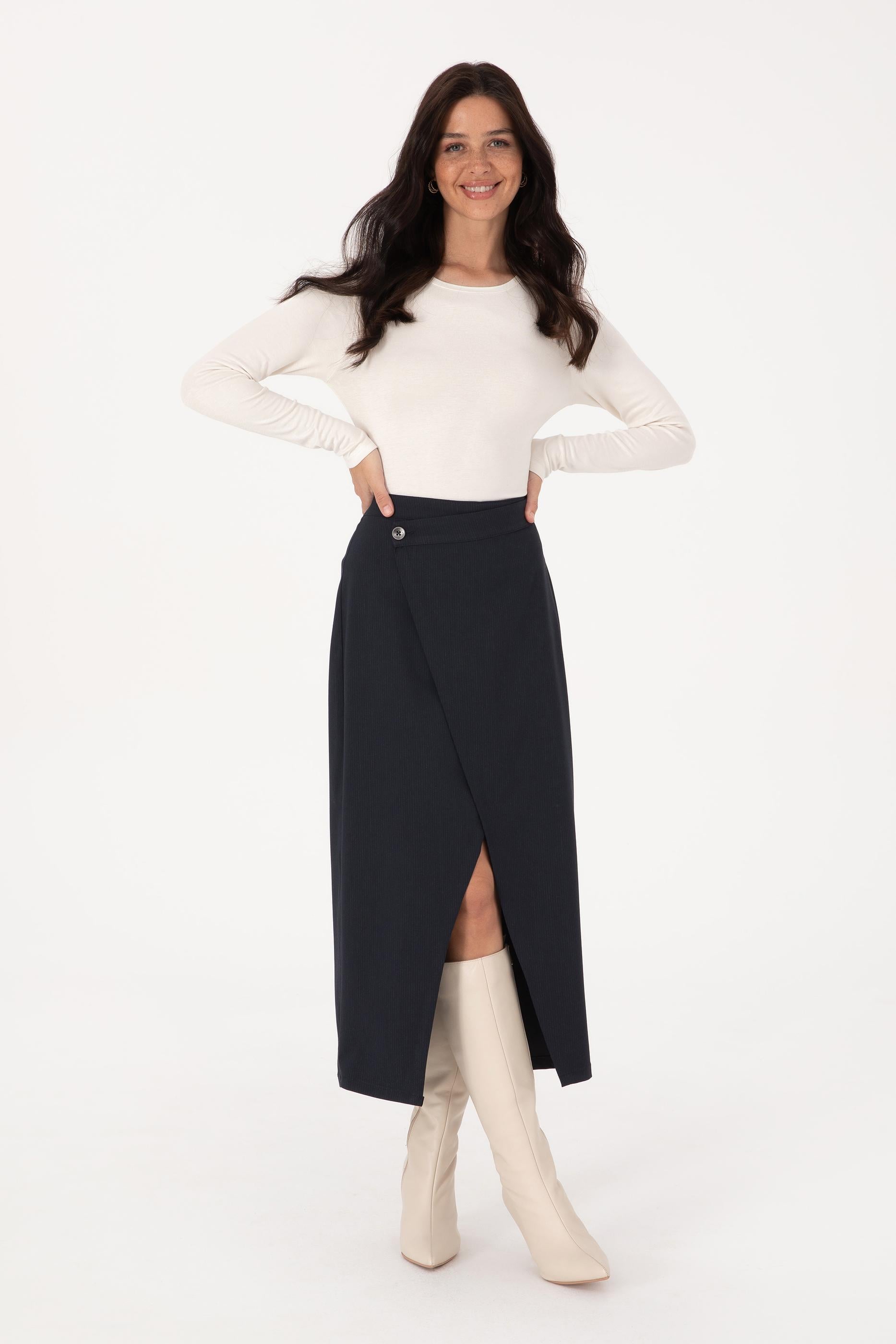 Kadın Lacivert Dokuma Etek