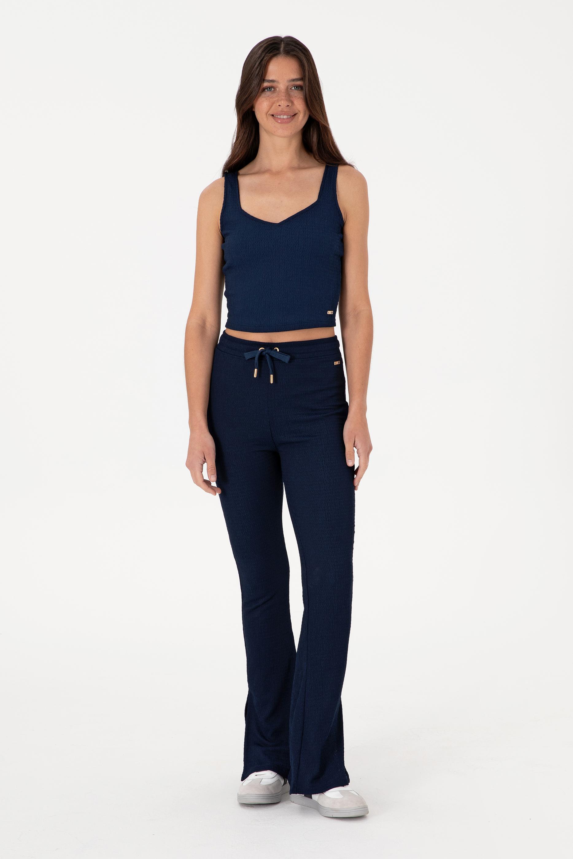 - Kadın Lacivert Yüksek Bel İspanyol Paça Tayt