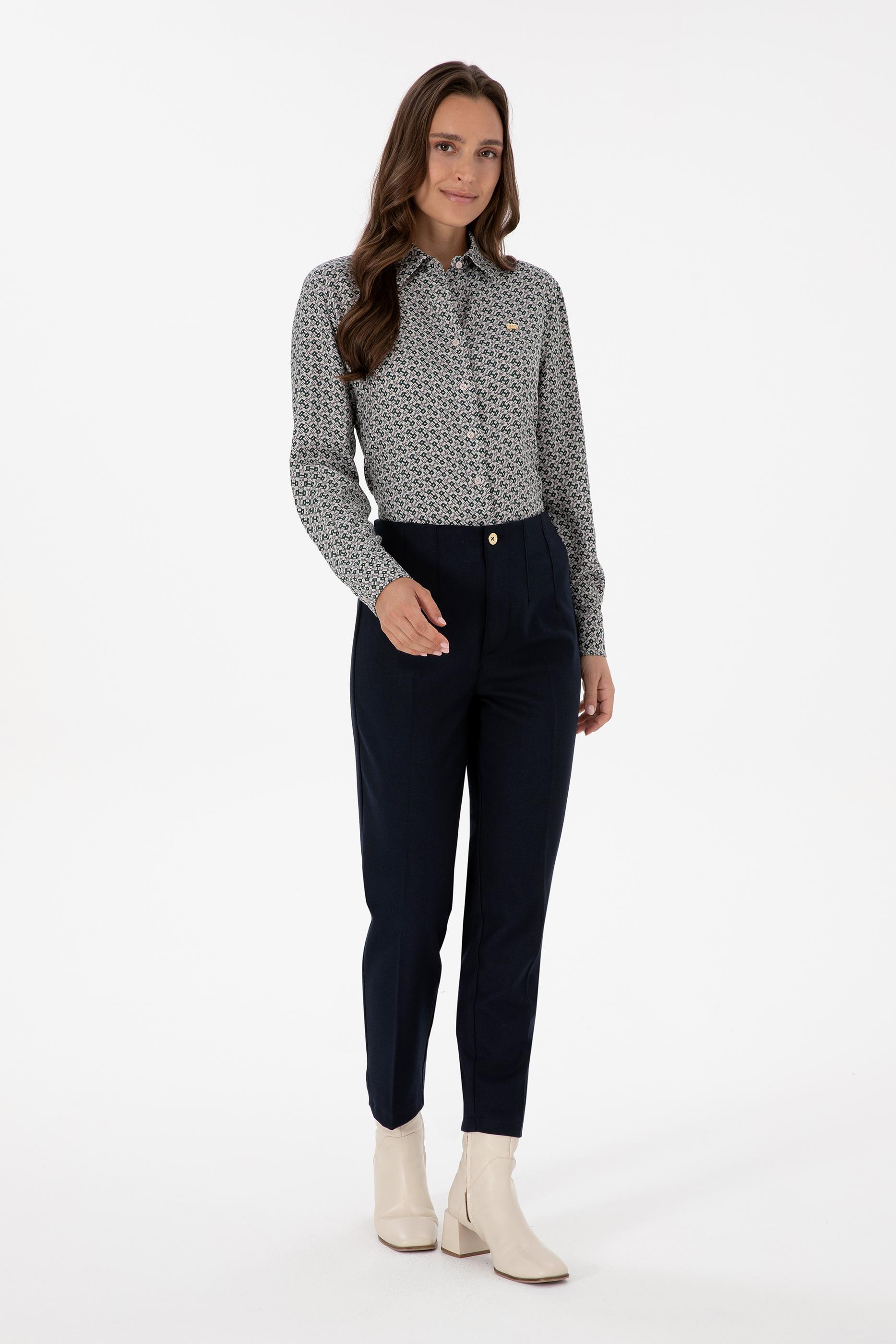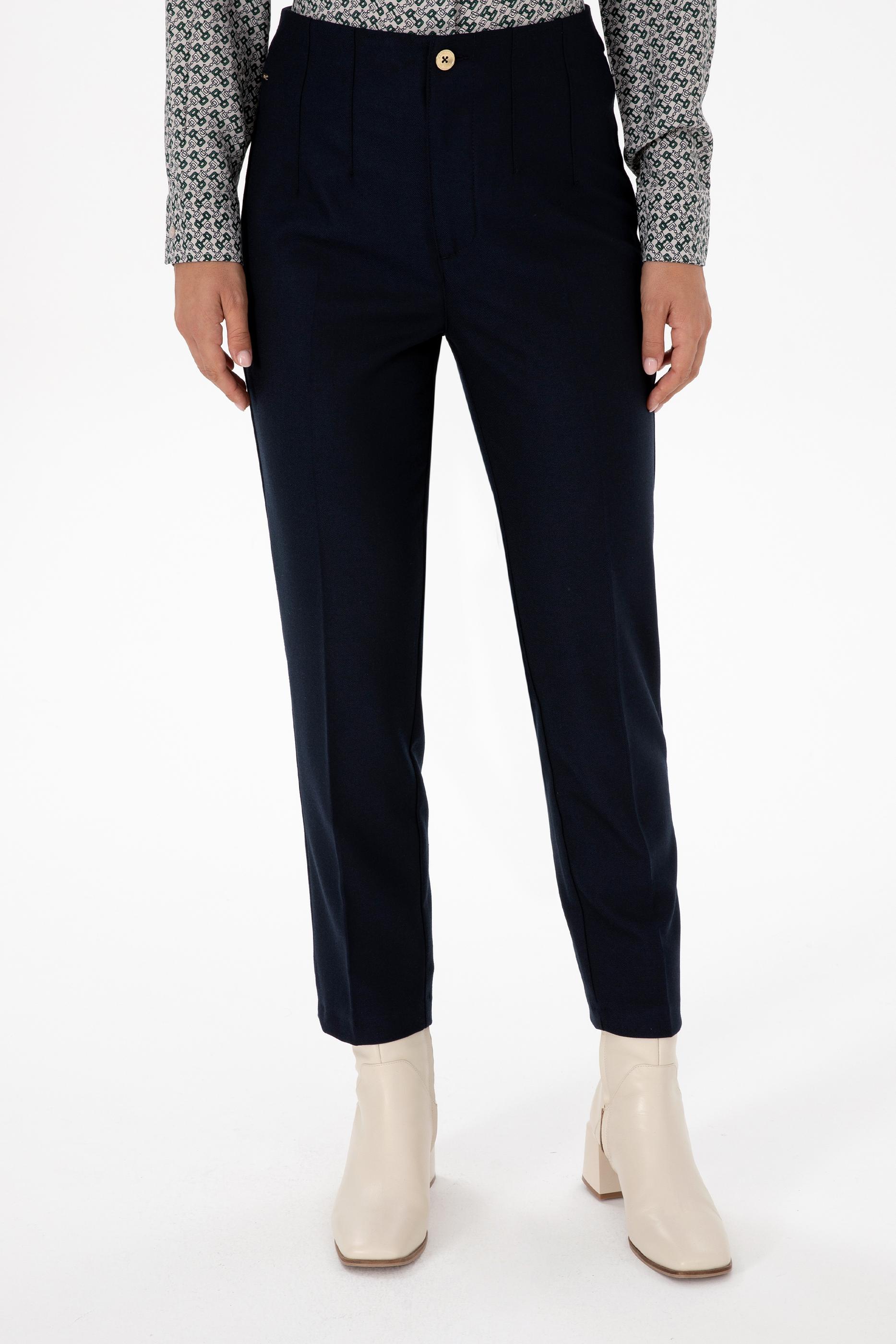 - Kadın Lacivert Carrot High Waist Fit Kanvas Pantolon