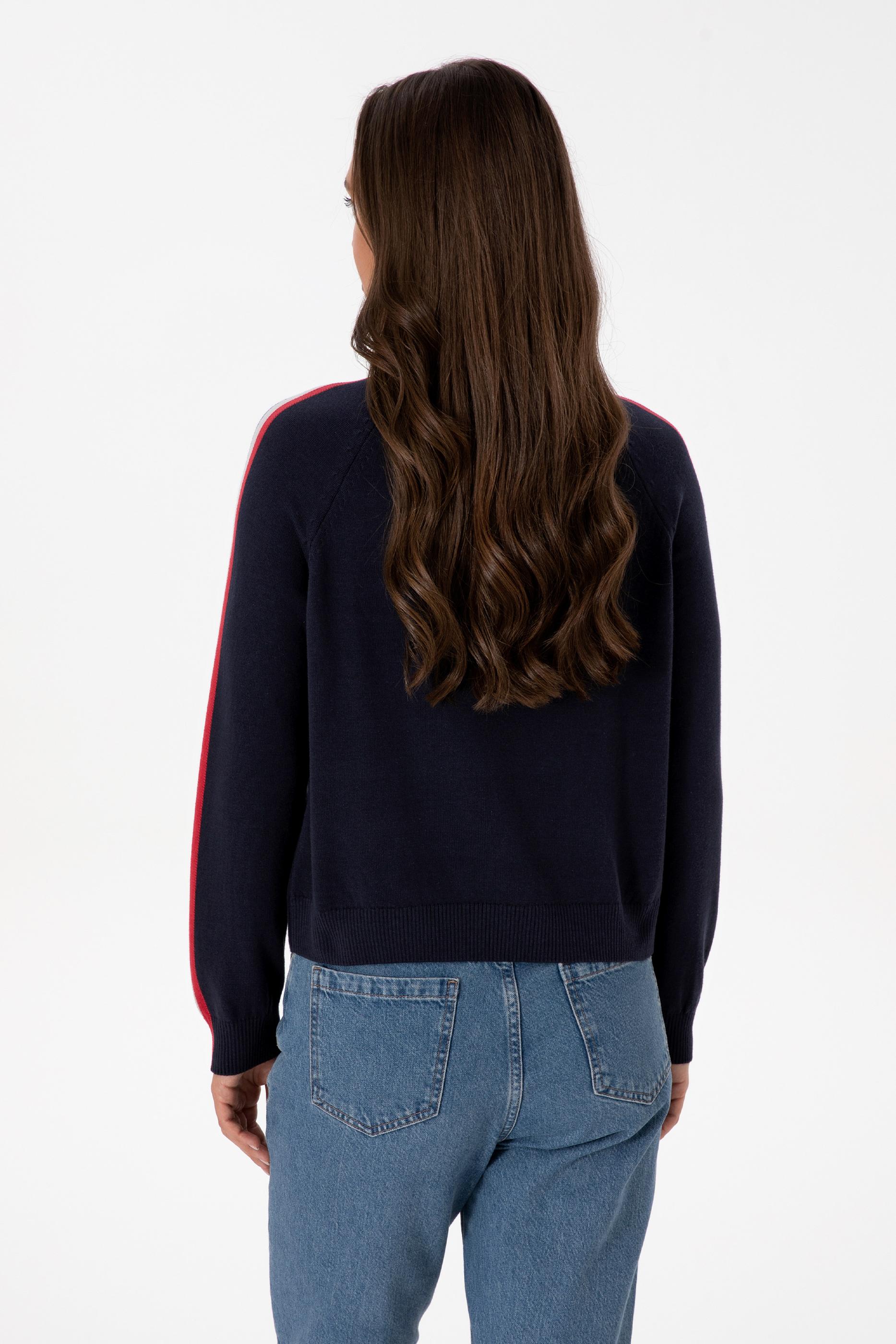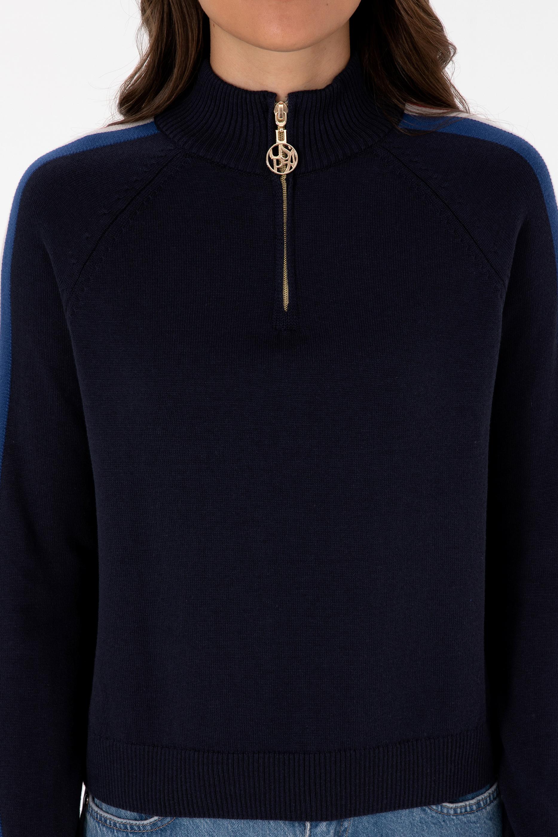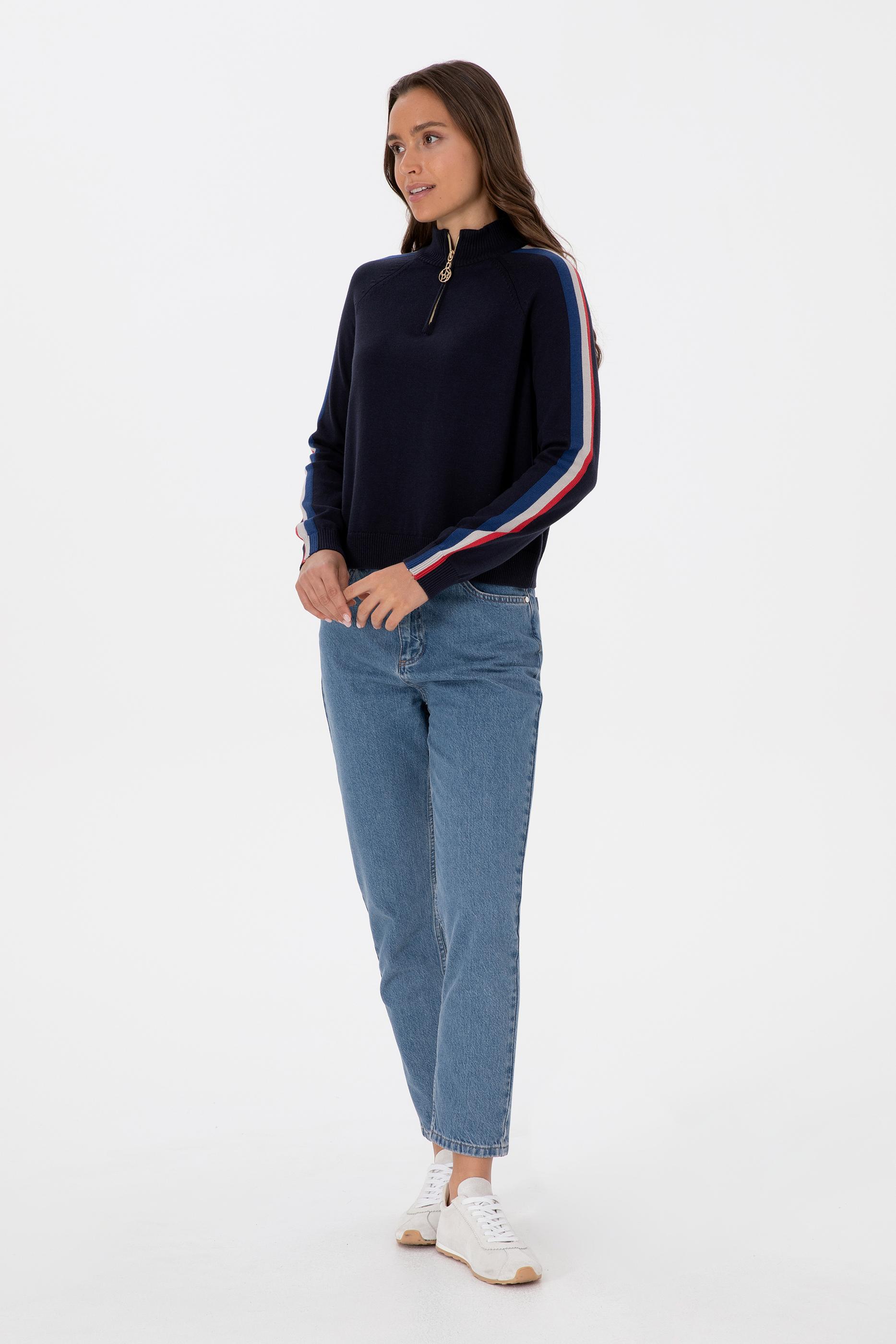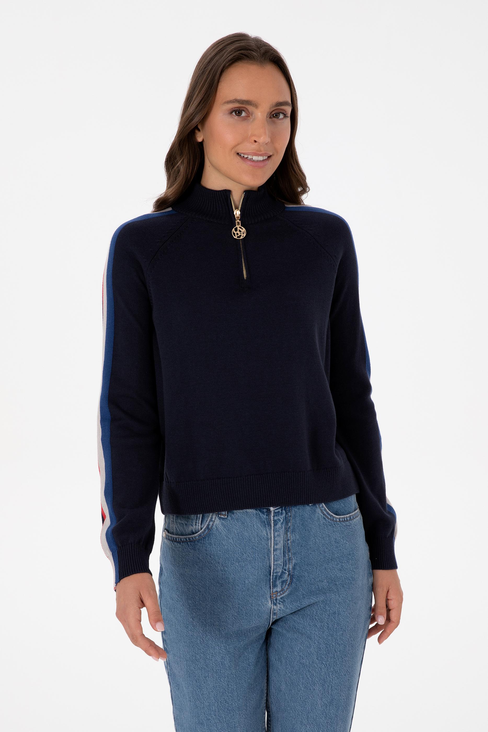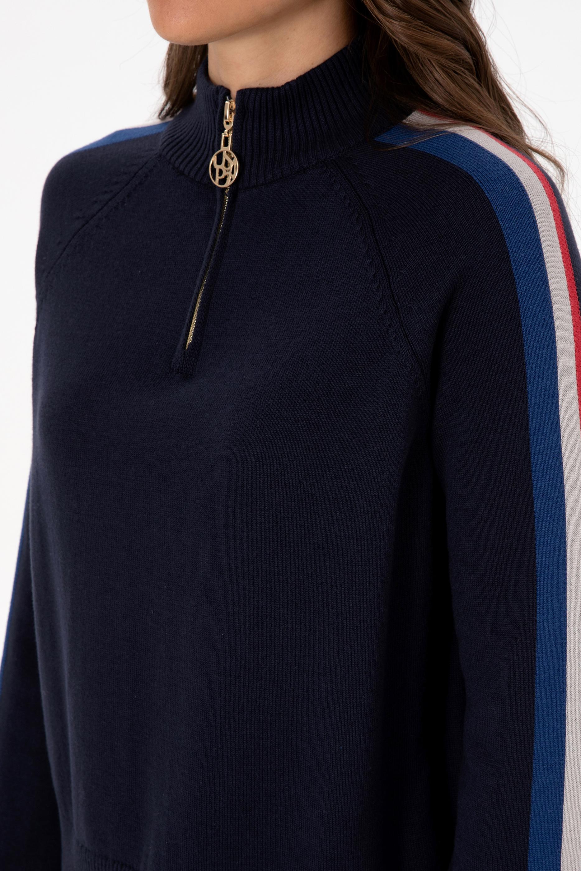Kadın Lacivert V Yaka Fermuarlı Kazak