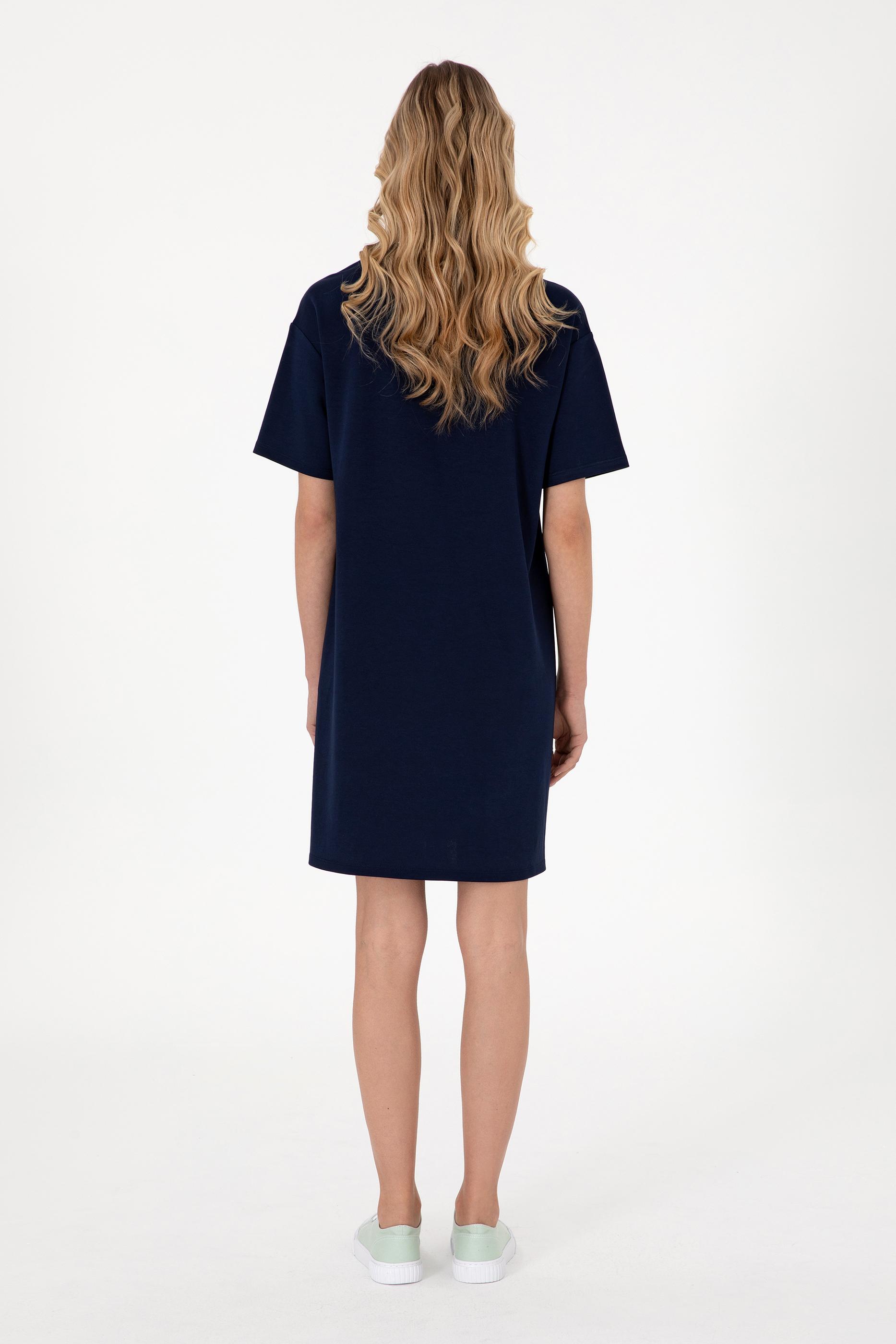 U.S. Polo Assn. stilini modern bir rahatlıkla buluşturan bu lacivert renkli elbise, yumuşacık modal karışımlı kumaşıyla hafiflik ve serinlik hissini bir arada sunar. Geniş kalıbı ve kısa kollu tasarımıyla vücuda yapışmadan dökülen elbise, bisiklet yaka formuyla sade ama enerjik bir görünüm kazandırır. Göğüs kısmındaki büyük “USPA” yazısı sportif bir hava katarken, mini boy kesimiyle günün her anında özgürce hareket etmenizi sağlar. Tatillerde, şehir gezilerinde ya da hafta sonu kaçamaklarında maksimum konfor arayanların favorisi olacak parçalardan biridir.