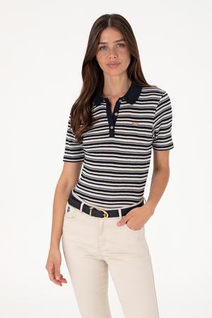 - Kadın Lacivert Çizgili Polo Yaka Tişört