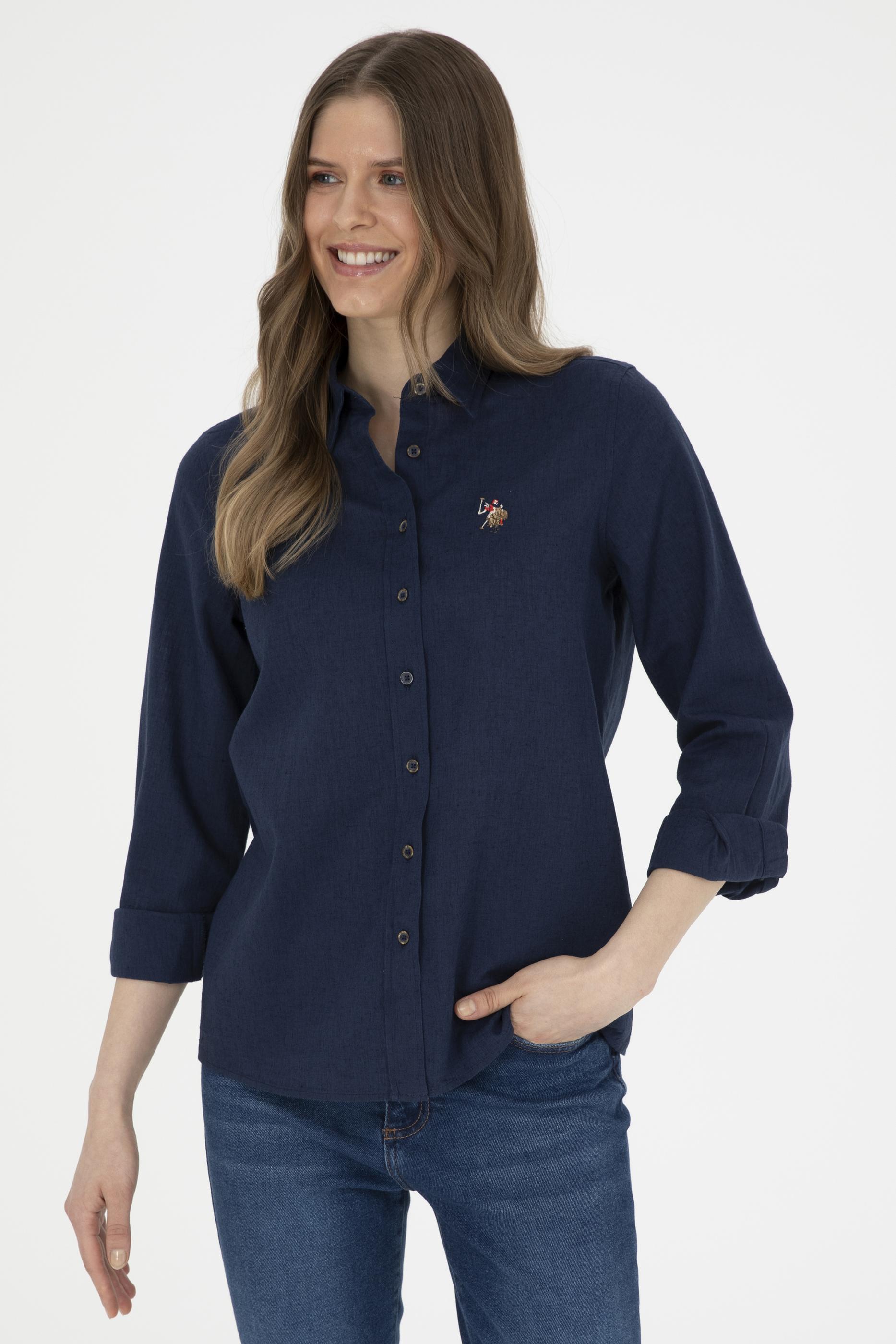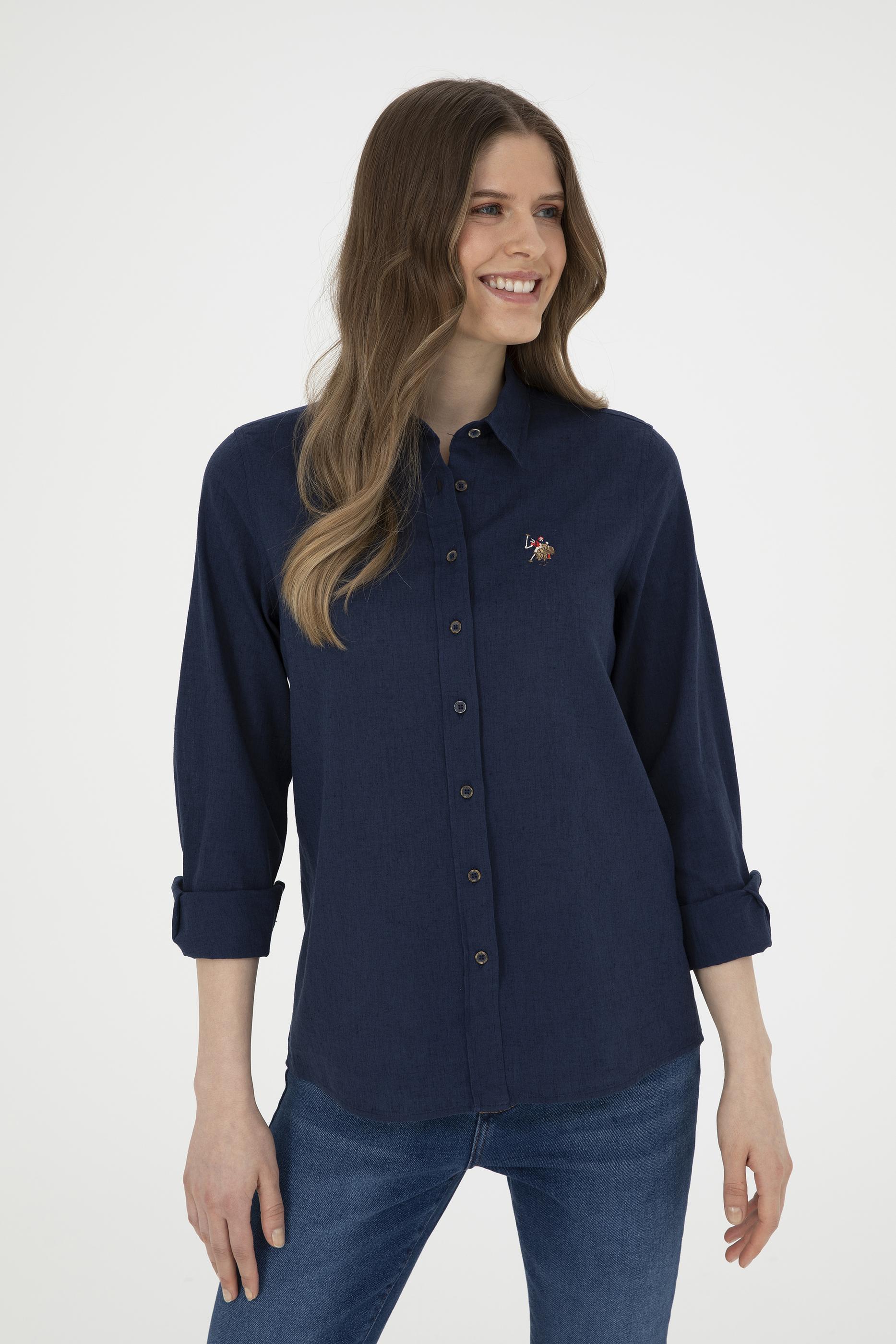 - Kadın Lacivert Uzun Kollu Basic Gömlek