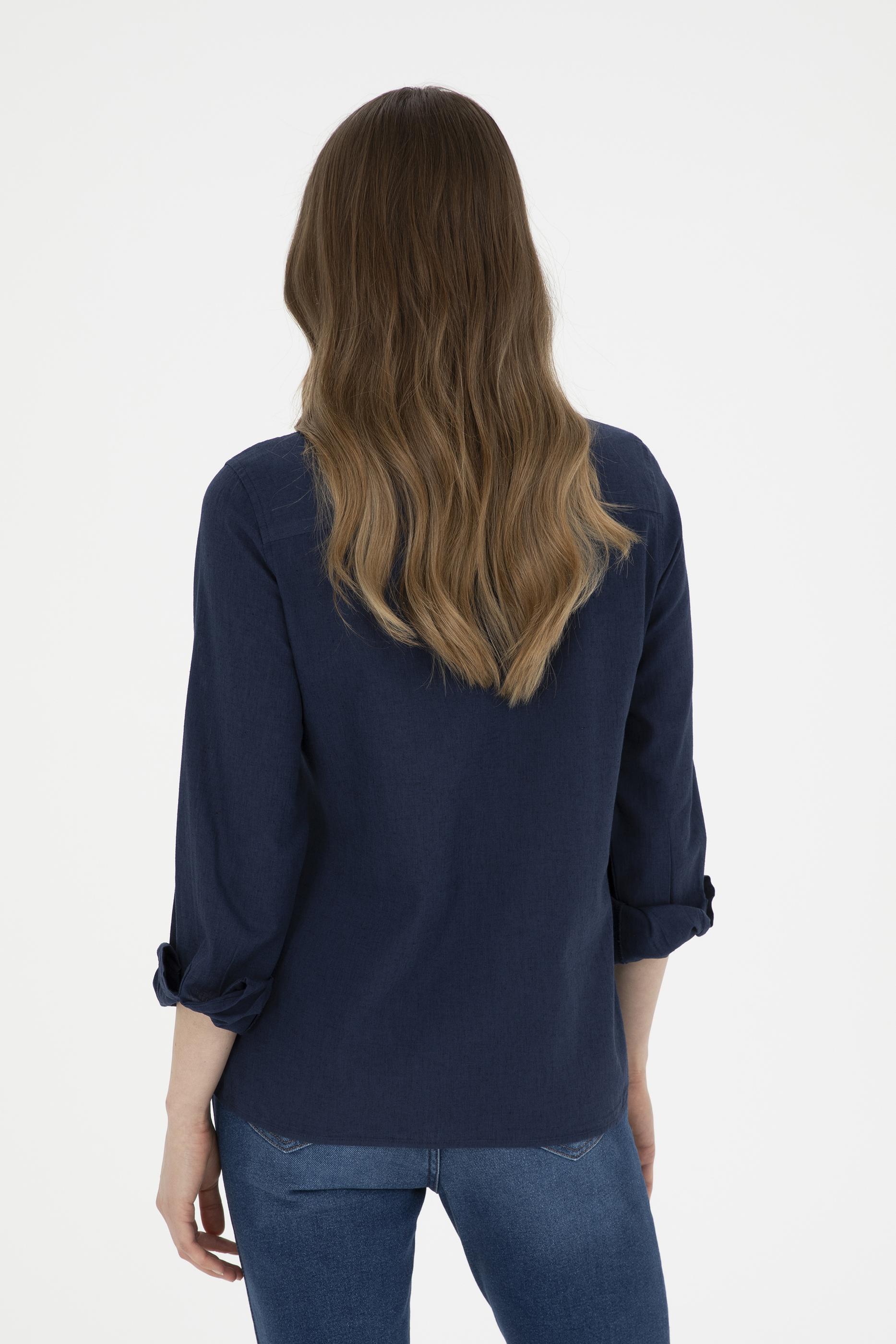 Kadın Lacivert Uzun Kollu Basic Gömlek