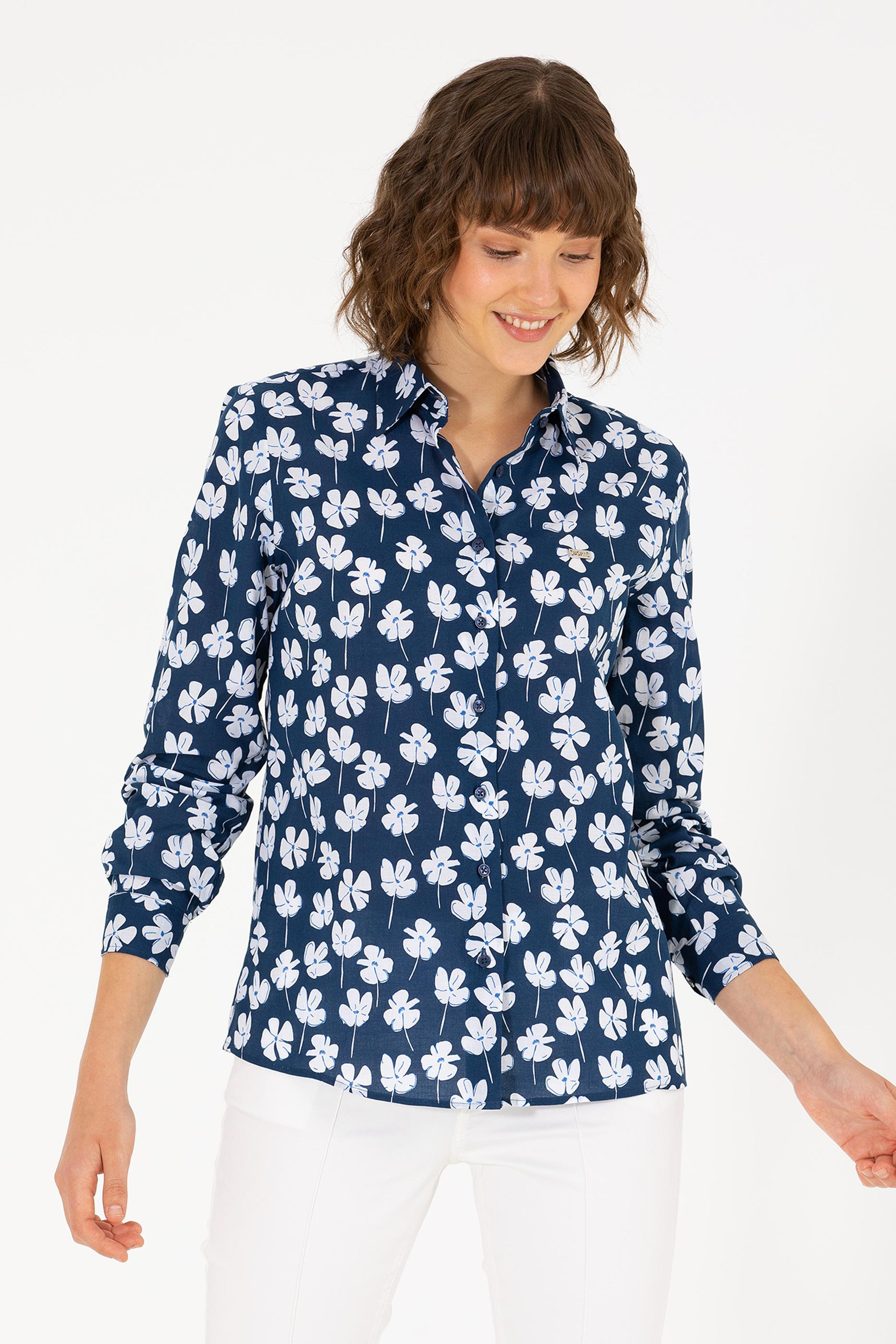 Kadın Lacivert Uzun Kollu Gömlek