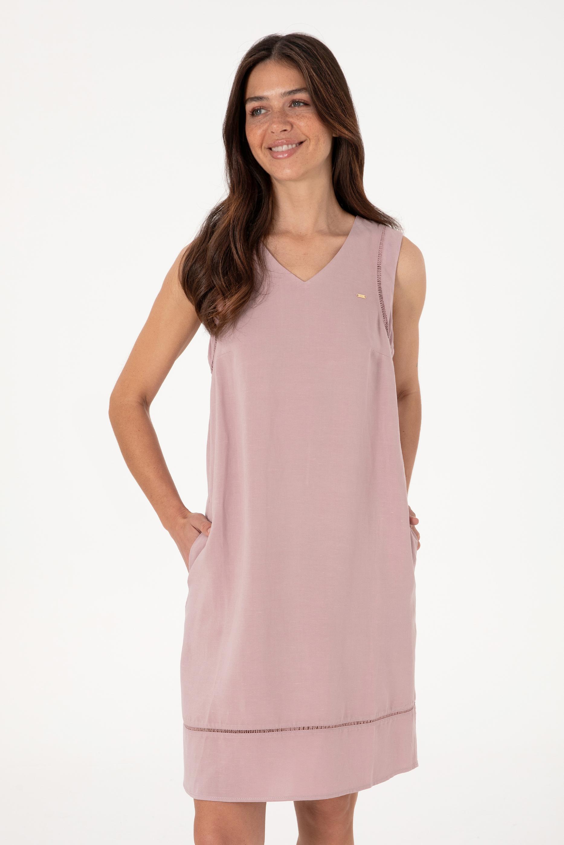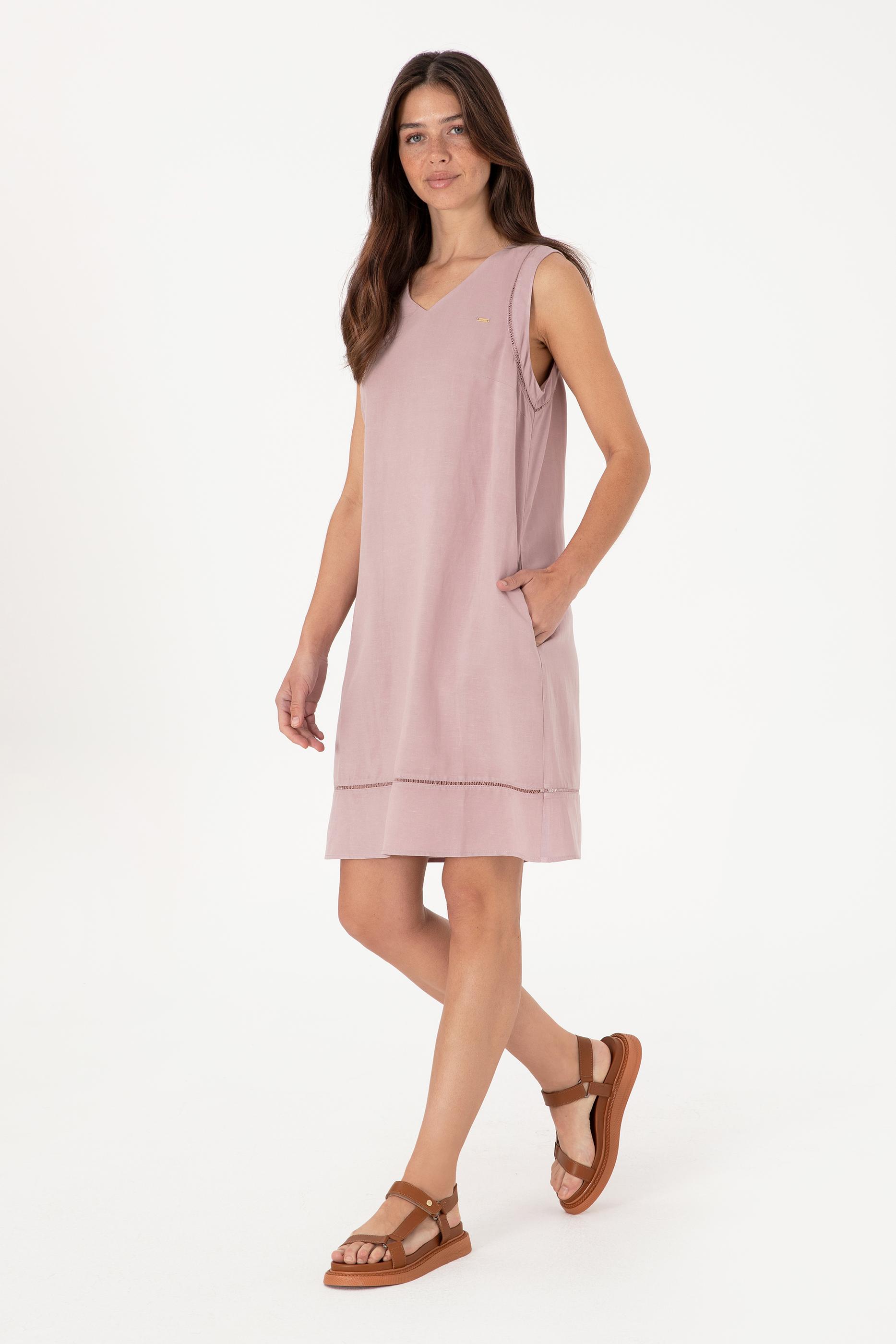 Kadın Lila Keten Karışımlı Mini Boy Dokuma Elbise