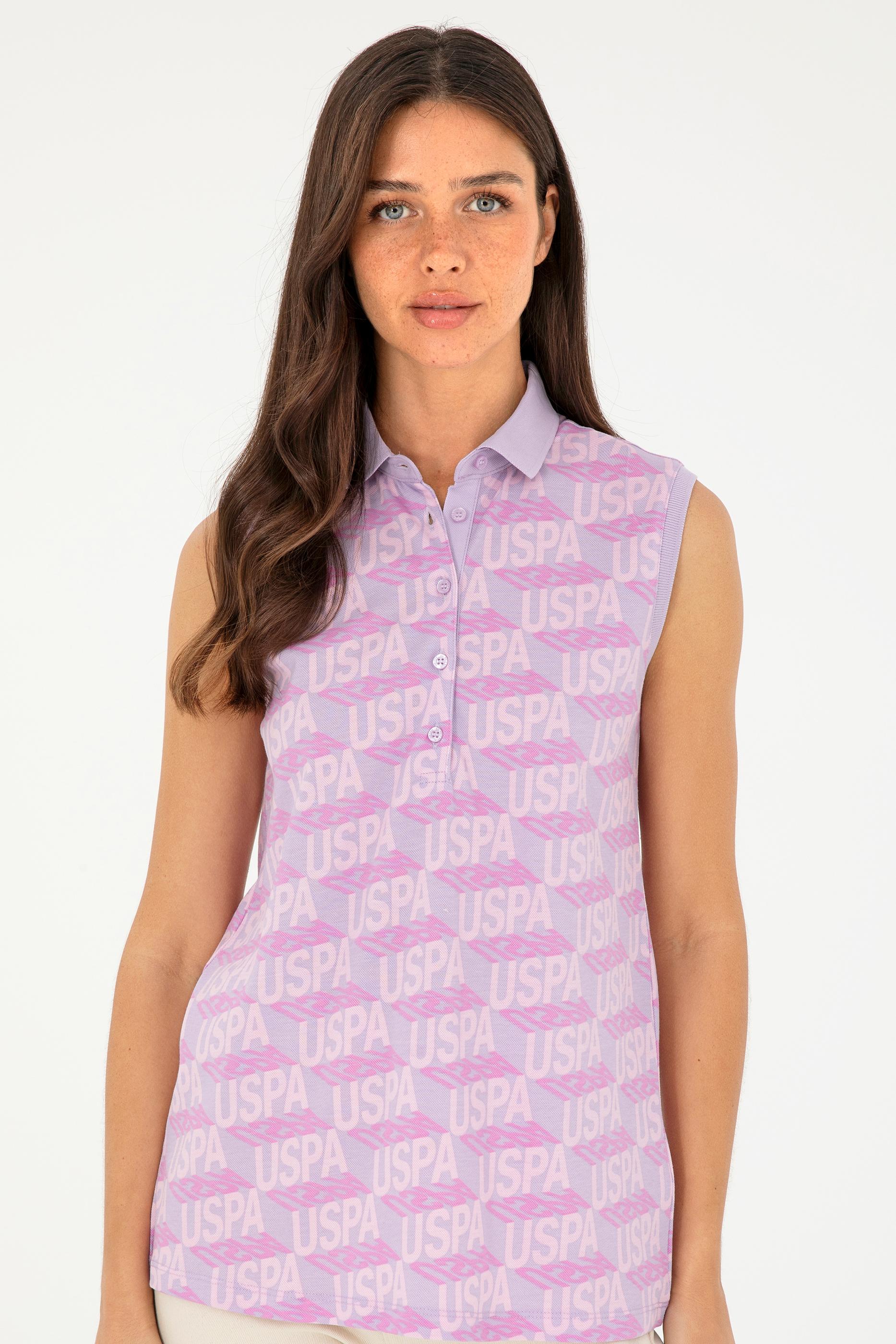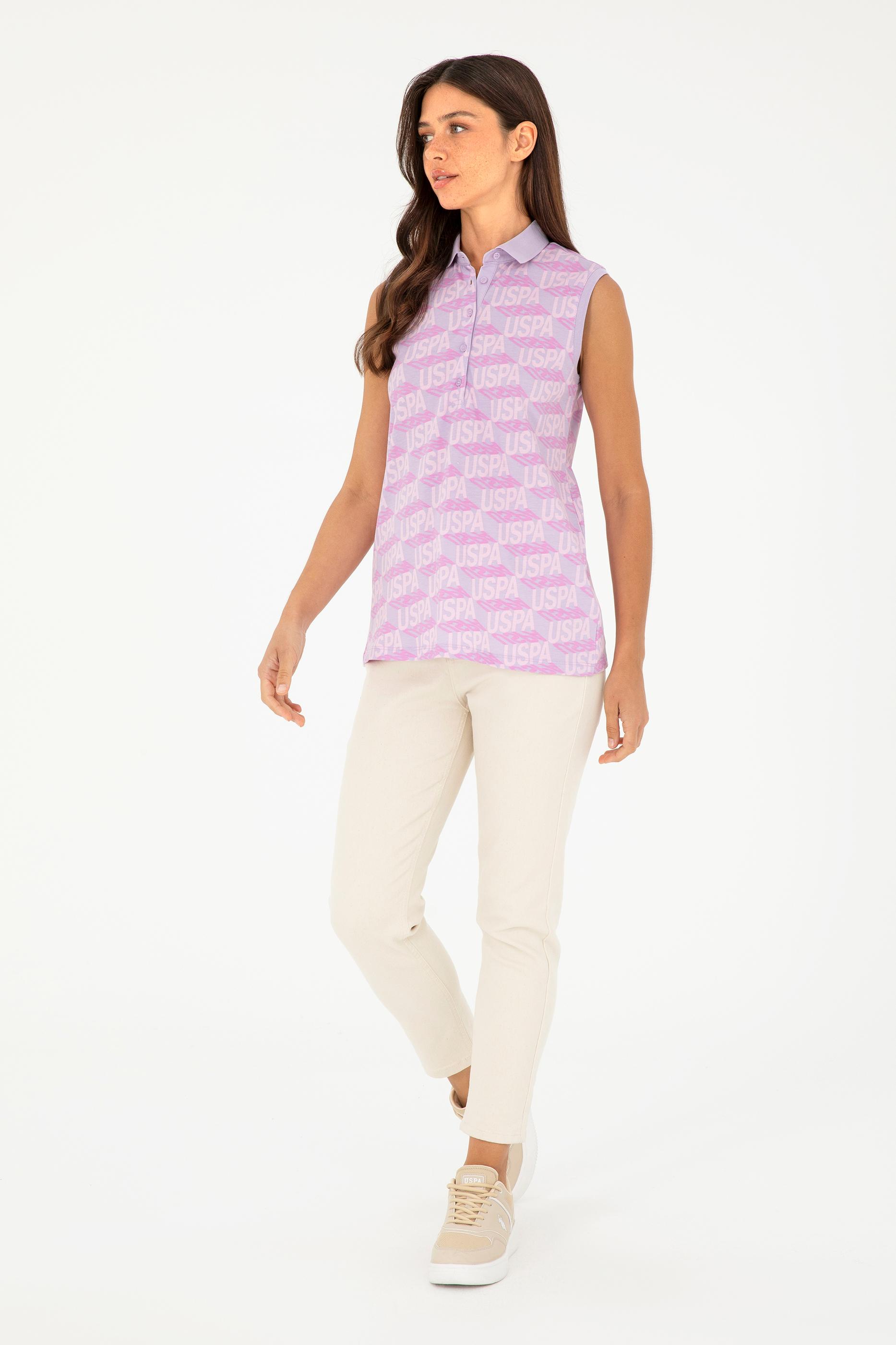 Kadın Lila Kolsuz Polo Yaka Tişört
